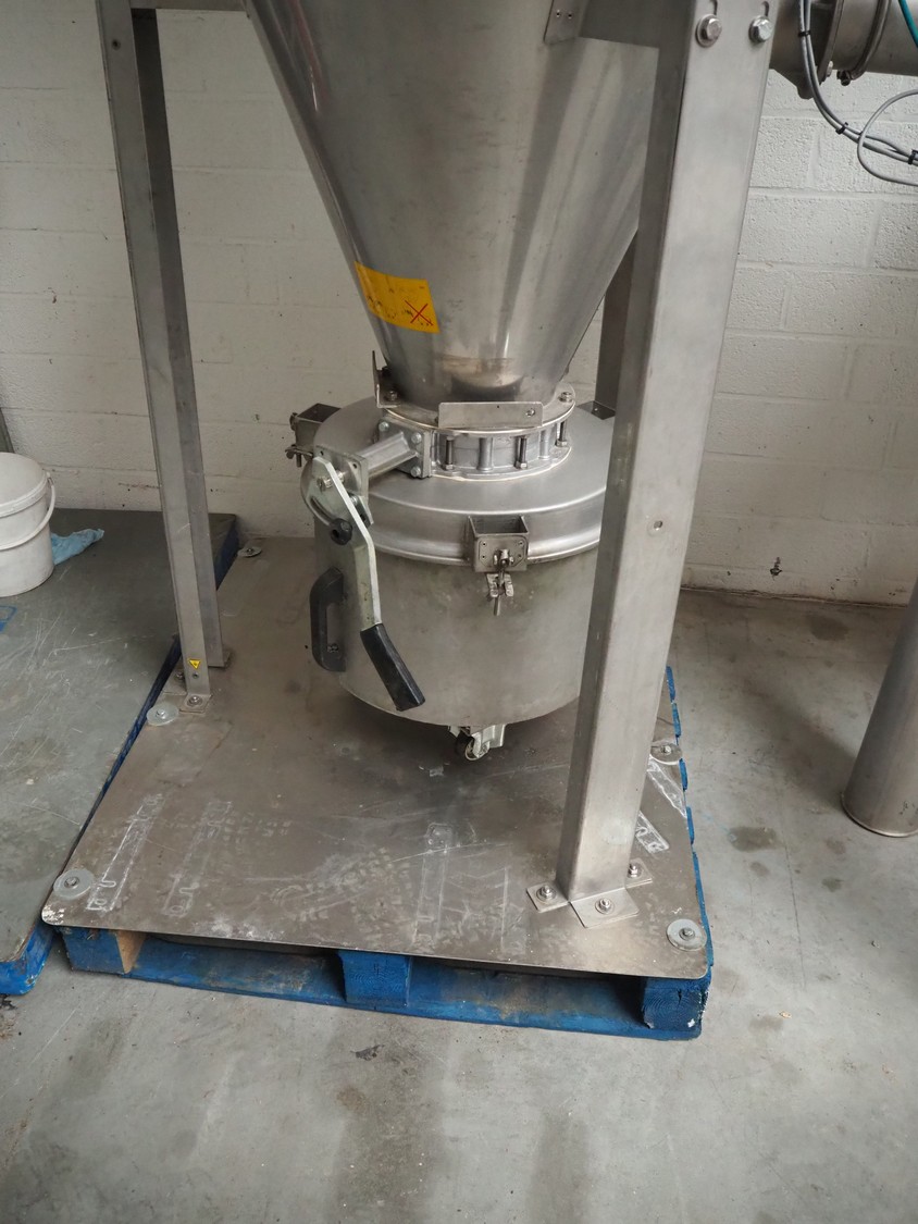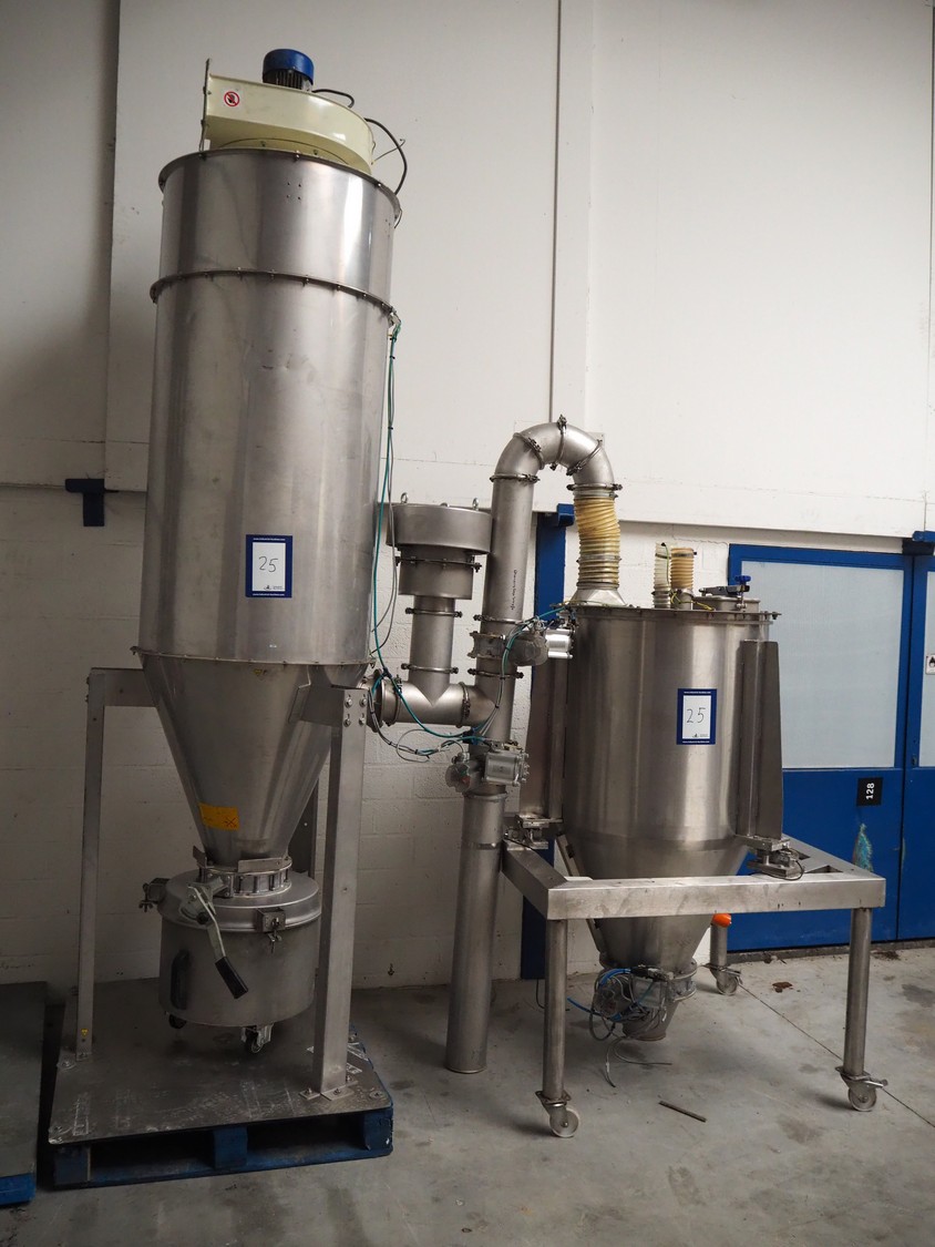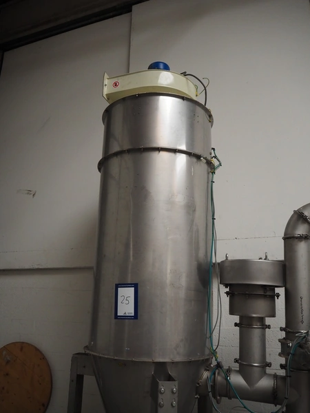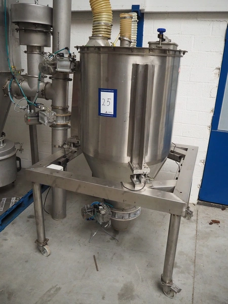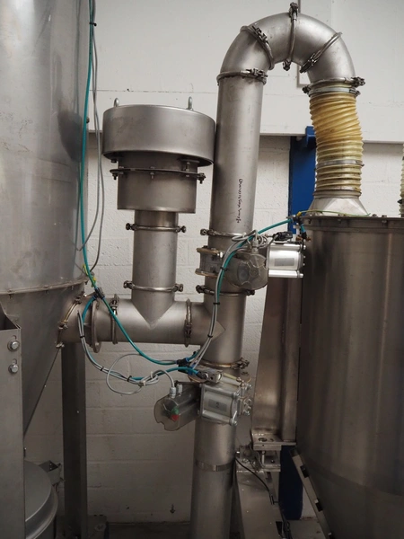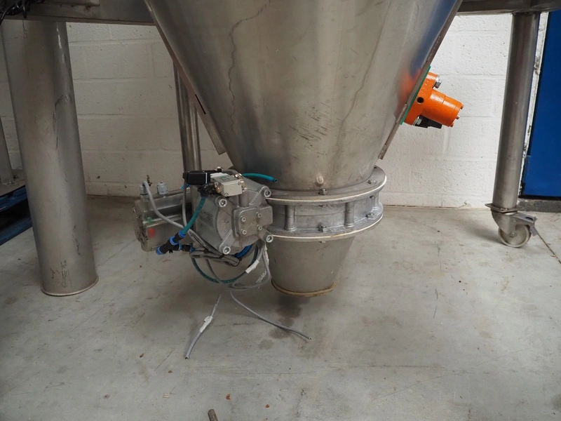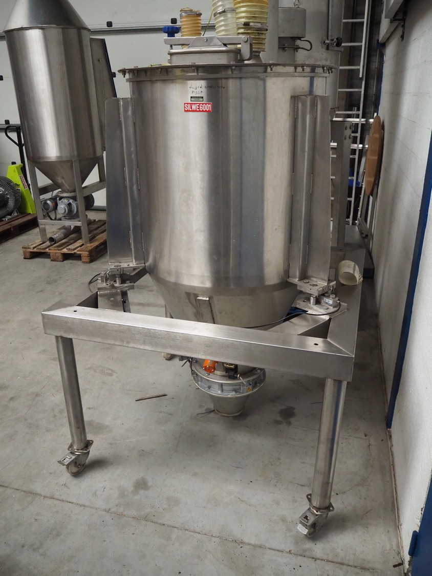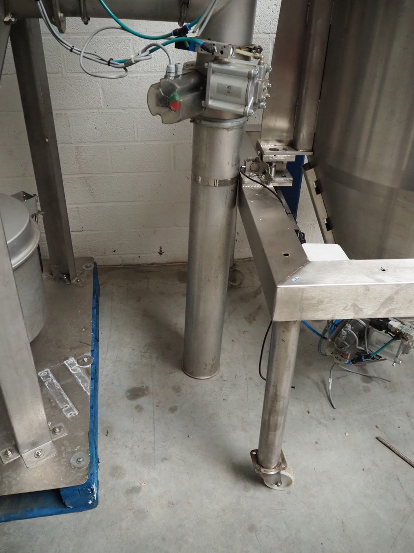 2 S/s tank, Ø tanks: 820 mm and 800 mm, Ø output: 150 mm, total dimensions: 1200 mm x 860 mm x 3200 mm.