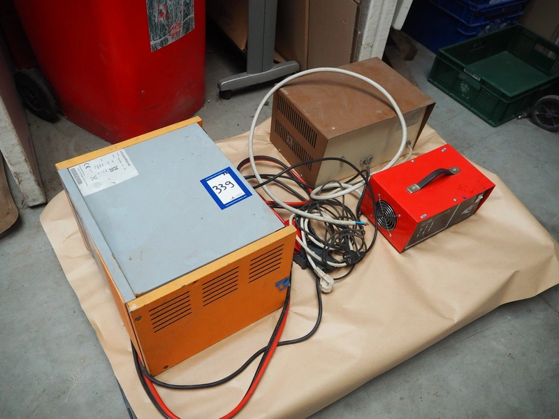 Pallet with 3 battery chargers.