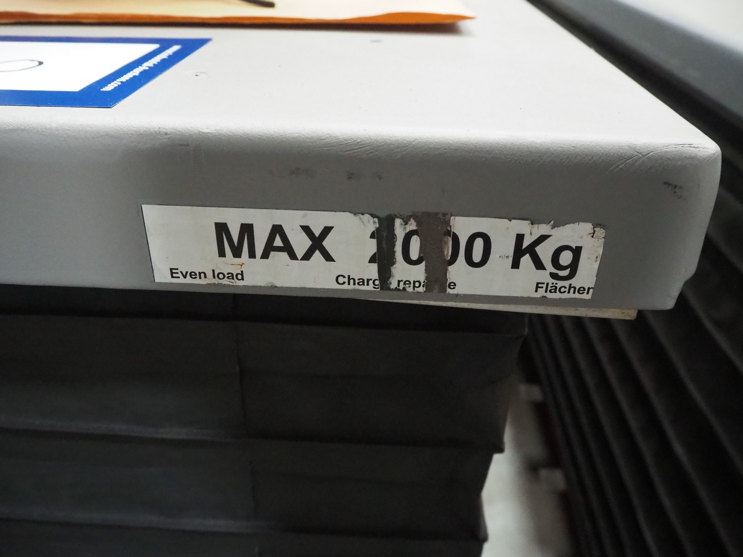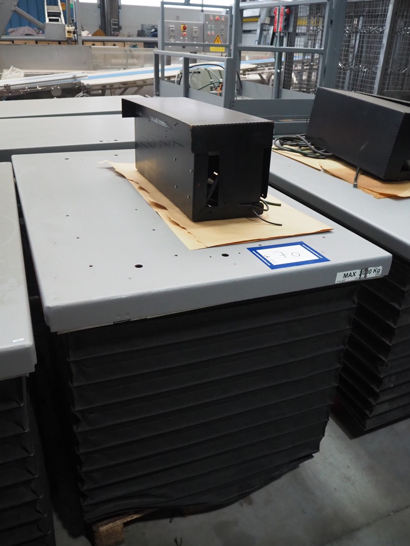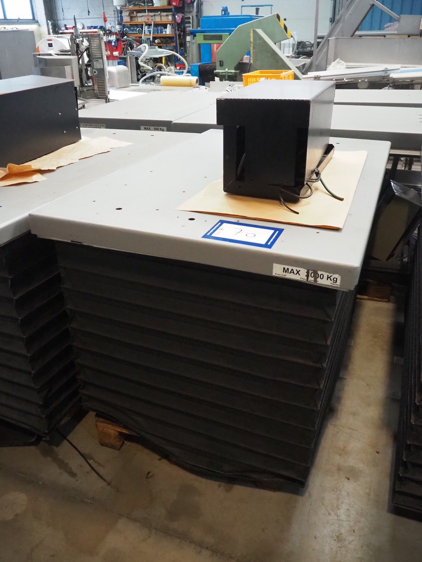 Lifting table, maximum load capacity: 2000 kg, dimensions: 1550 mm x 1000 mm x 880 mm.