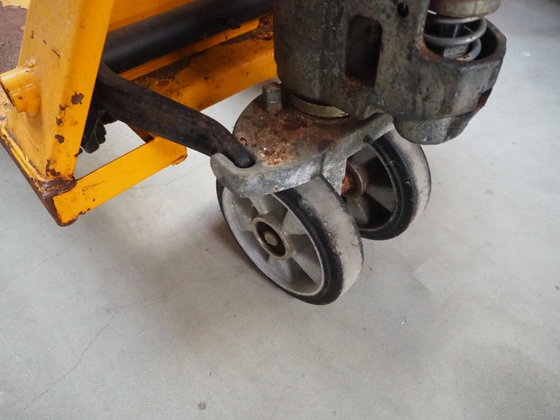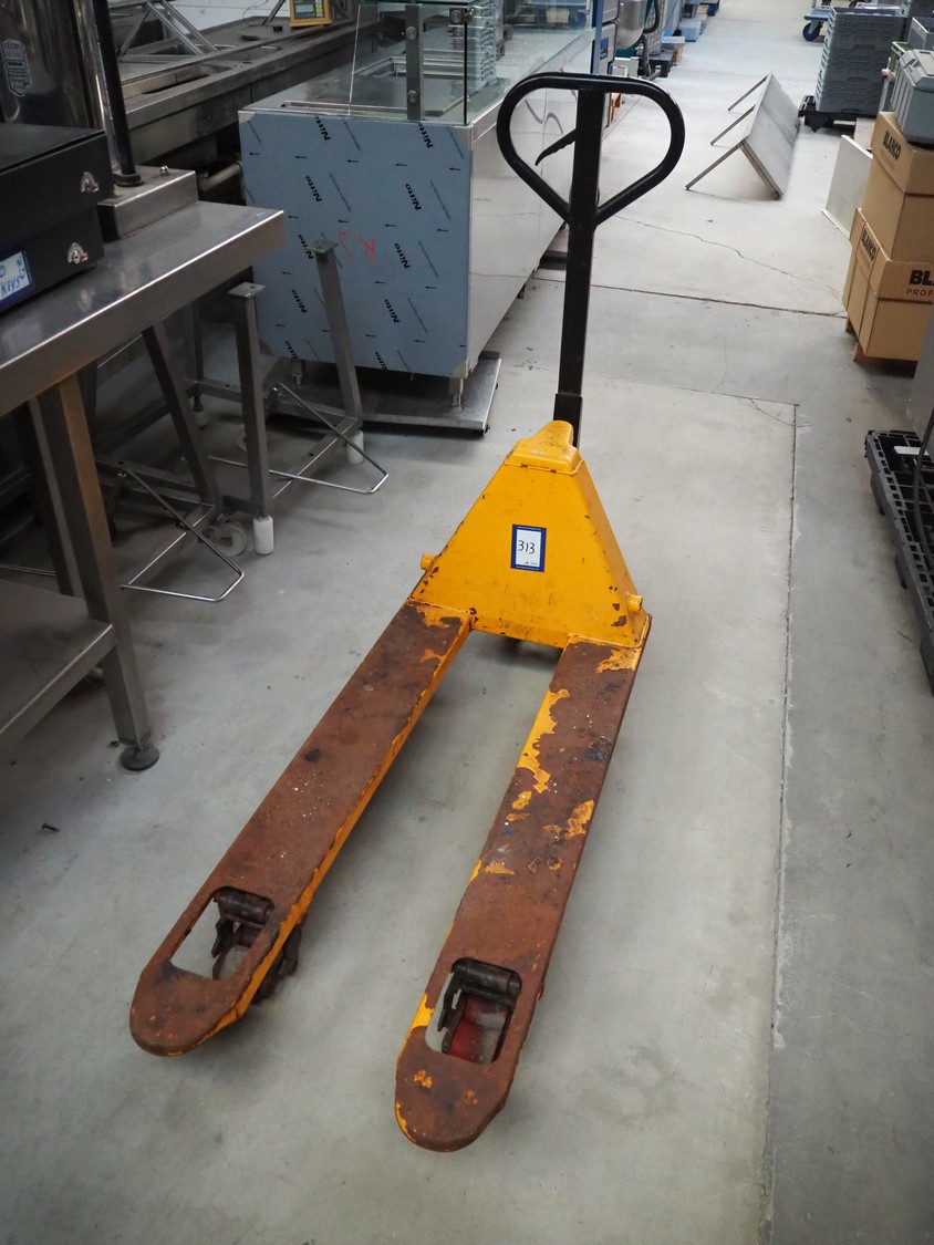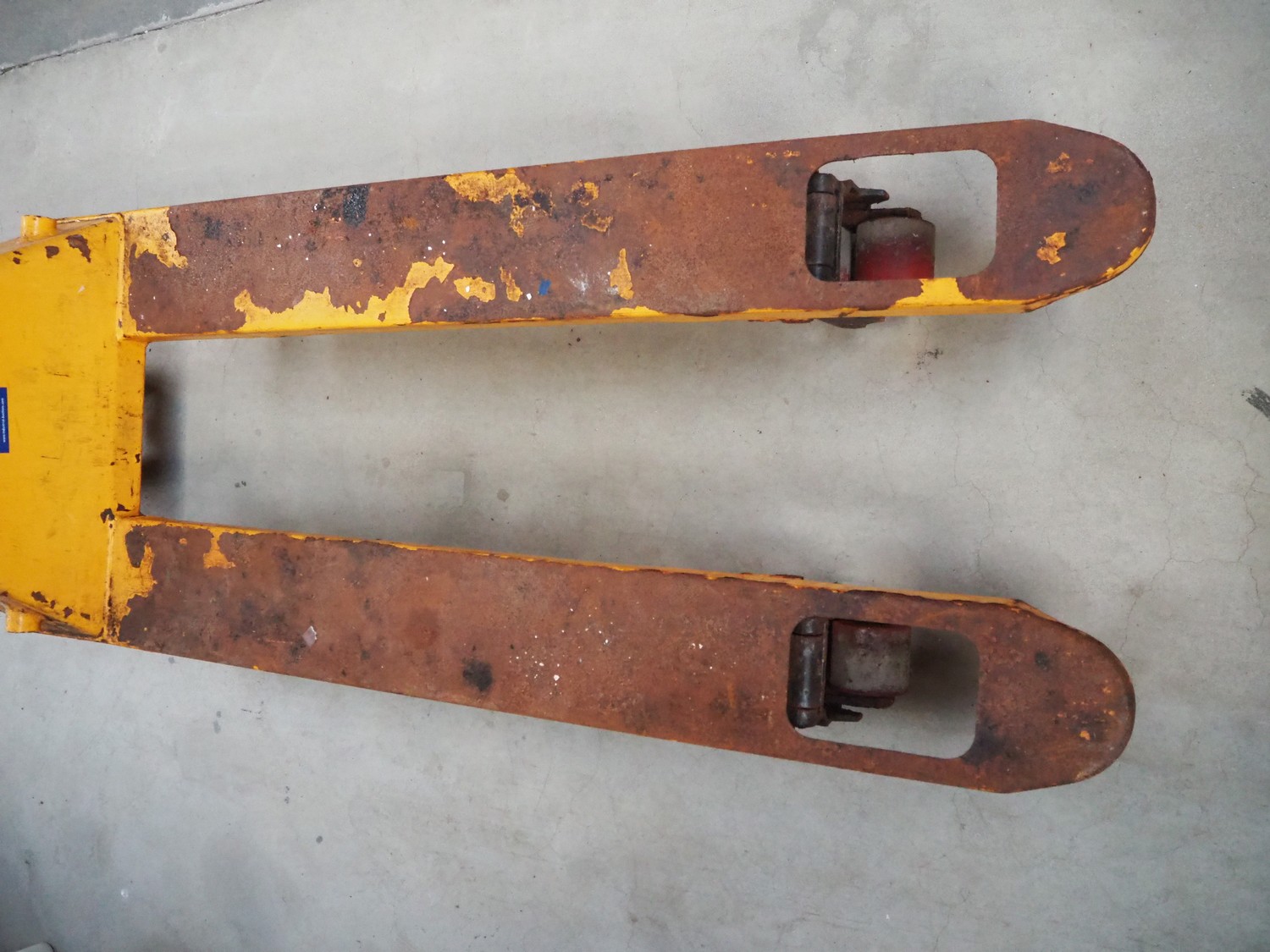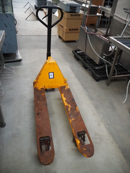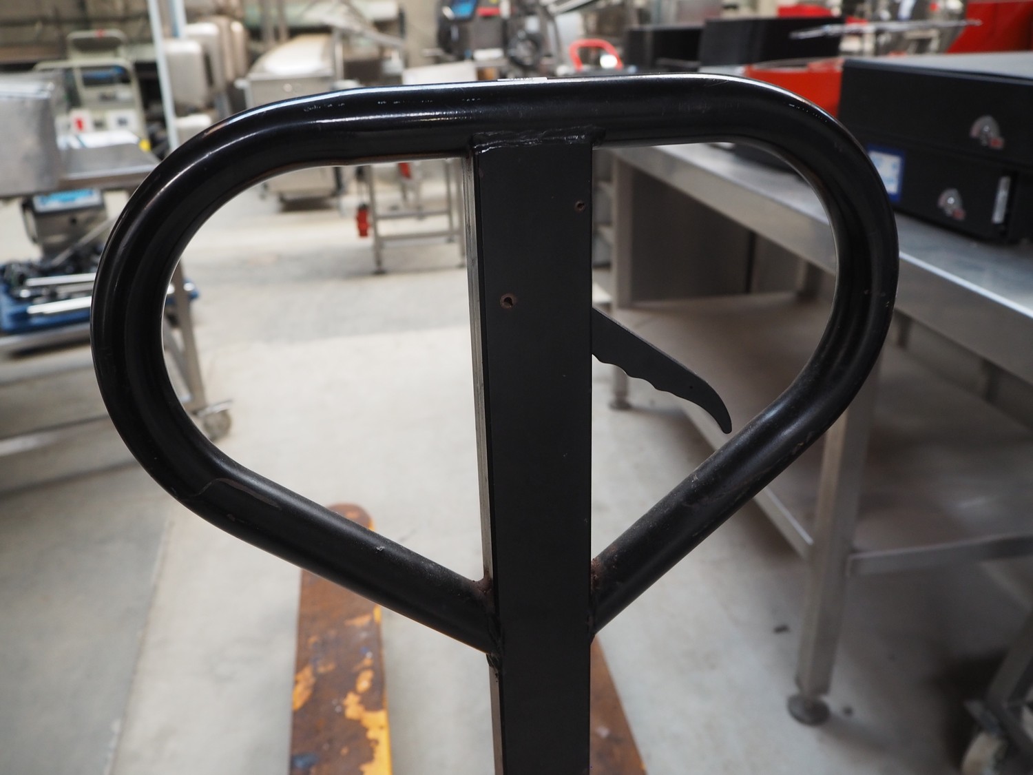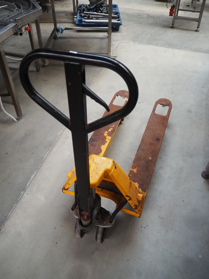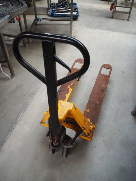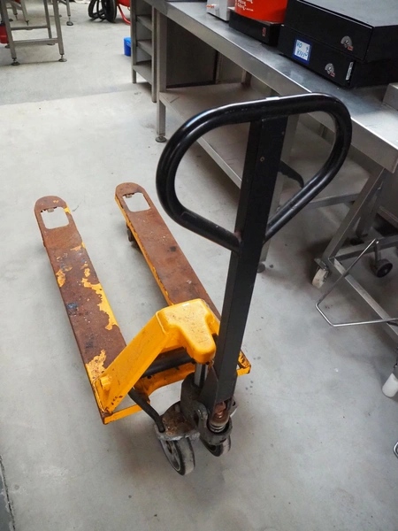 AC-Hand pallet lifter, serial number: 12011395-7/104, year of construction: 2012, capacity: 2500 kg, fork width: 540 mm, fork length: 1150 mm, total dimensions: 1550 mm x 550 mm x 1250 mm. Defect.