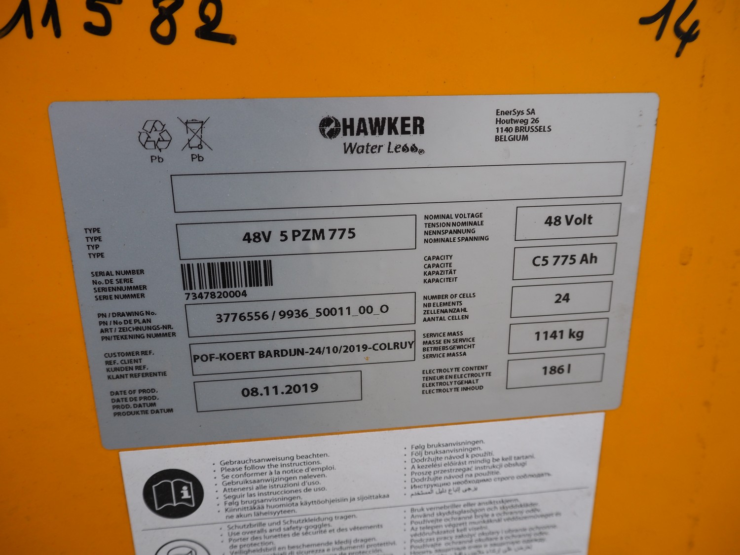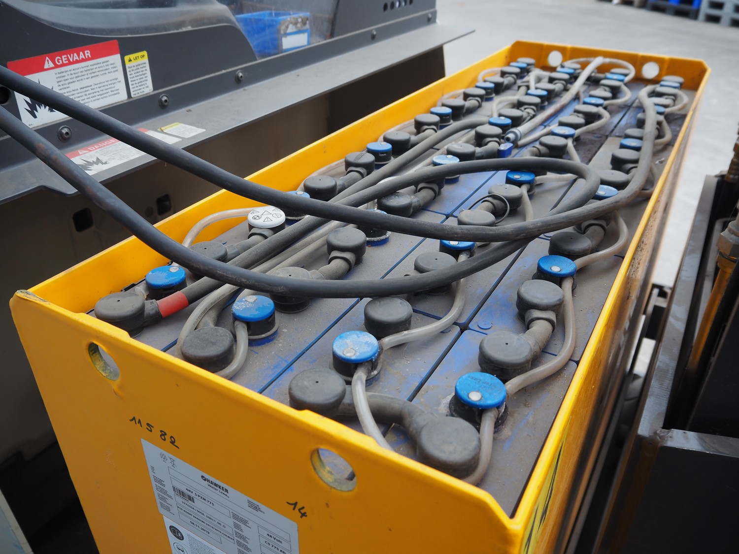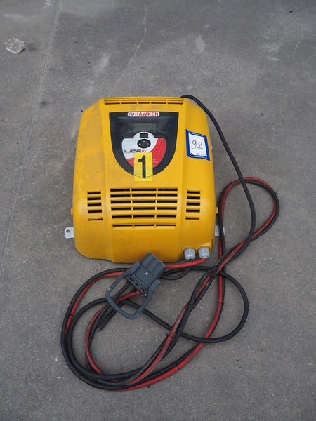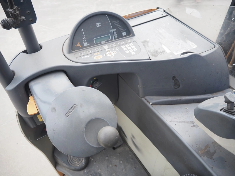 Crown Gabelstapler GmbH & Co. KG reach truck, model number: ESR 5200, serial number: 5A221602, nominal capacity: 1600 kg, retracted mast height: 3690 mm, fork length: 1140 mm, total dimensions: 2600 mm x 1300 mm x 3350 mm. Including Hawker battery charger, 3x400 V, 50 Hz, 10 A.