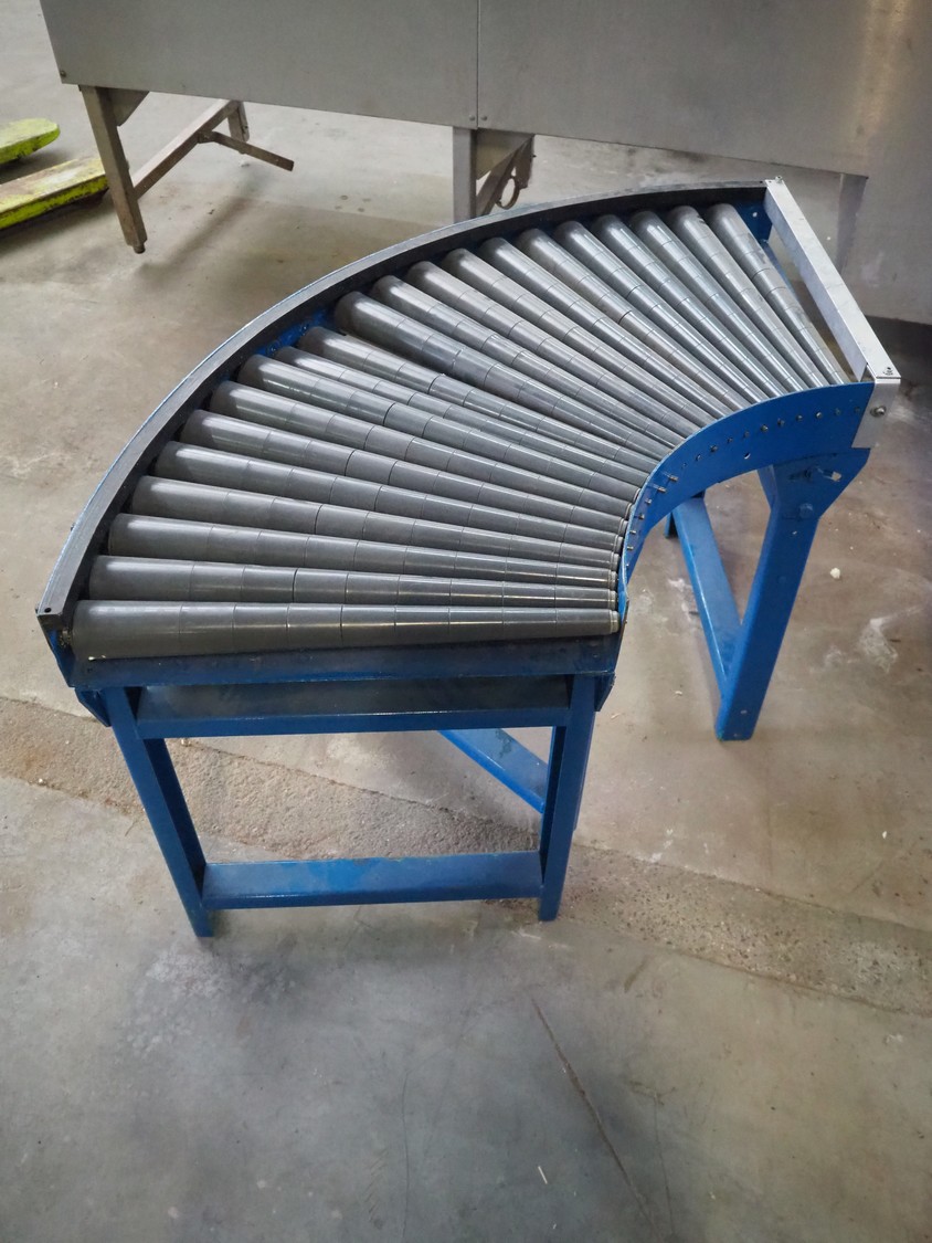 45° curved roller conveyor, steel frame, plastic rollers, roller width: 505 mm, total dimensions: 1280 mm x 540 mm x 710 mm.