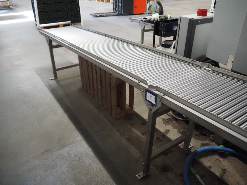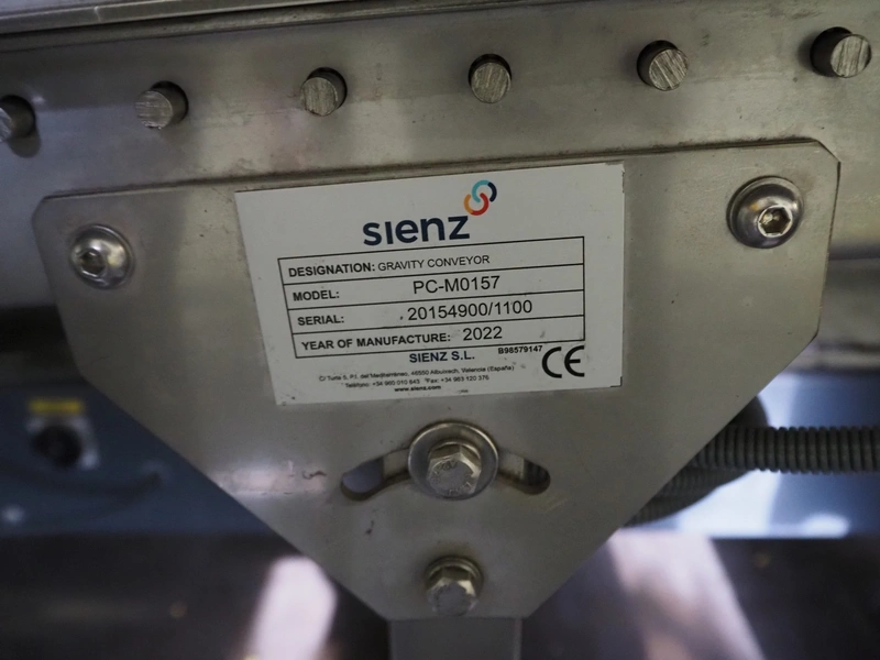 Sienz S.L. roller conveyor, model: PC-M0157, serial number: 20154900/1100, year of construction: 2022, s/s rollers, roller width: 500 mm, total dimensions: 5300 mm x 600 mm x 1000 mm.