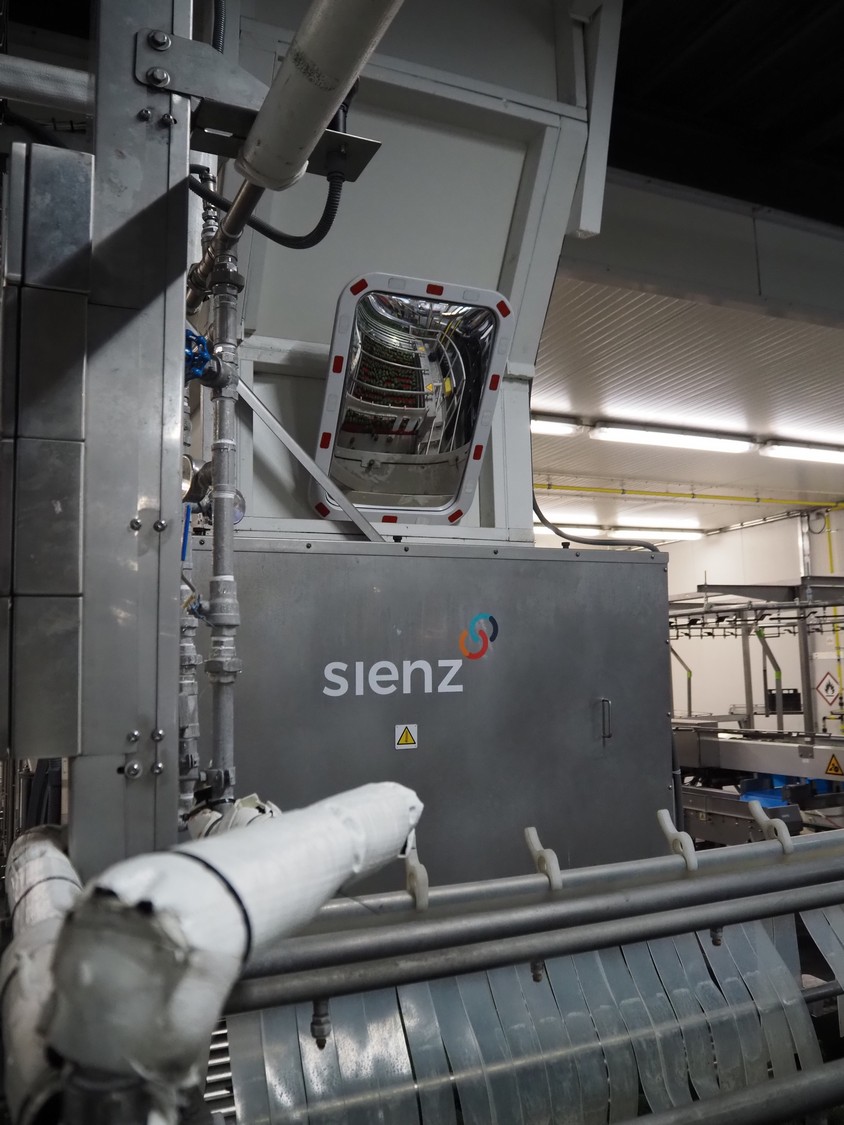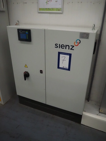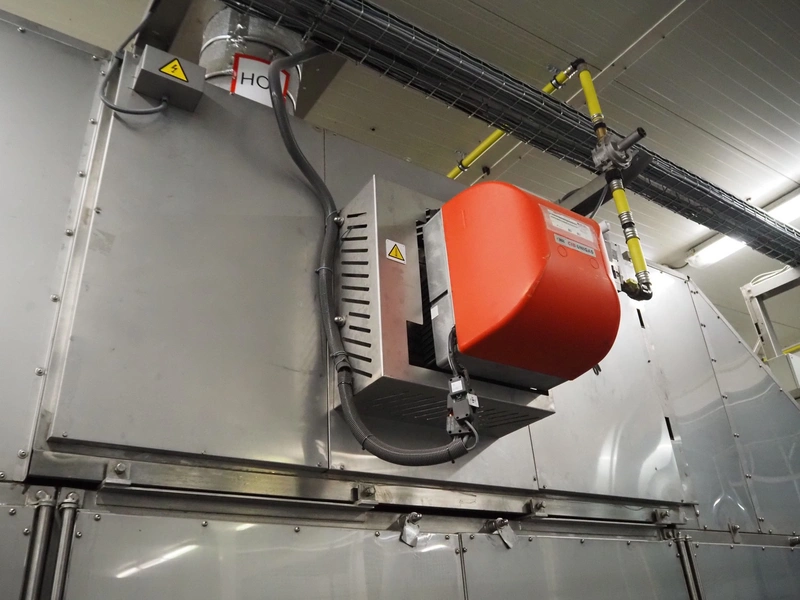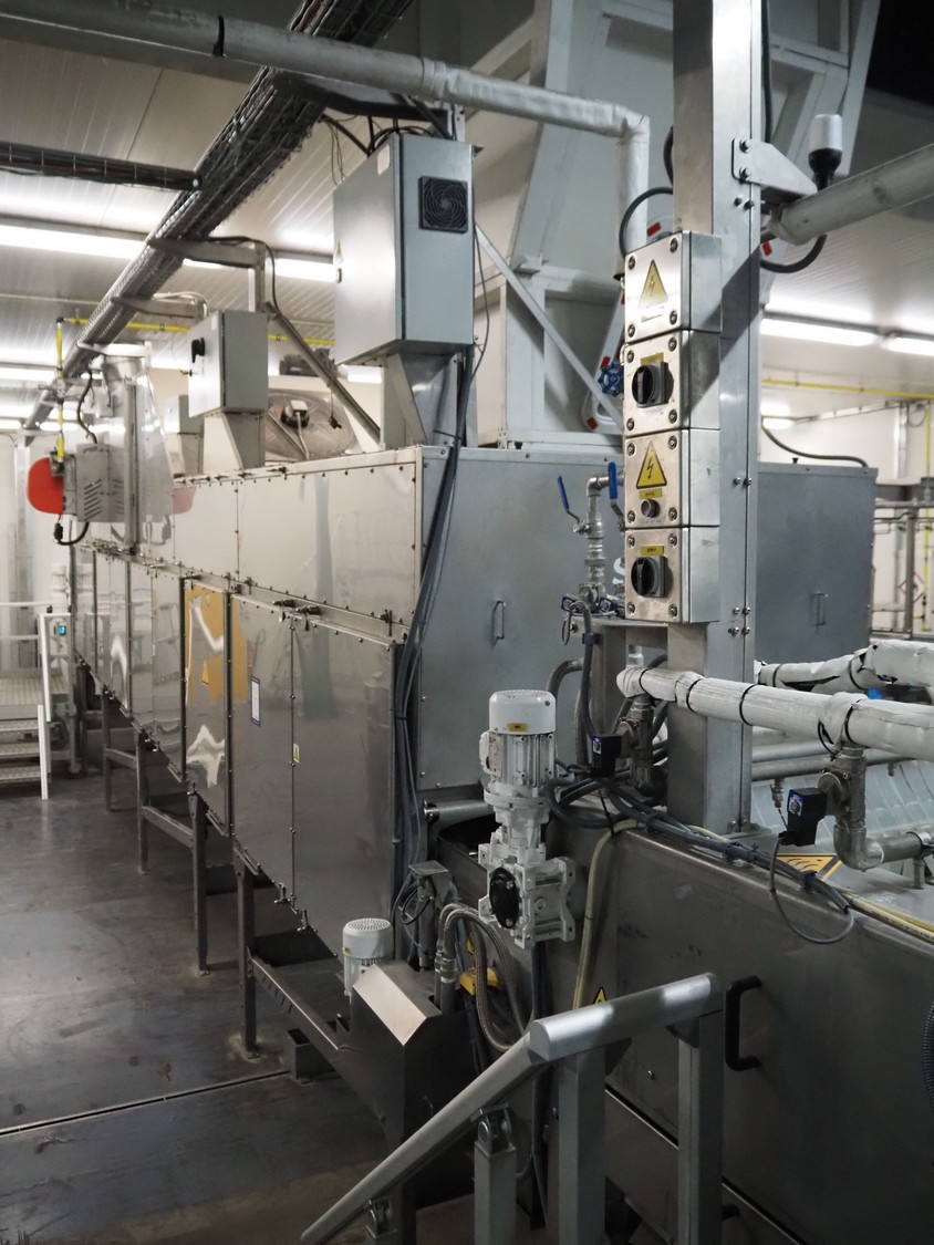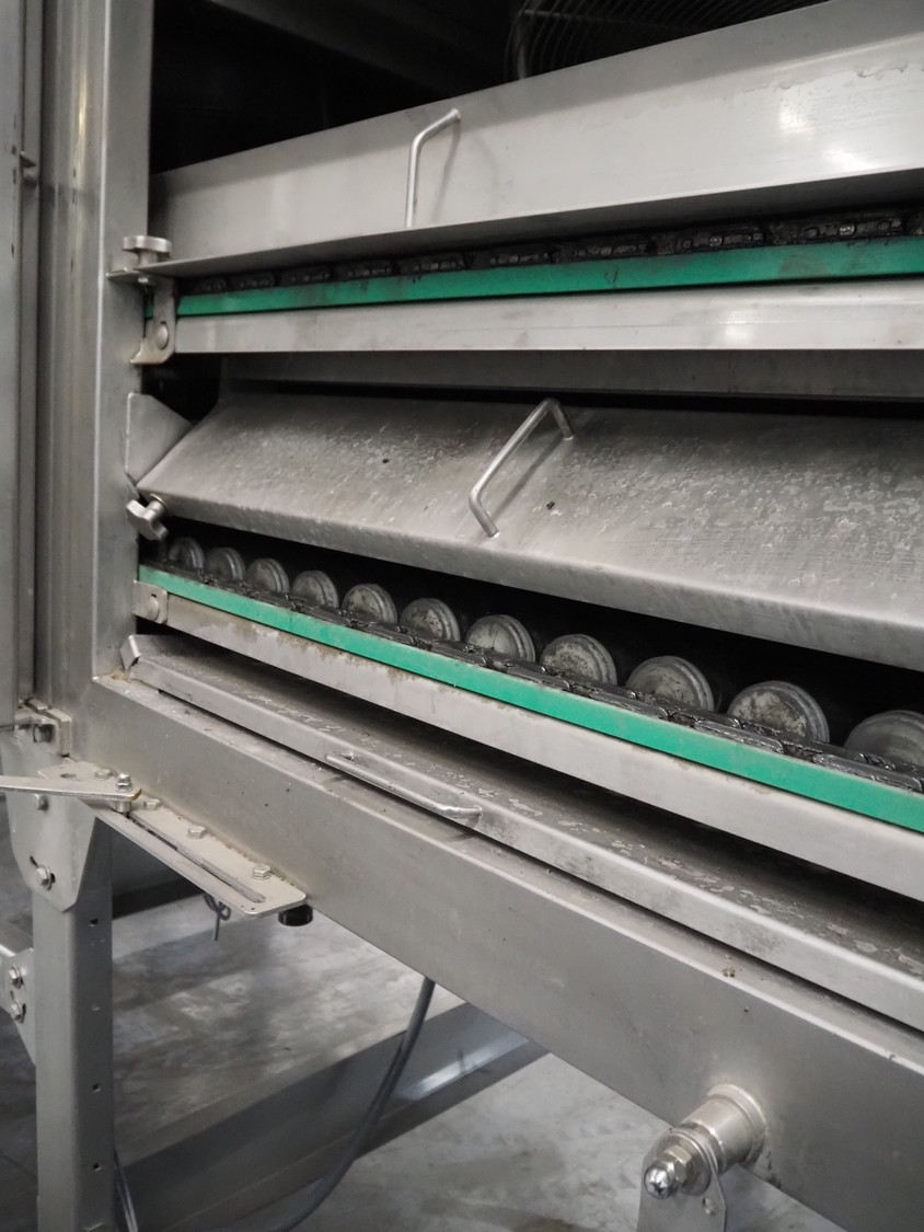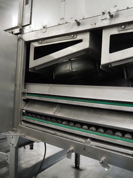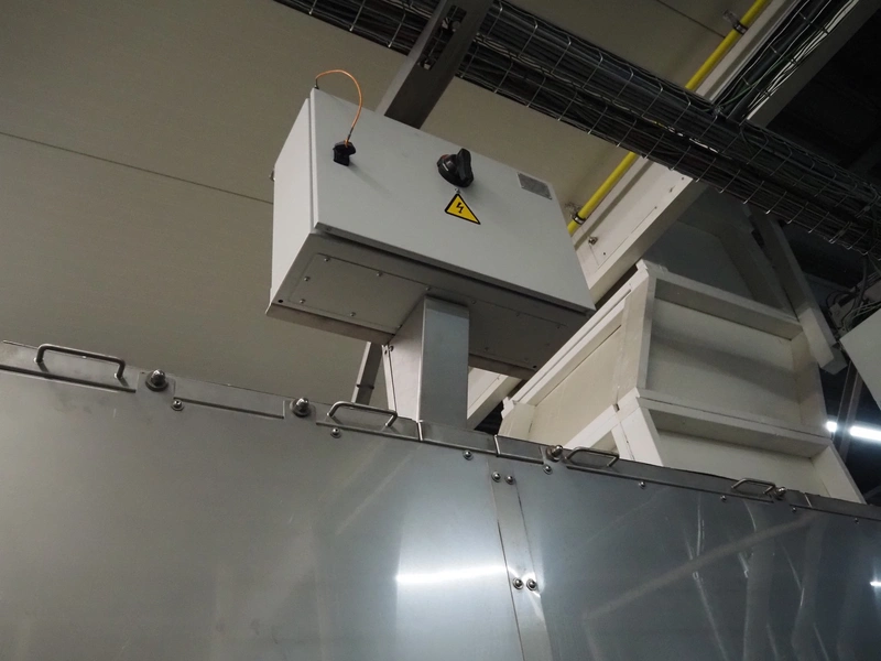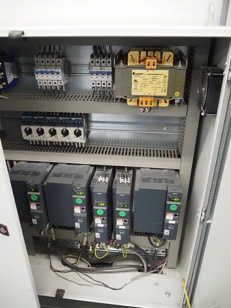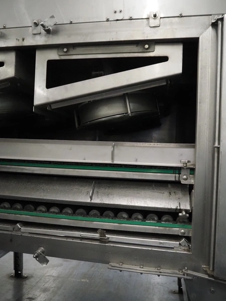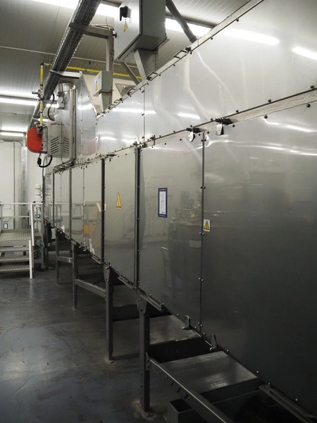 Sienz S.L. drying tunnel, model: SMCC1.1, serial number: 20154900/500, 400 V, 3 Ph, 50 Hz, 14 A, s/s rollers, roller width: 1500 mm, total dimensions: 10000 mm x 2300 mm x 3550 mm. Including switch cabinet, dimensions: 1000 mm x 300 mm x 1200 mm.