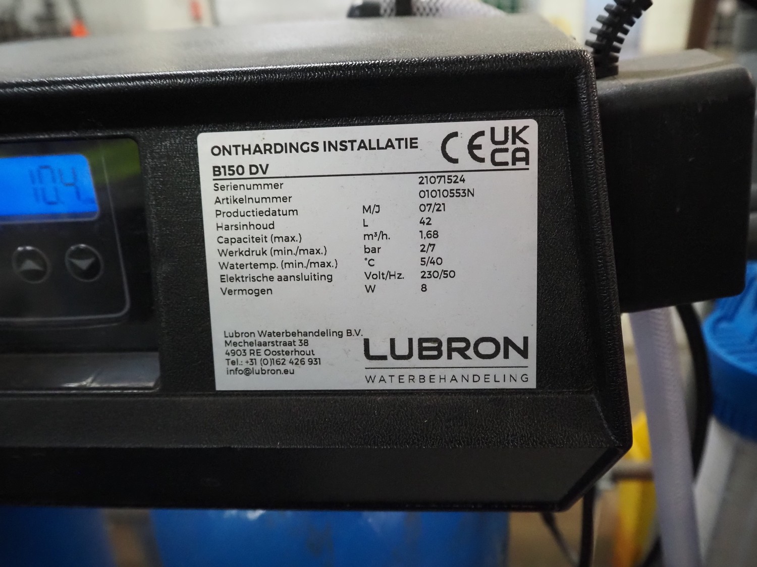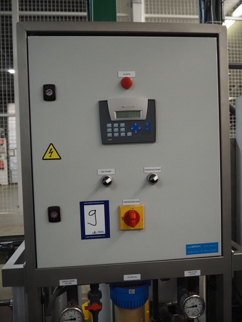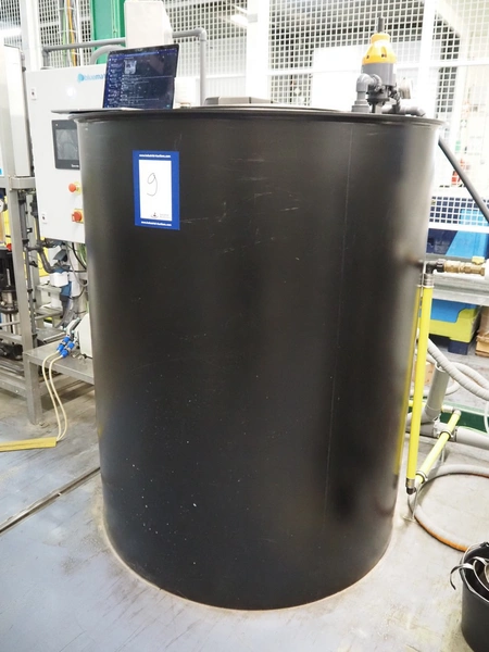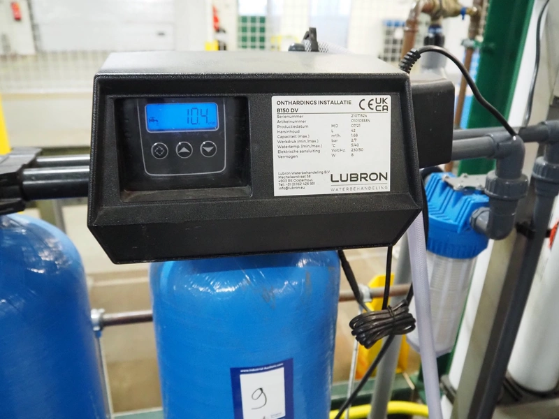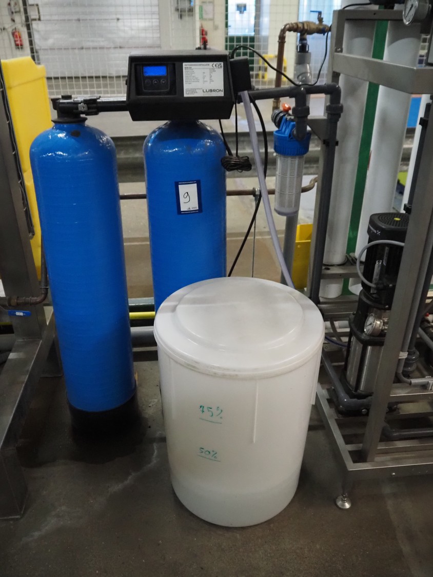 Labron Waterbehandeling B.V. CIP installation consisting of: Labron Waterbehandeling B.V. water softener, serial number: 21071524, year of construction: 2021, 230 V, 50 Hz, 8 W, capacity: 1.68 m³ per hour, dimensions: (2x) Ø 260 mm x 1200 mm, plastic tub for salt, dimensions: Ø 480 mm x 650 mm, pump installation with switch cabinet, dimensions: 750 mm x 700 mm x 1950 mm, plastic storage tank, dimensions: Ø 1300 mm x 1600 mm.