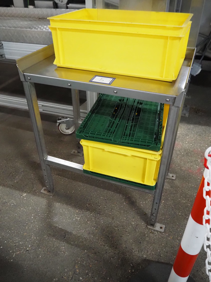 S/s table, dimensions: 770 mm x 500 mm x 900 mm.
