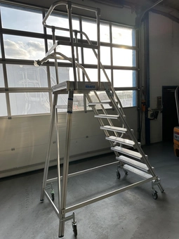 Krause mobile aluminum stairs, 8 steps, working height: 2000 mm, total dimensions: 2000 mm x 1000 mm x 3000 mm.€ 100,000 bids26/03/2026 14:50