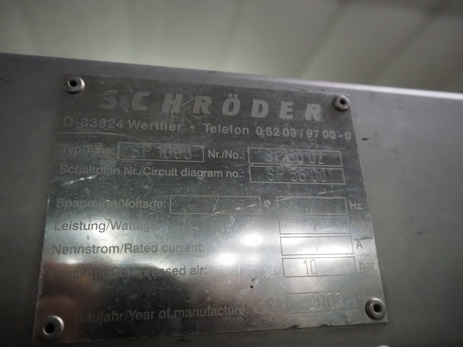 Schröder ham press, type: SP 1000, machine number: SP.60.02, year of construction: 2002, dimensions: 2000 mm x 1000 mm x 2000 mm.