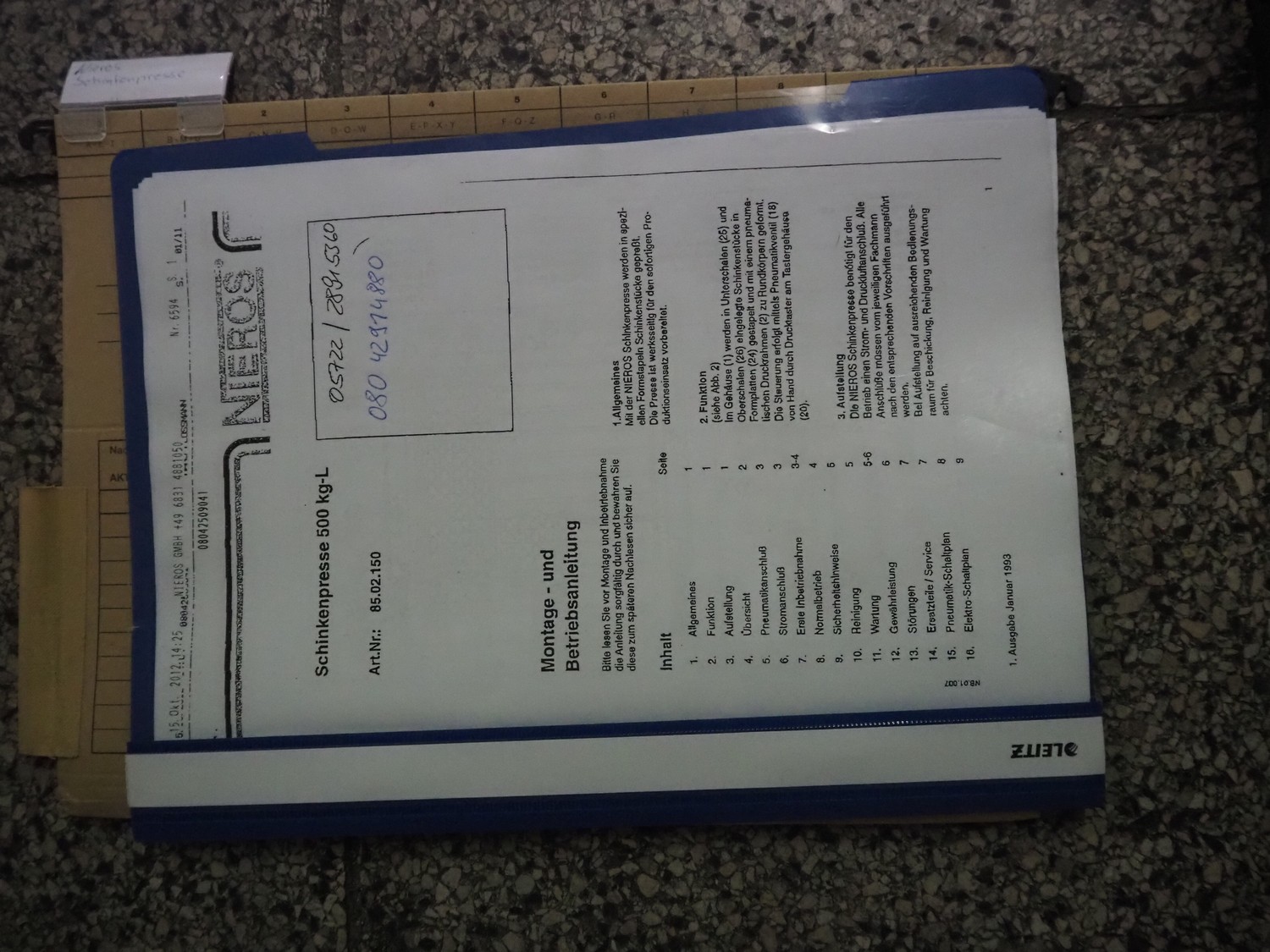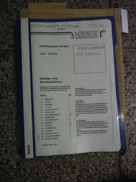 Nieros ham press, dimensions: 1930 mm x 980 mm x 1910 mm.