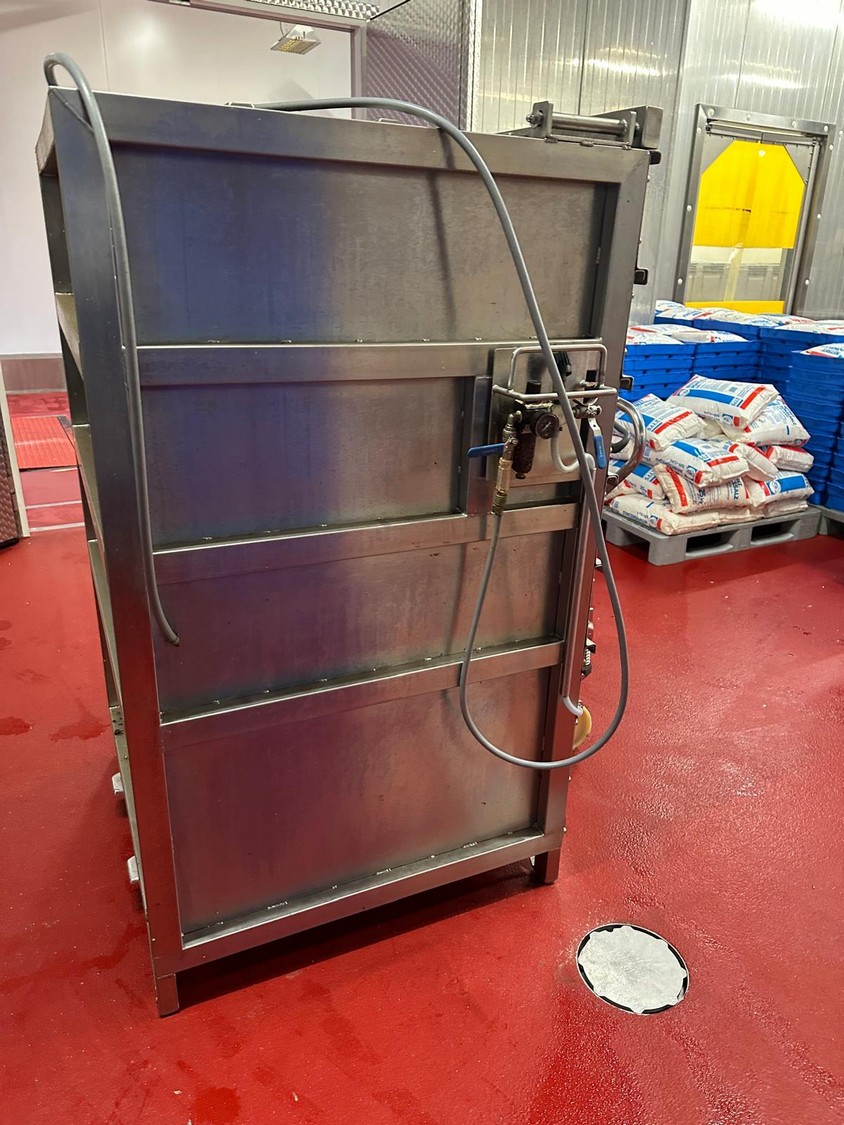 Eberhardt ham press, weight: 500 kg, dimensions: 1800 mm x 1180 mm x 1060 mm.