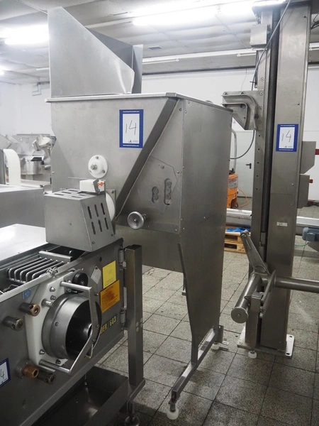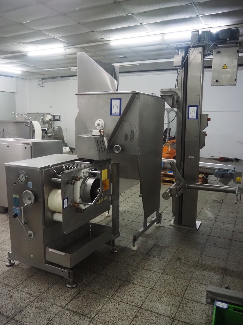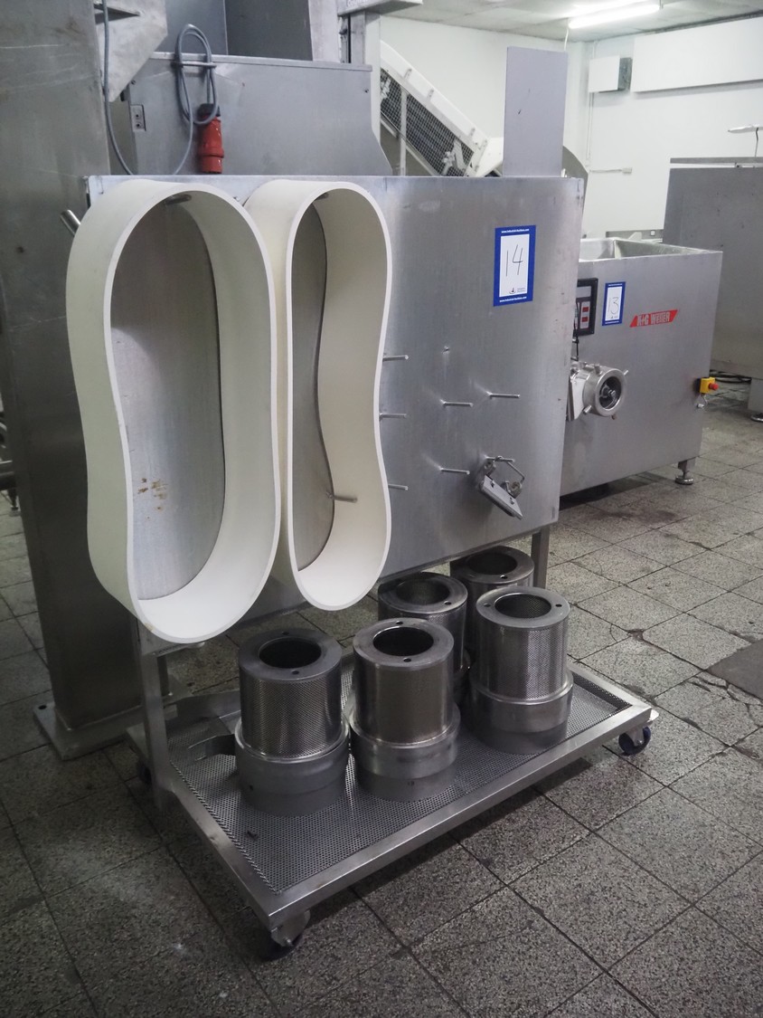 Baader separator with Storm lifter for meat bins and infeed bunker, consisting of: