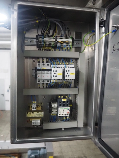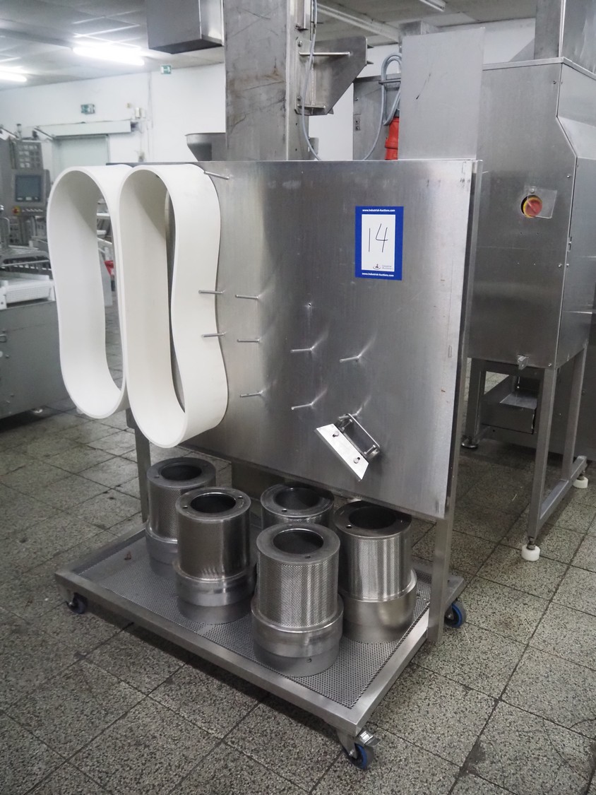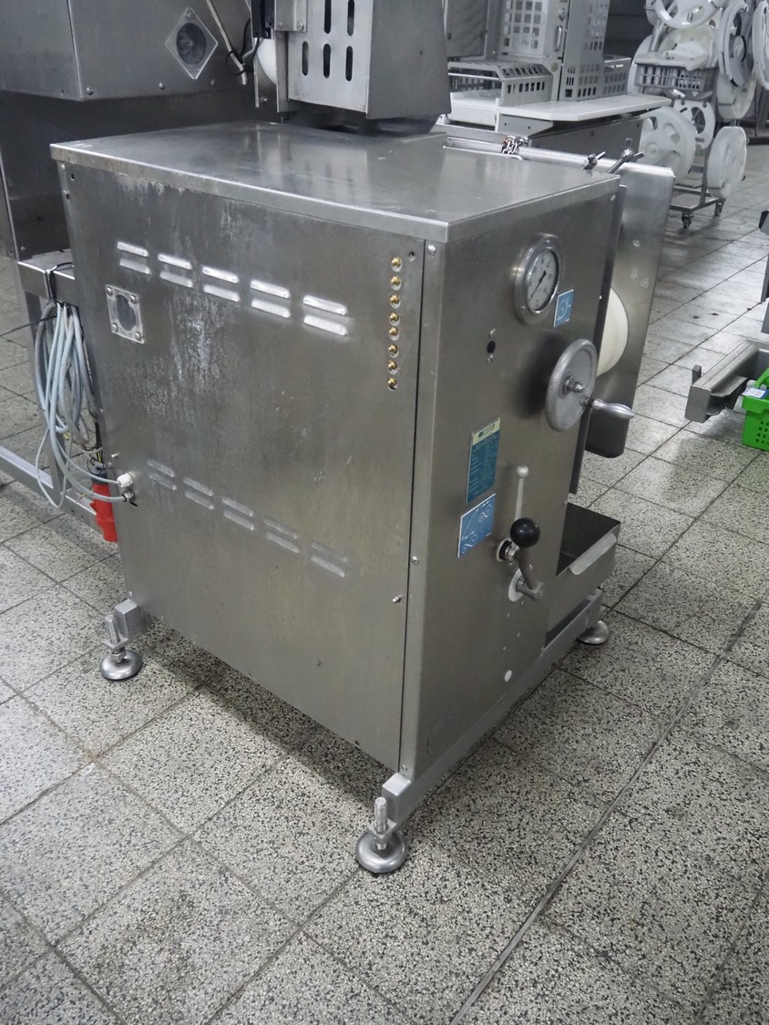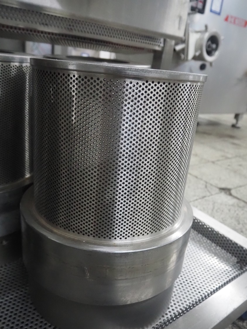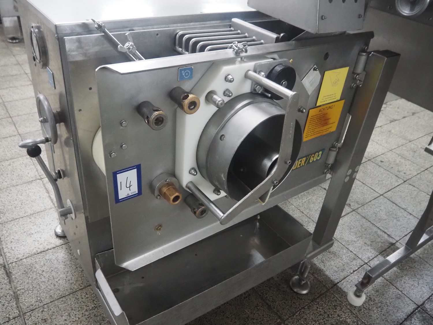 - Baader separator type: 603, number: 120672, year of construction: 2000, 400 V, 3 Ph, 50 Hz, 9.0 A, diameter drum: 260 mm, diameter perforations: 3 mm, plastic belt, belt width: 200 mm, total dimensions separator: 1050 mm x 1200 mm x 1180 mm.