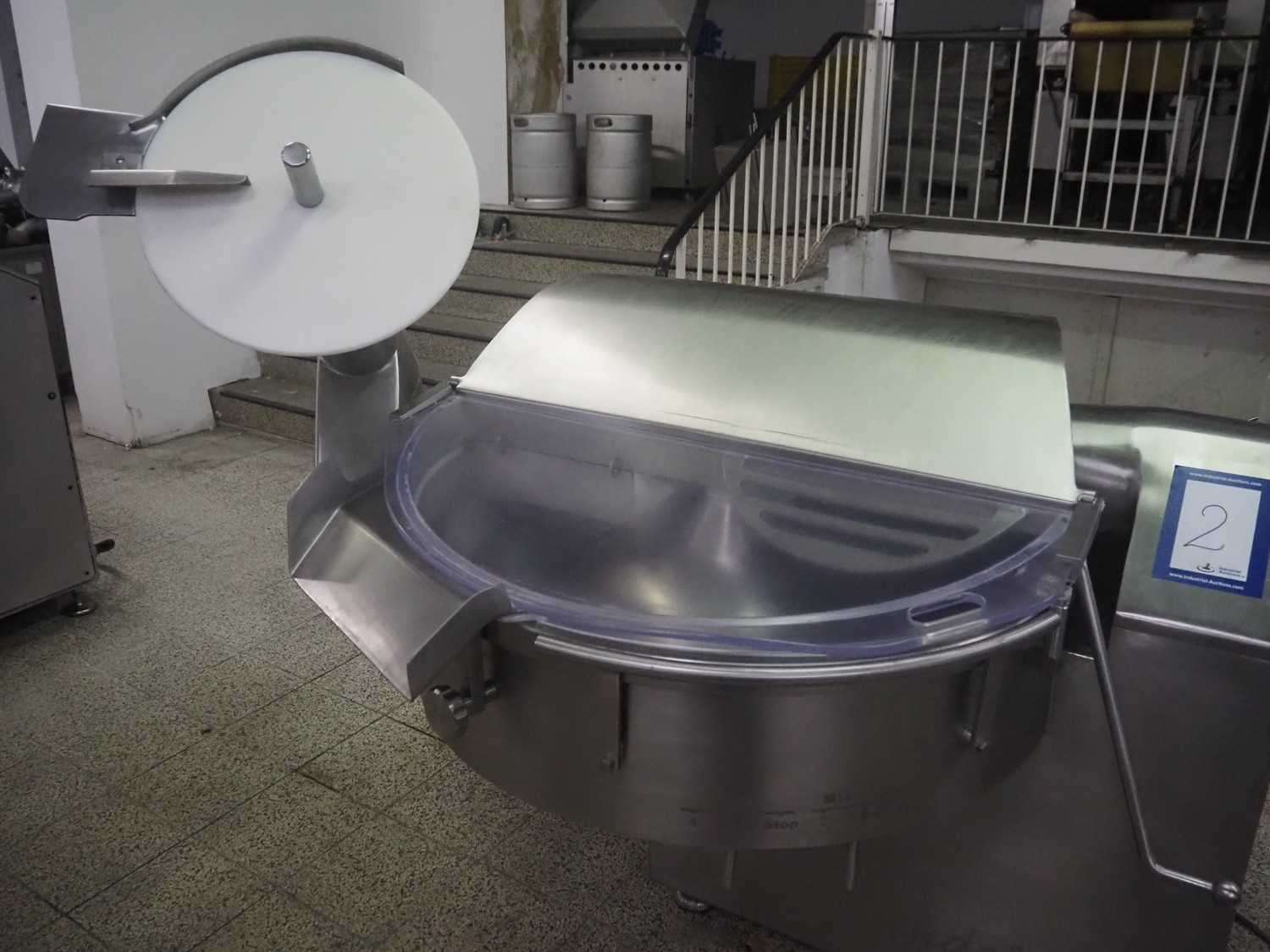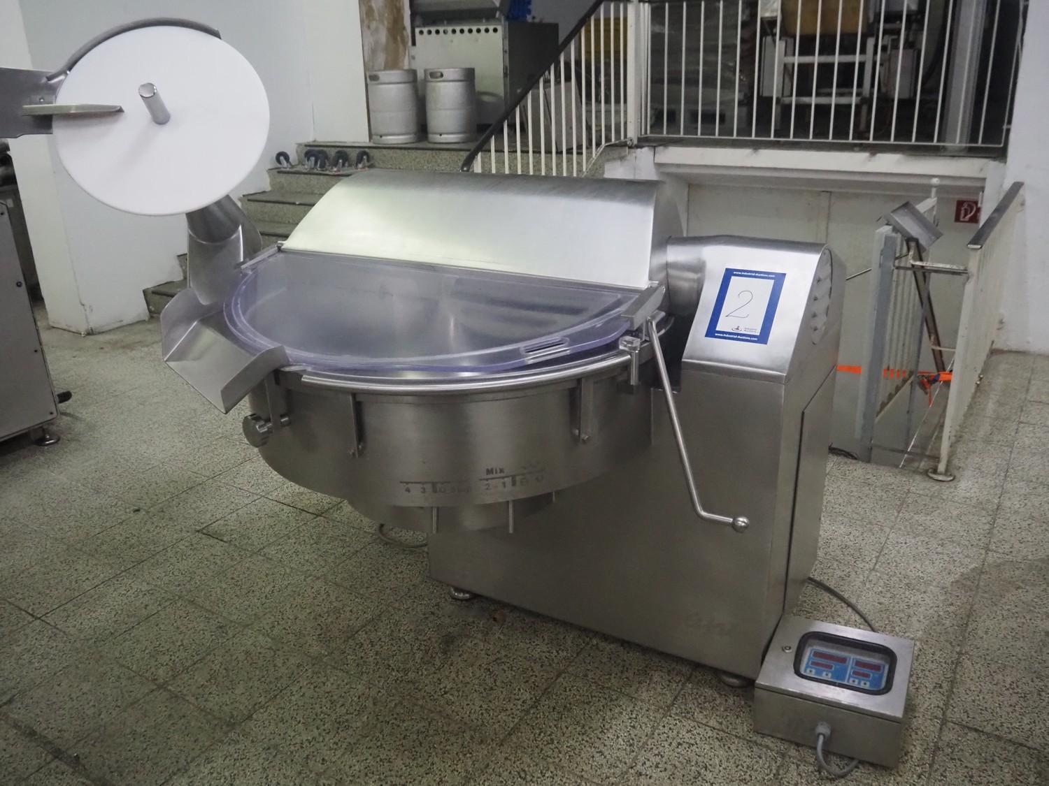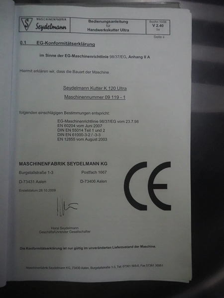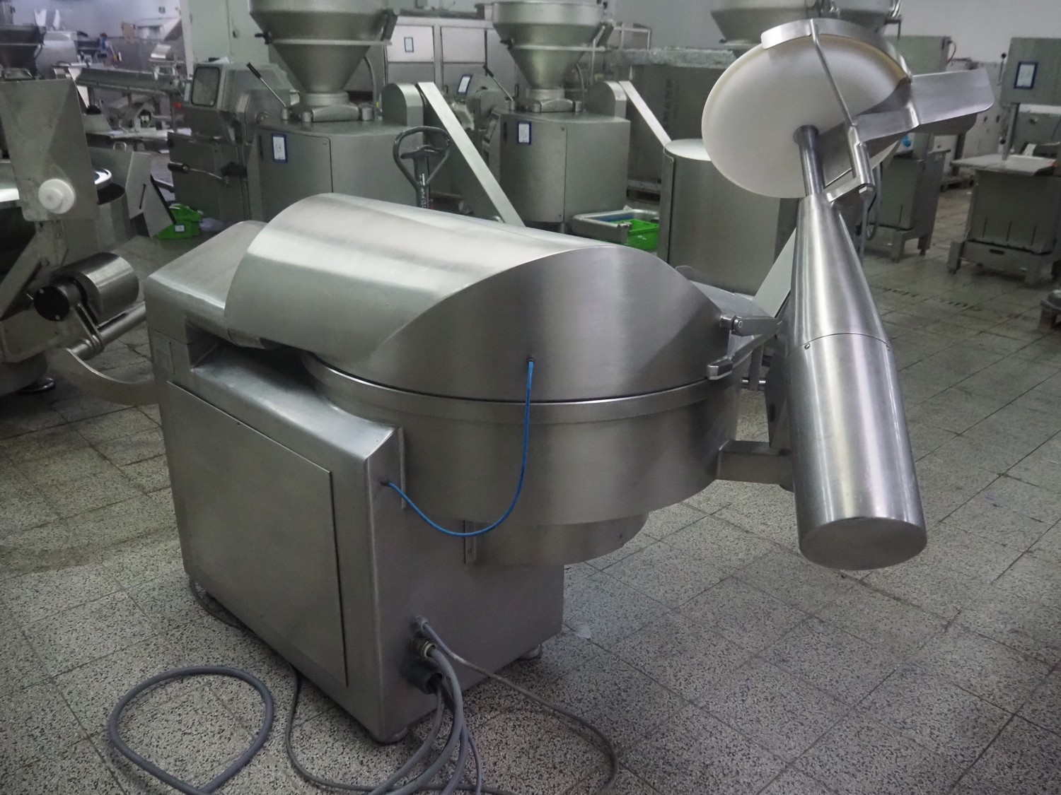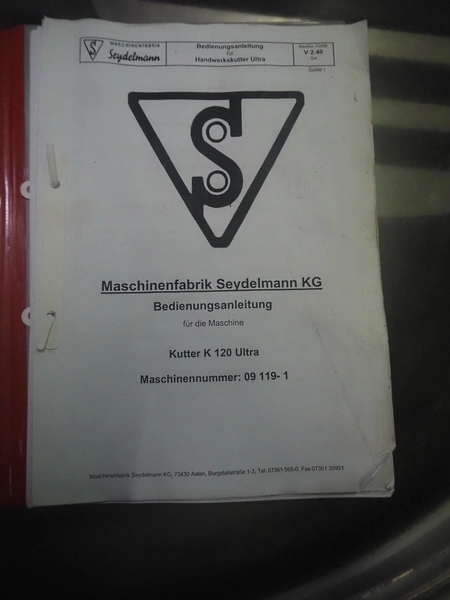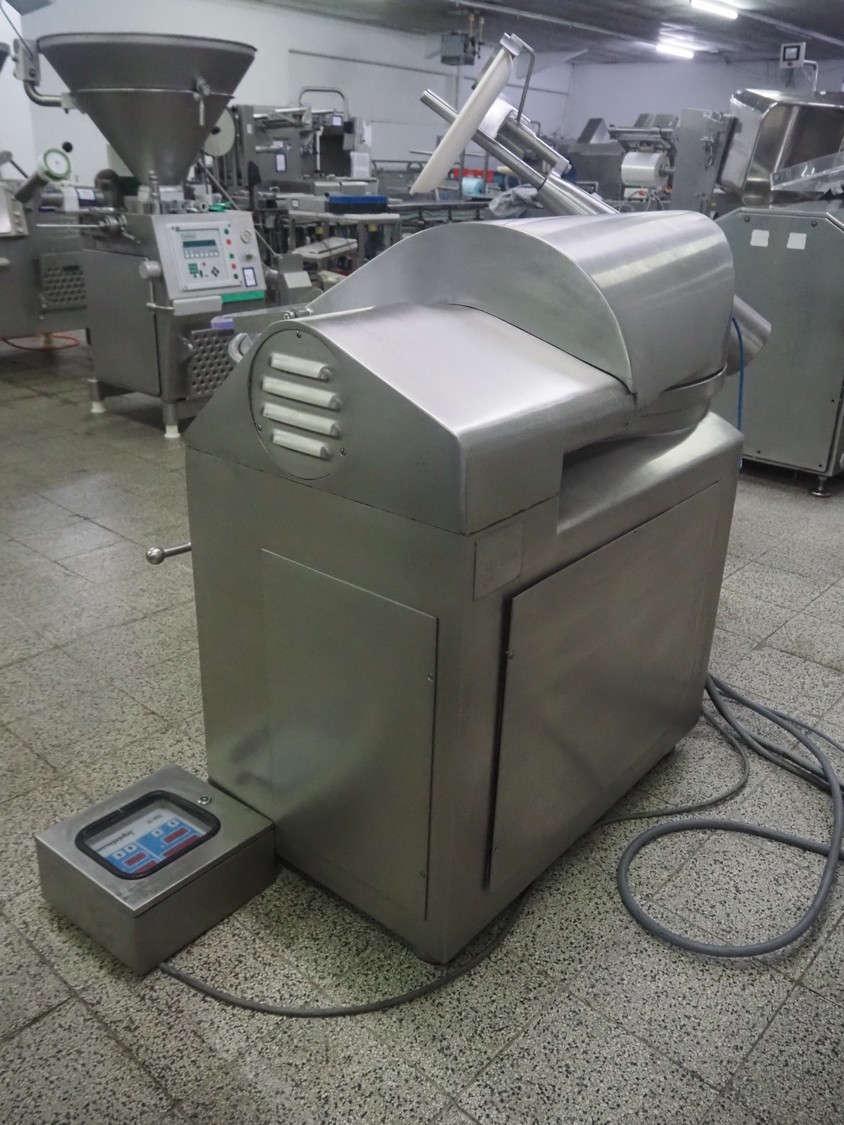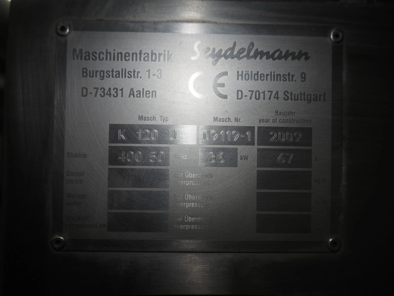 Seydelmann bowl cutter with ejector, type: K 120 U, machine number: 09119-1, year of construction: 2009, 400 V, 50 Hz, 67 A, 36 kW, volume: 120 liter, dimensions: 1900 mm x 1400 mm x 1700 mm. Including s/s switch cabinet.