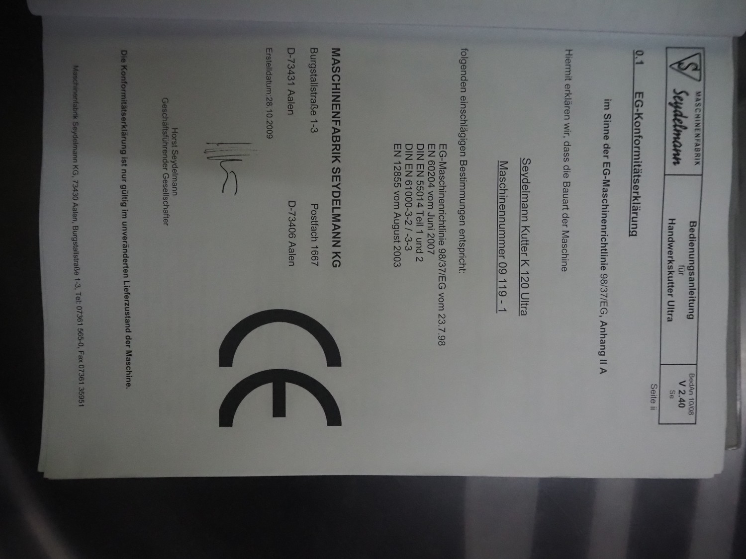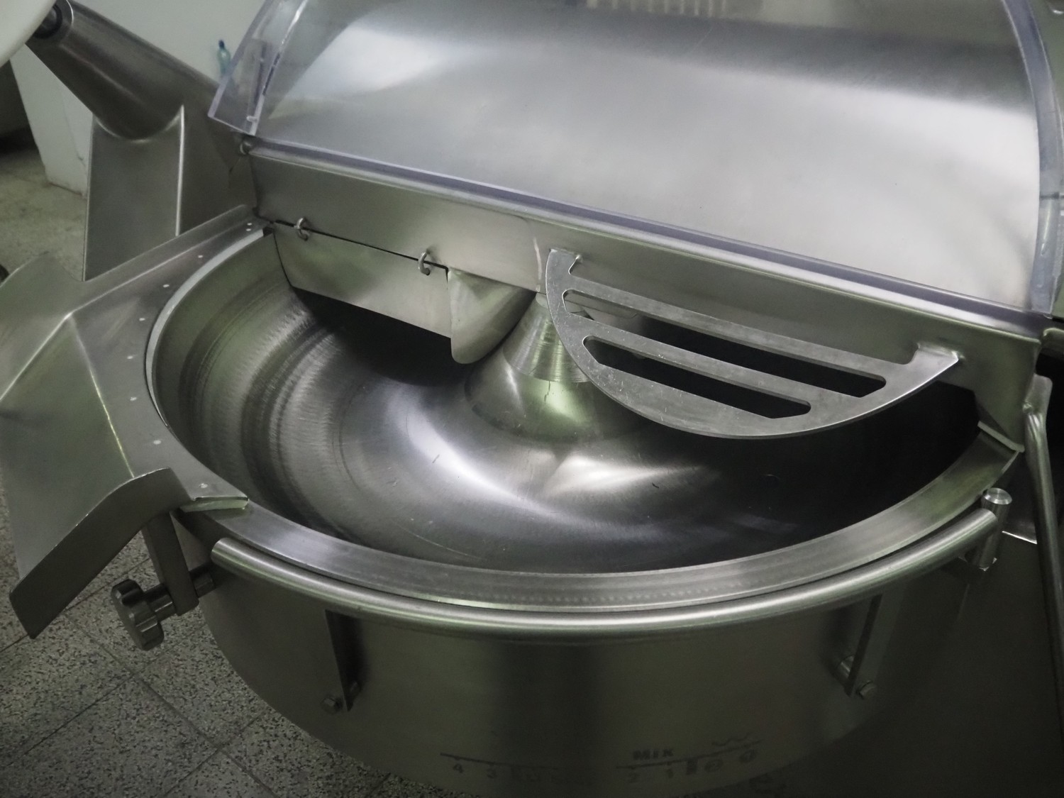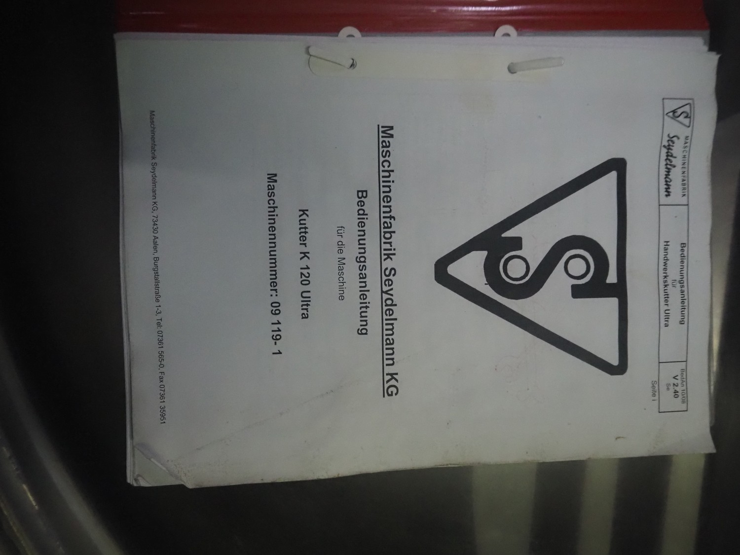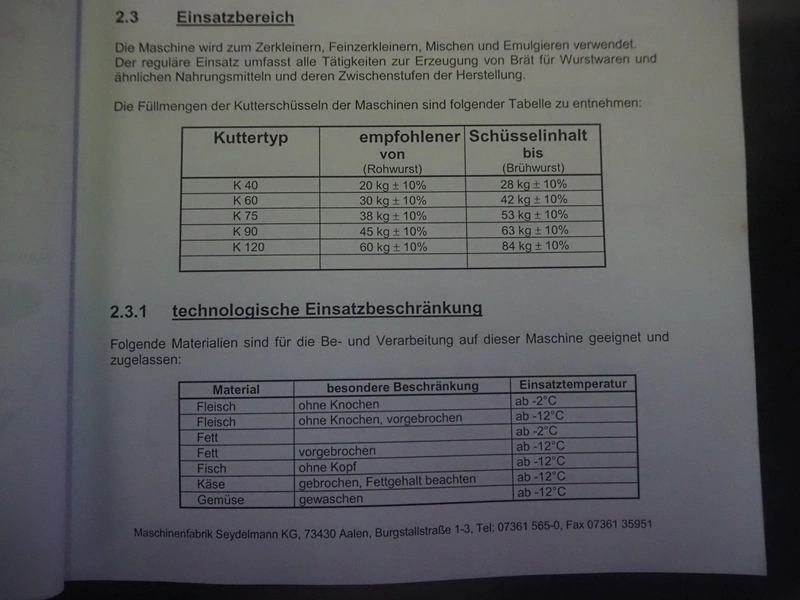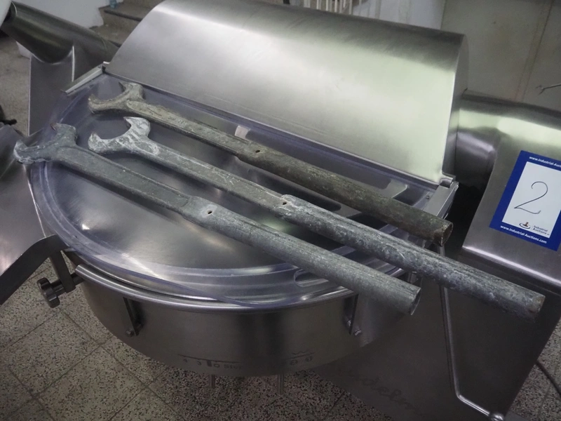Seydelmann bowl cutter with ejector, type: K 120 U, machine number: 09119-1, year of construction: 2009, 400 V, 50 Hz, 67 A, 36 kW, volume: 120 liter, dimensions: 1900 mm x 1400 mm x 1700 mm. Including s/s switch cabinet.