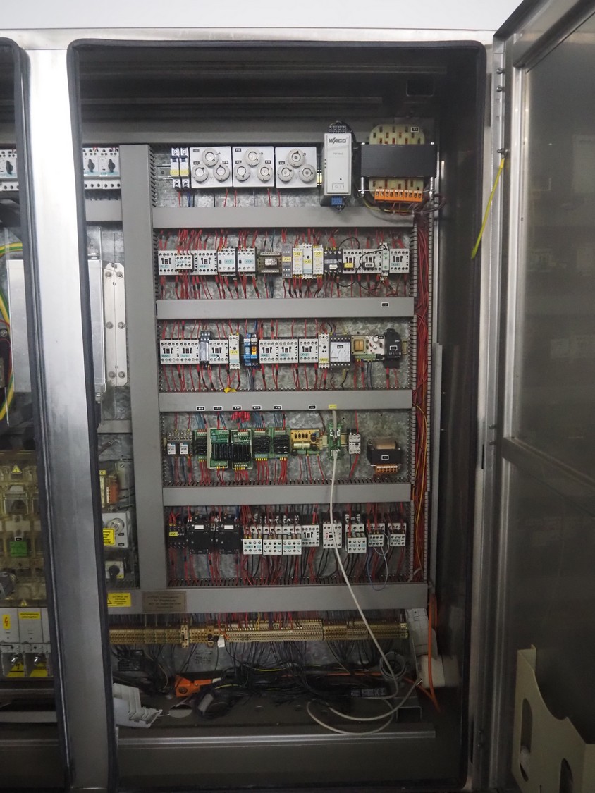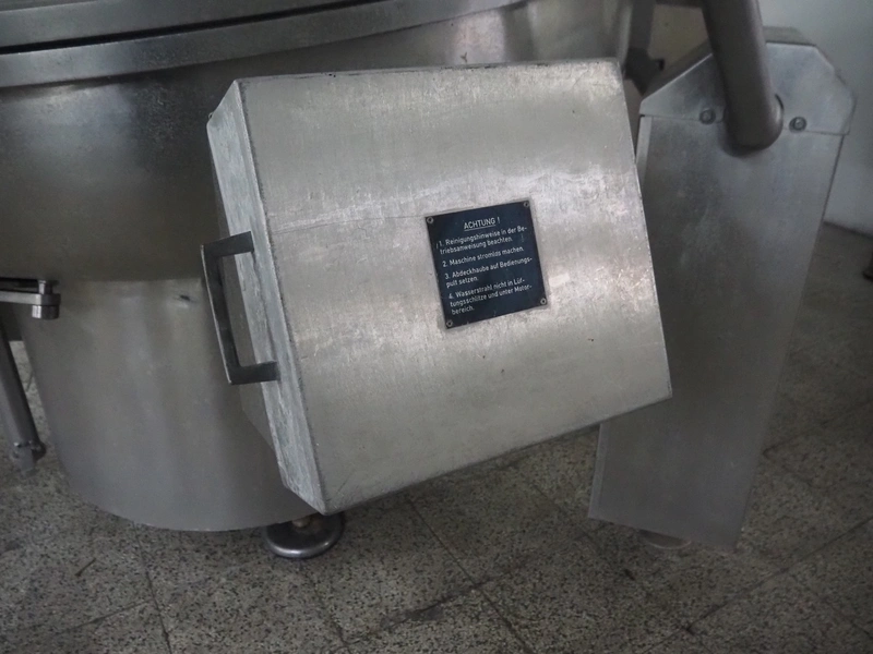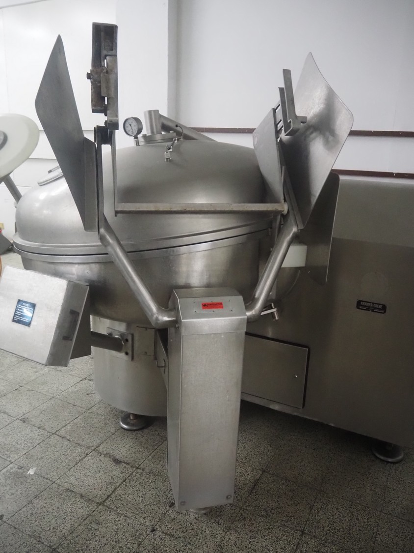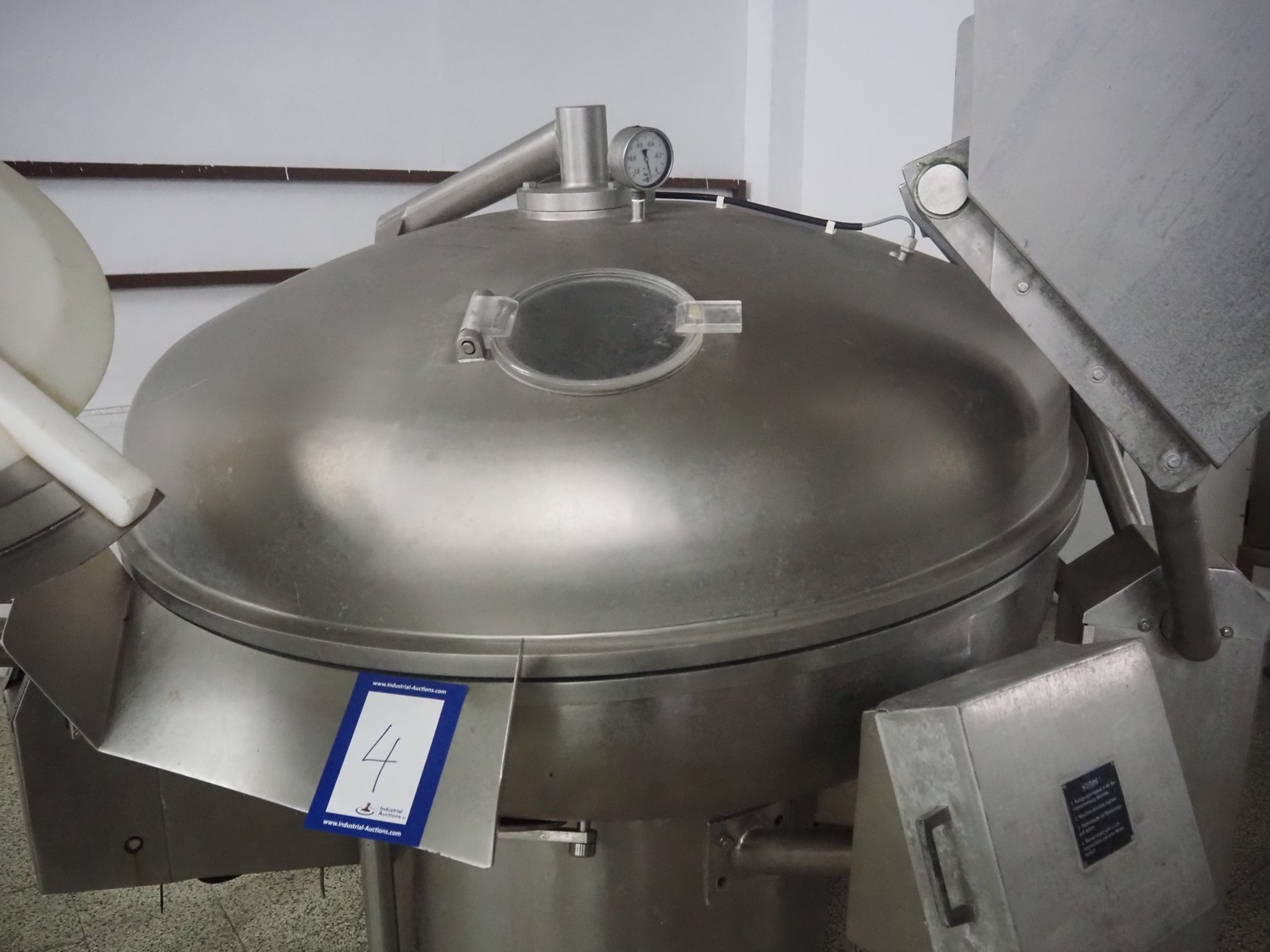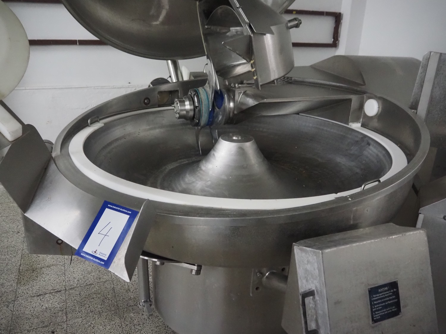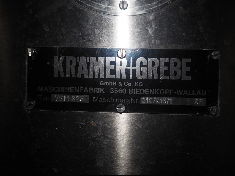 Kramer+Grebe bowl cutter with lifter for meat bins and ejector, type: VSM 325, machine number: 212/215/1, year of construction: 86, 220/380 V, 3 Ph, 50 Hz, 260/300 A, diameter s/s bowl: 1500 mm, total dimensions: 3200 mm x 3150 mm x 1860 mm. Including switch cabinet, dimensions: 1620 mm x 550 mm x 2120 mm.