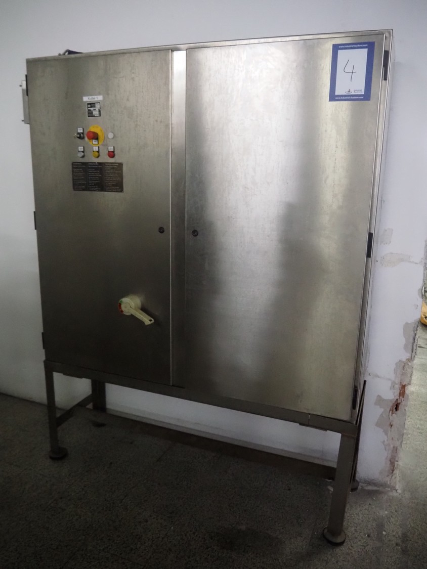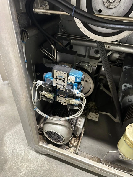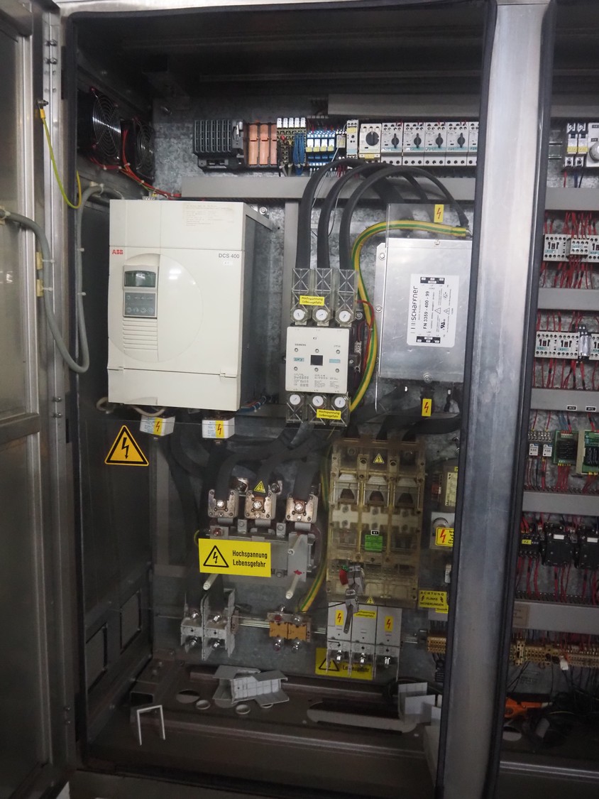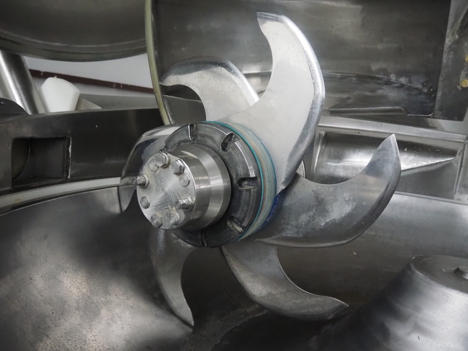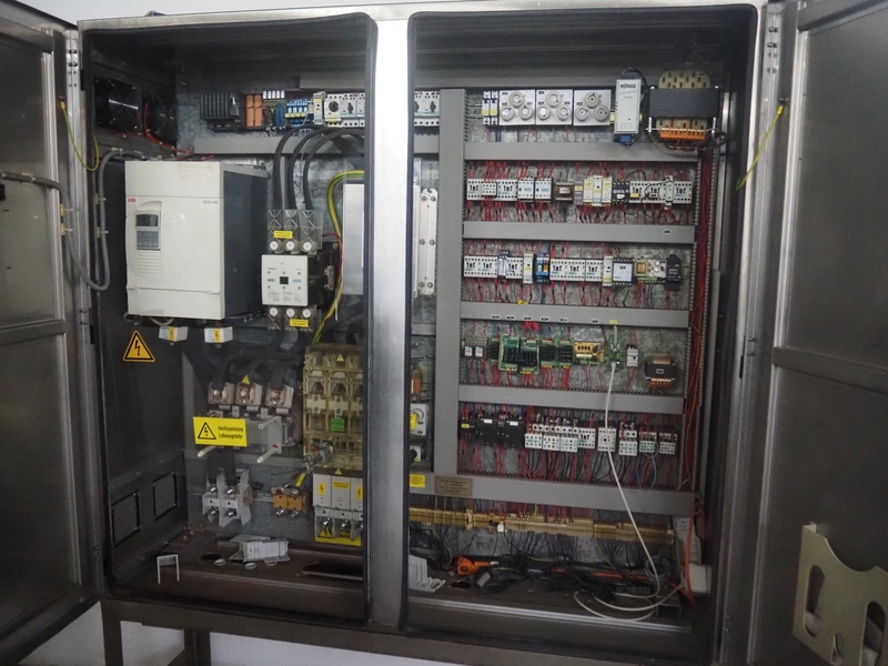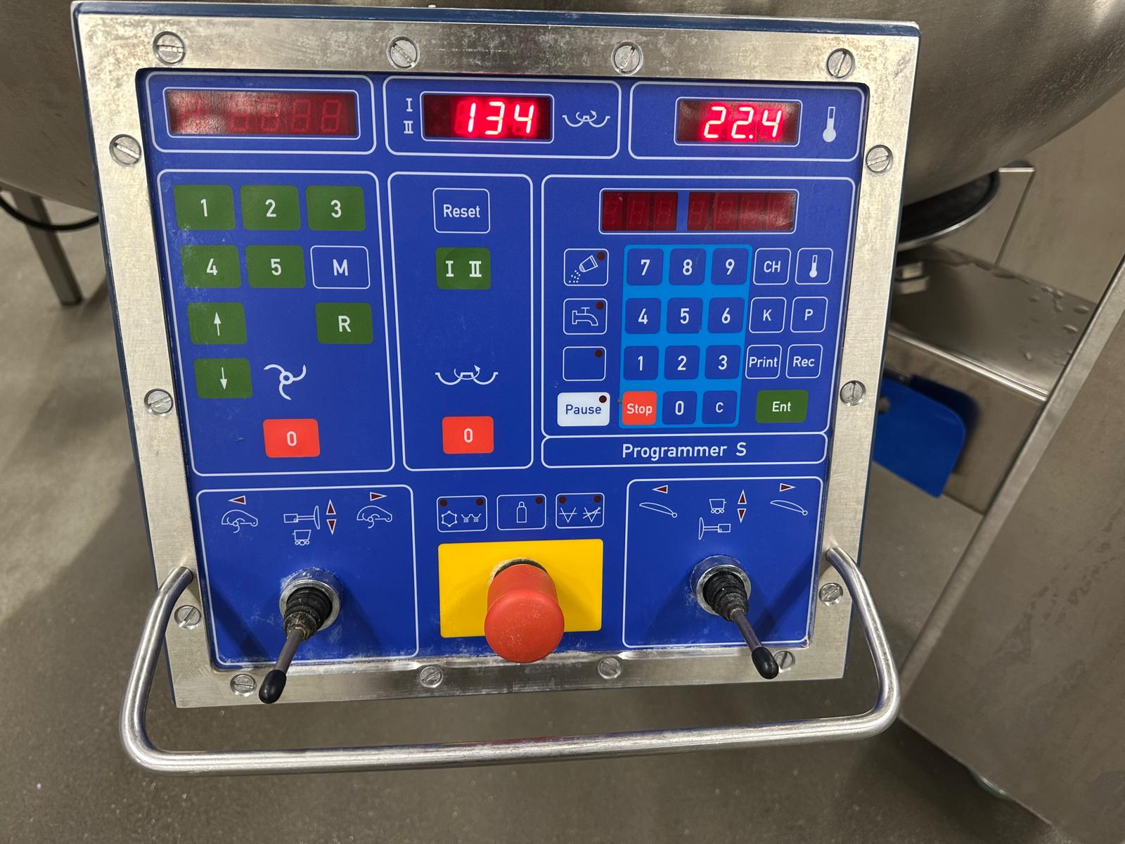 Kramer+Grebe bowl cutter with lifter for meat bins and ejector, type: VSM 325, machine number: 212/215/1, year of construction: 86, 220/380 V, 3 Ph, 50 Hz, 260/300 A, diameter s/s bowl: 1500 mm, total dimensions: 3200 mm x 3150 mm x 1860 mm. Including switch cabinet, dimensions: 1620 mm x 550 mm x 2120 mm.