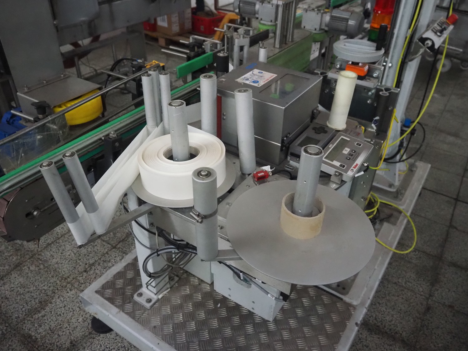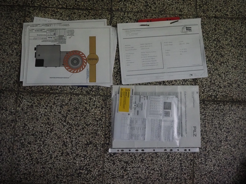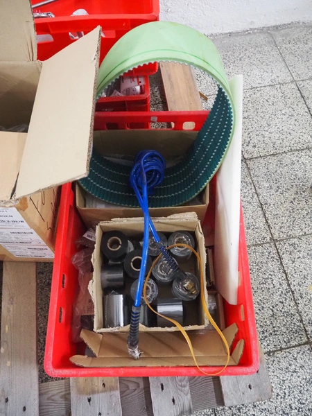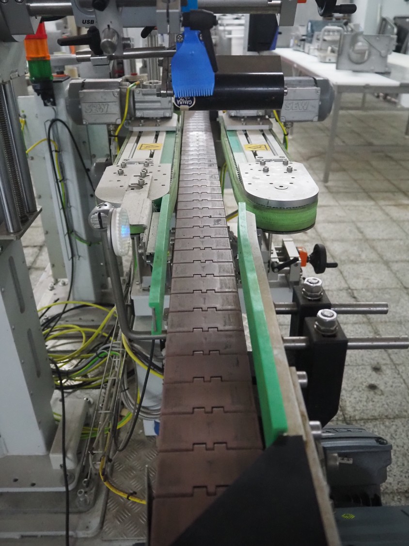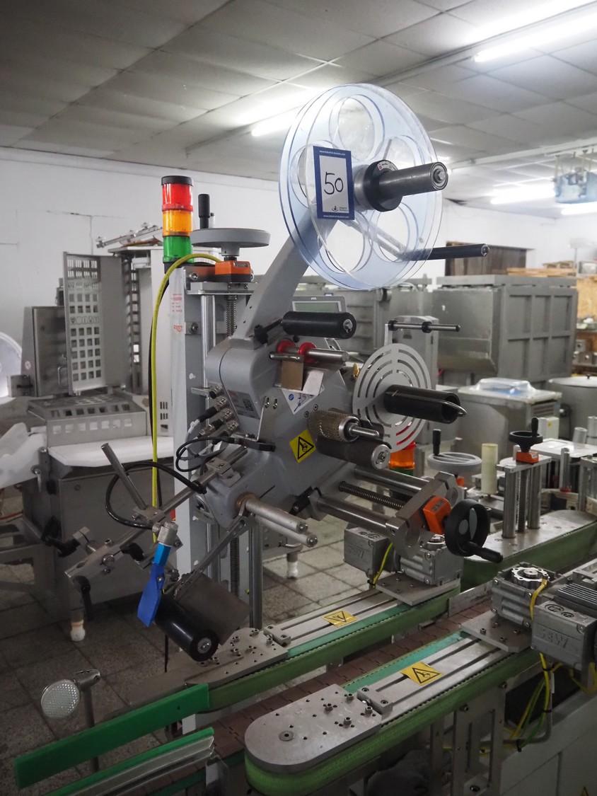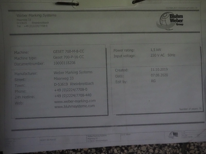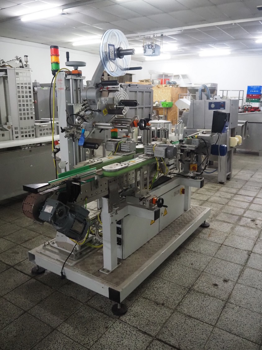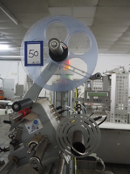 Weber Marking Systems GmbH labelling machine with side and top labeler, type: Geset 700, model: 8, serial number: 50037872, year of construction: 11/2019, 230 V, 50/60 Hz, 1.5 kW, plastic belt, belt width: 80 mm, total dimensions: 2750 mm x 1200 mm x 2000 mm. Including pallet with parts.