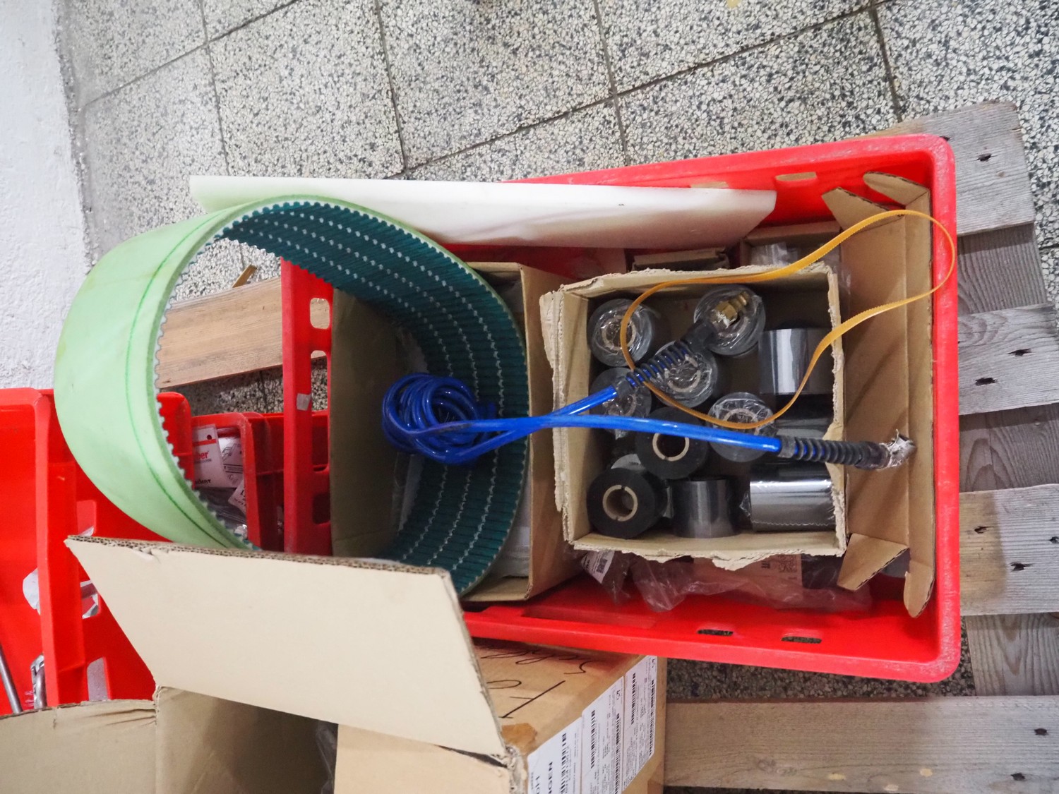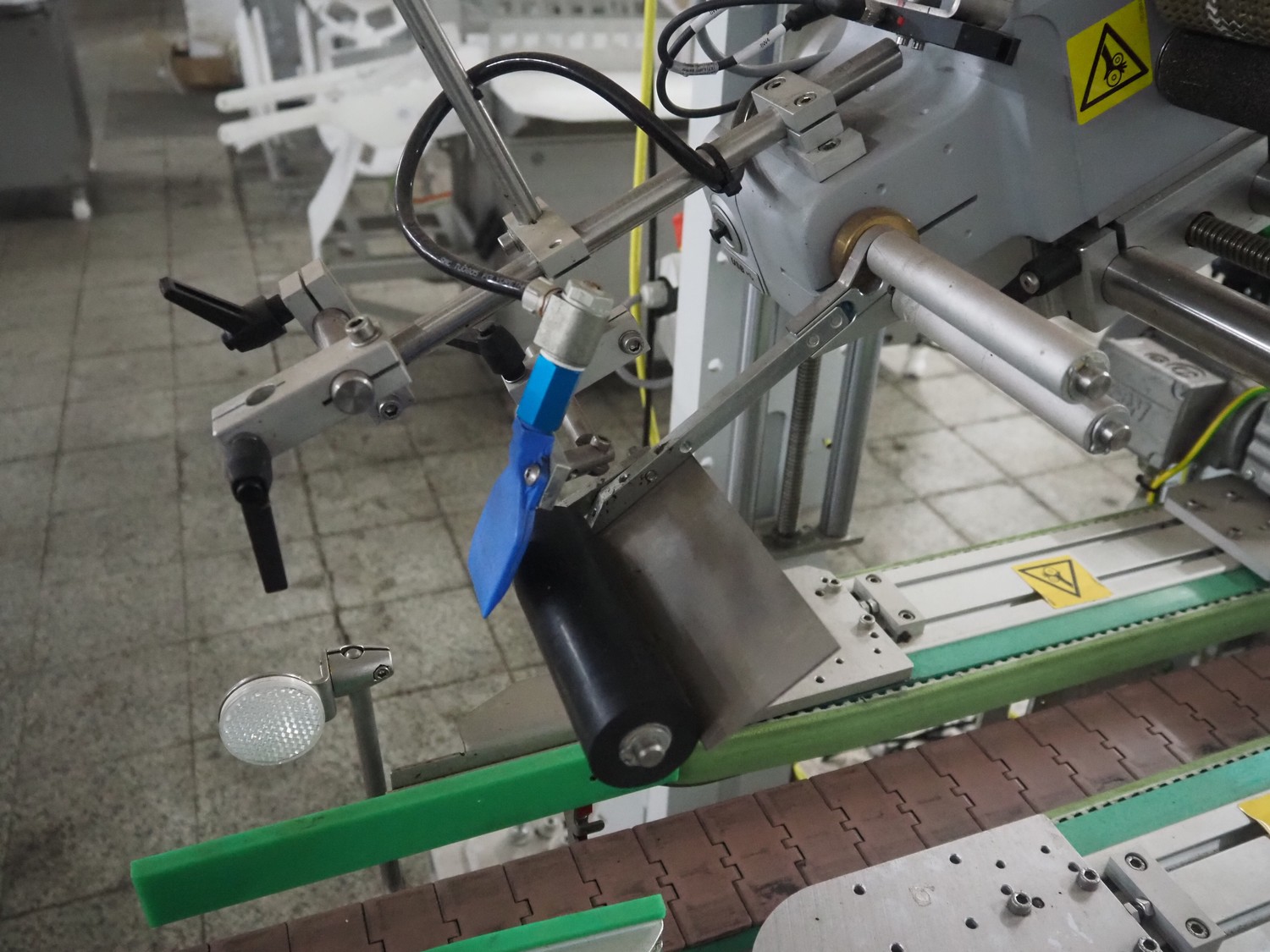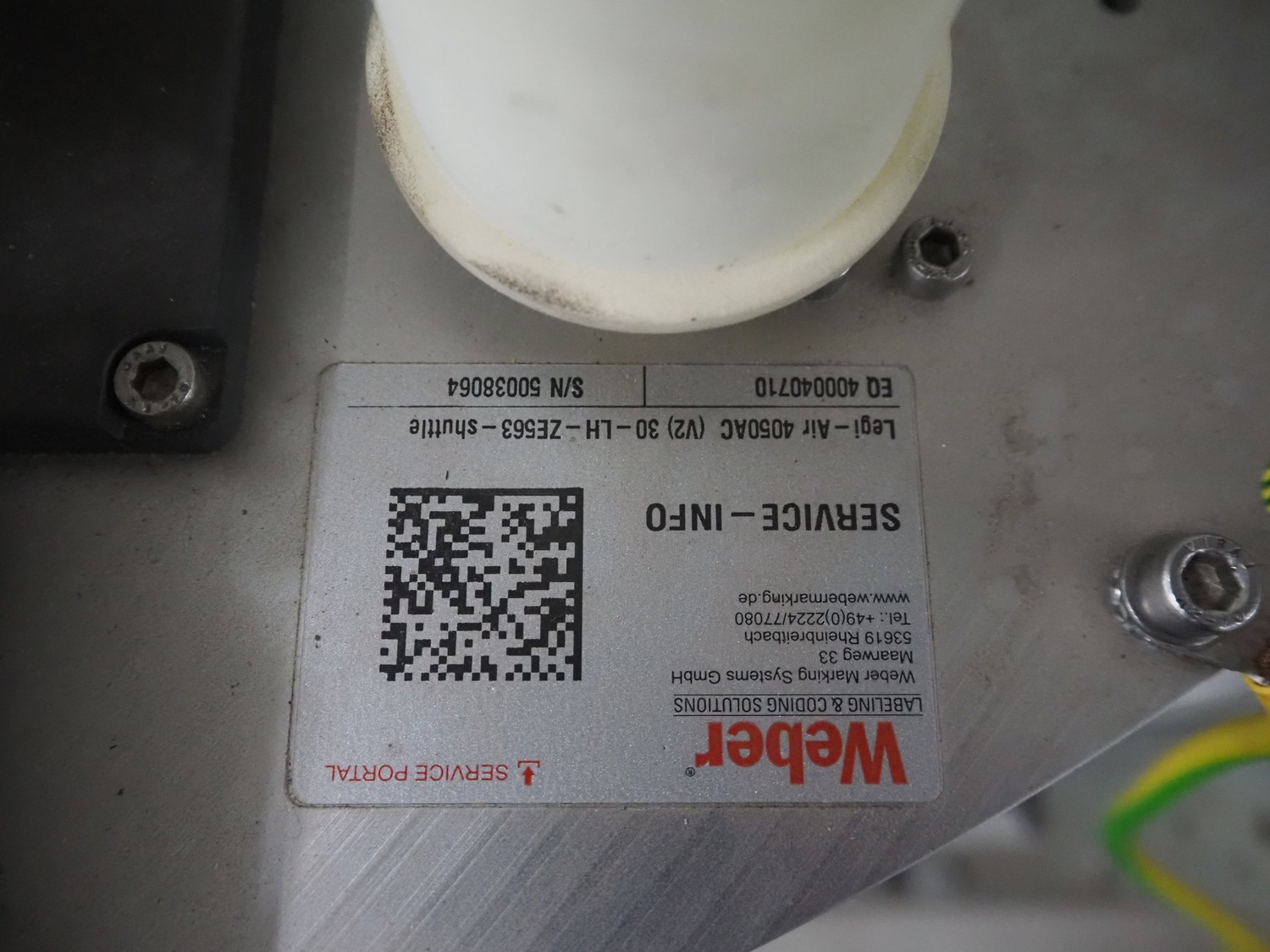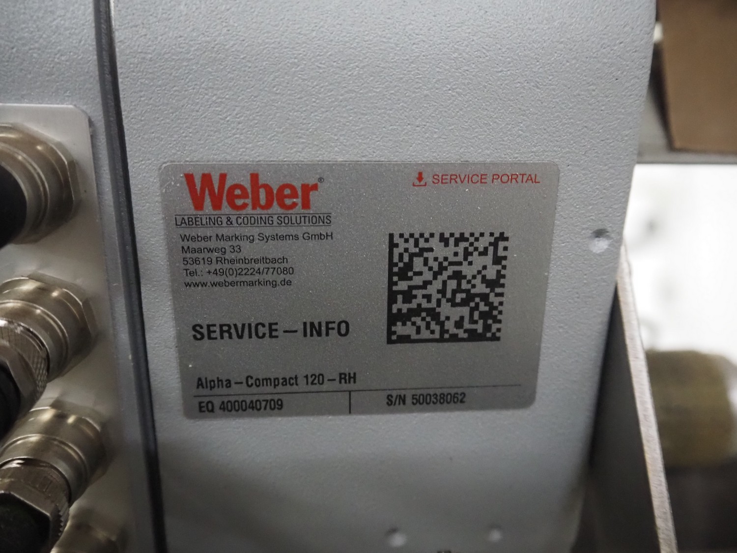 Weber Marking Systems GmbH labelling machine with side and top labeler, type: Geset 700, model: 8, serial number: 50037872, year of construction: 11/2019, 230 V, 50/60 Hz, 1.5 kW, plastic belt, belt width: 80 mm, total dimensions: 2750 mm x 1200 mm x 2000 mm. Including pallet with parts.
