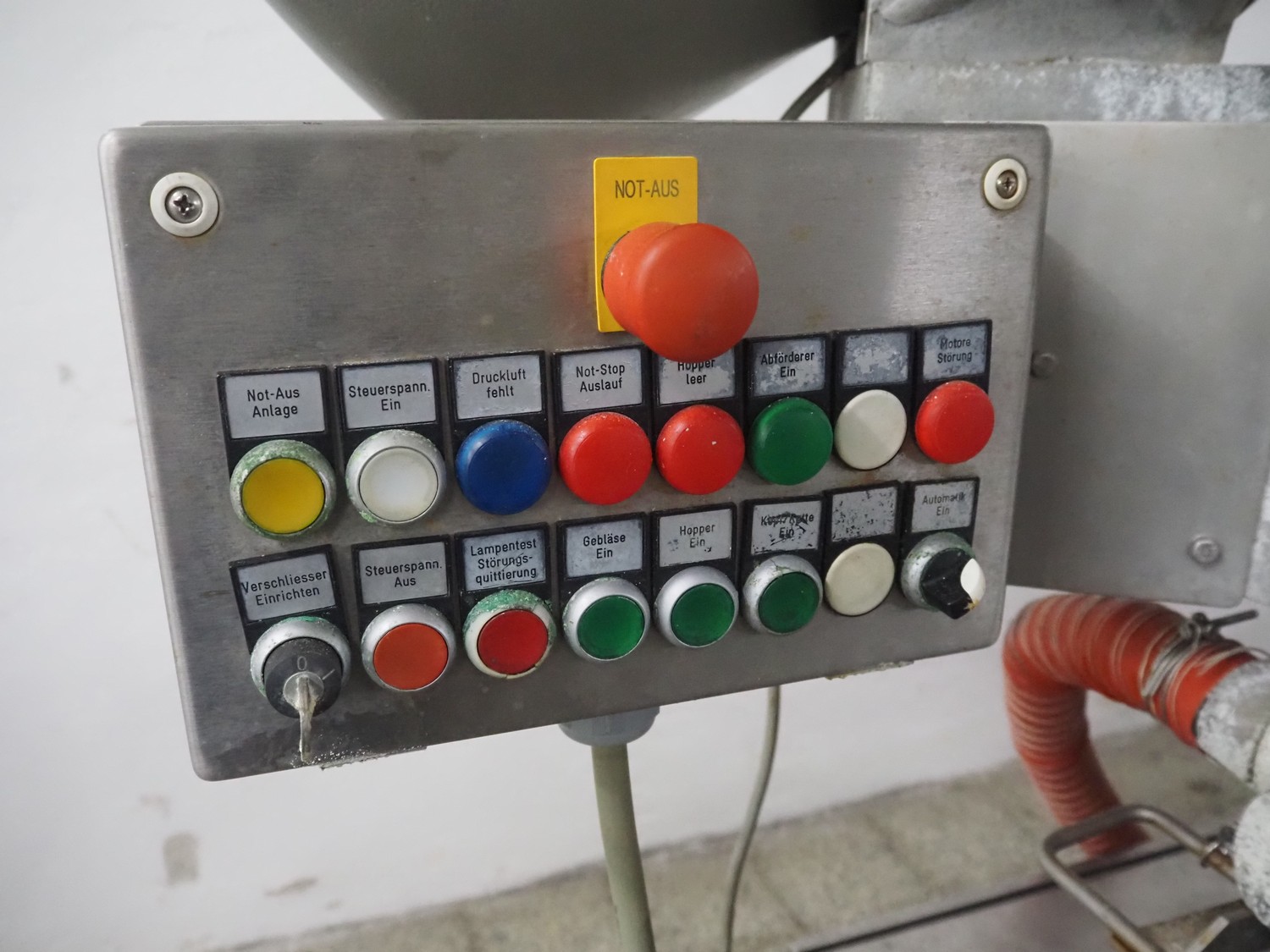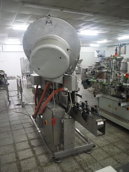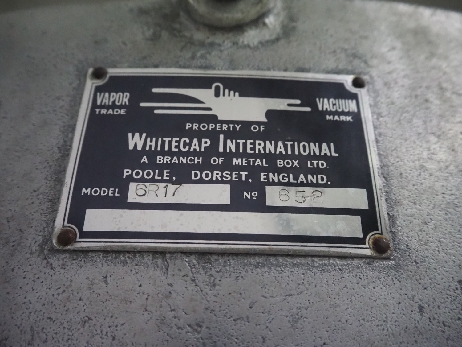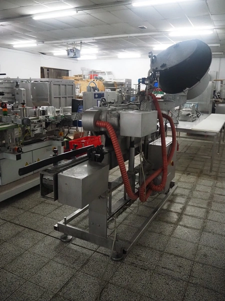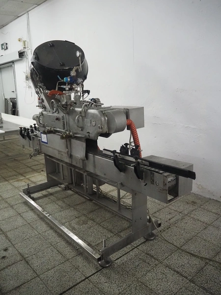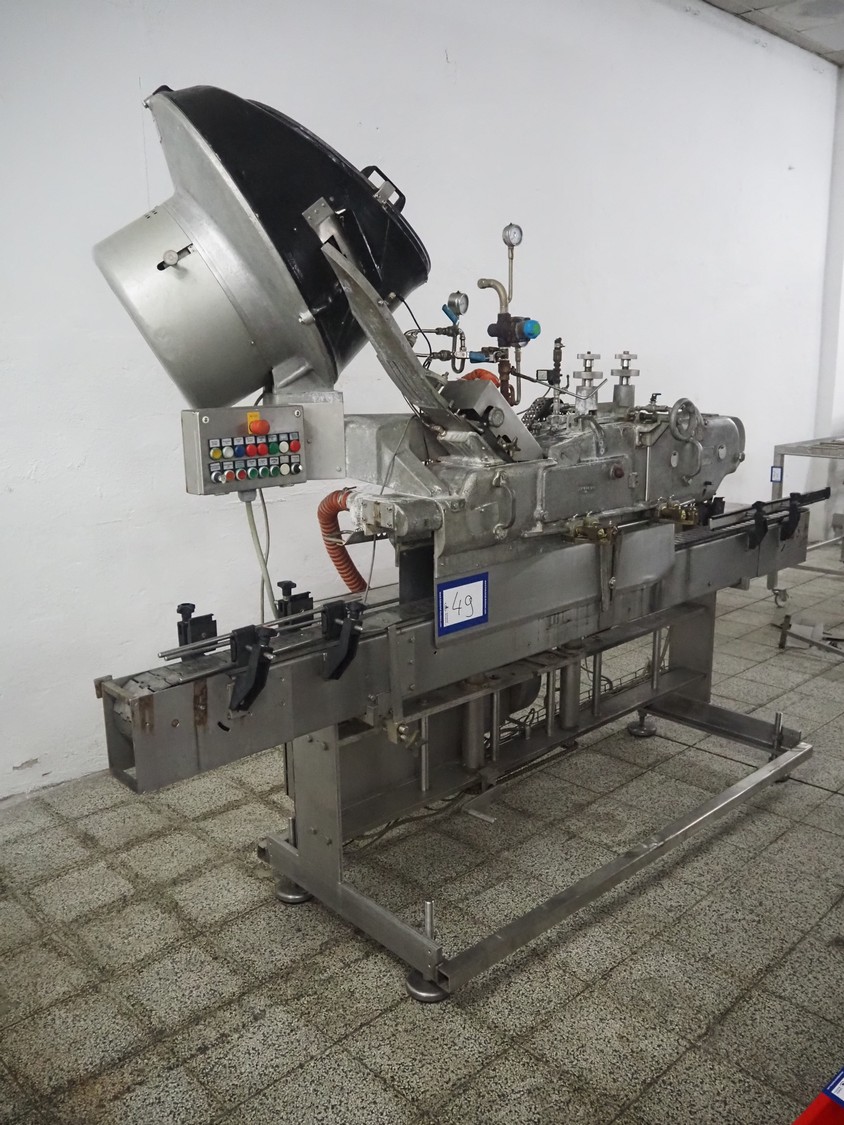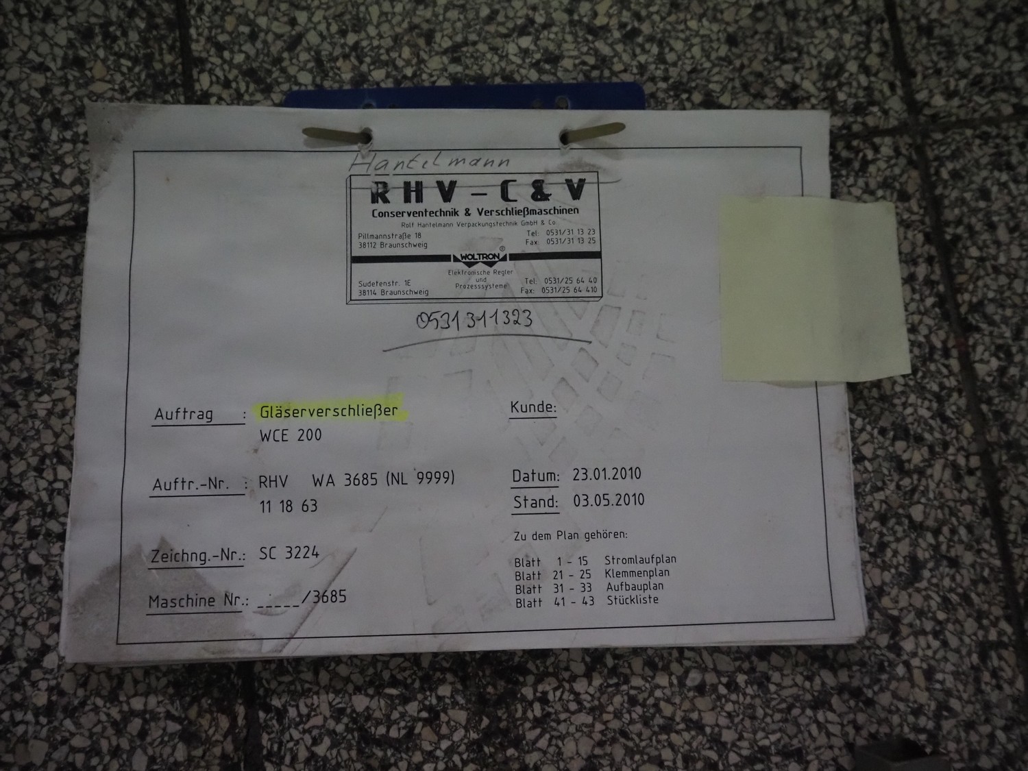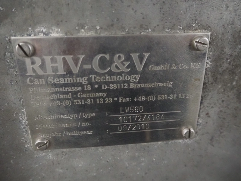 RHV-C&V GmbH & Co. KG can sealer, type: LW560, number: 10172/4184, year of construction: 09/2010, s/s belt, belt width: 120 mm, clearance: 140 mm x 200 mm, dimensions lid: Ø 85 mm x 10 mm, Whitecap International bowl feeder, model: 6R17, number: 652, diameter feeder: 660 mm, total dimensions: 2230 mm x 1150 mm x 2300 mm.