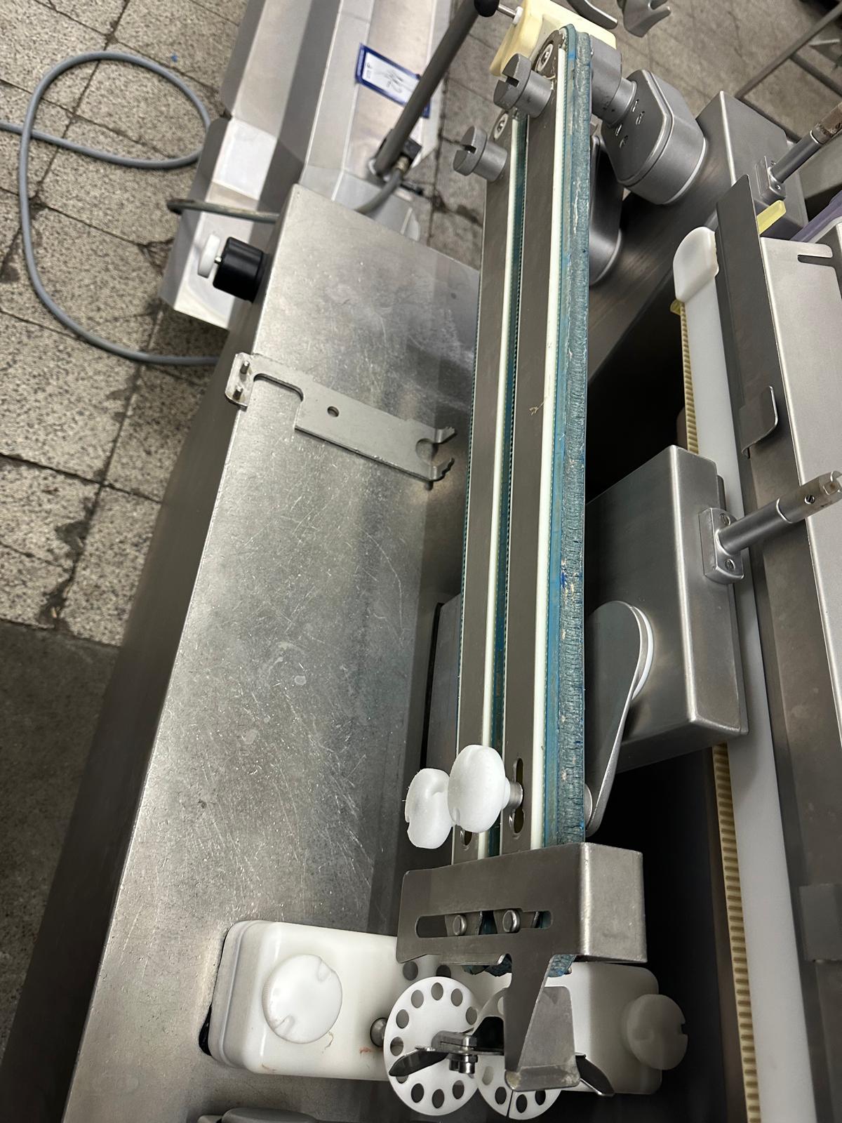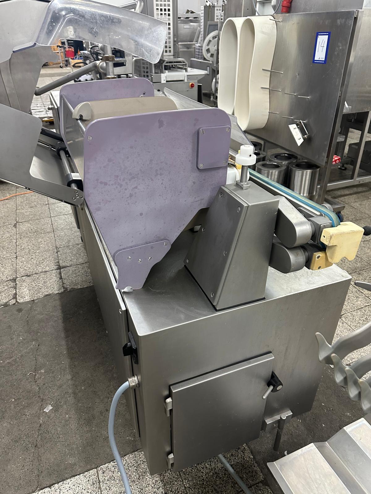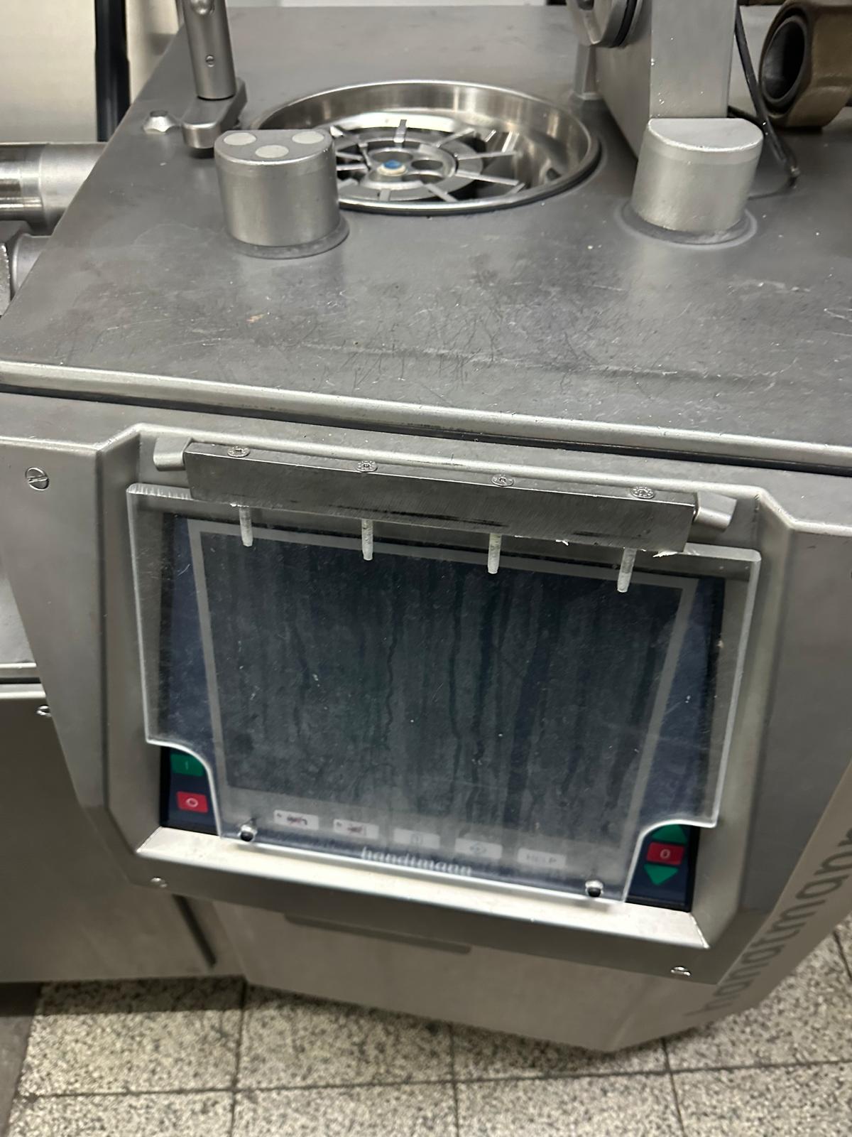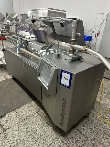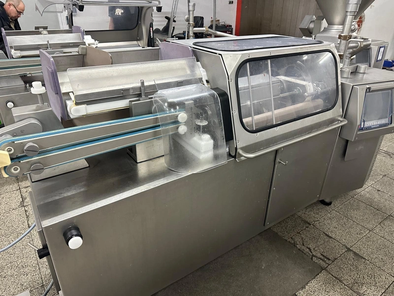 Handtmann high-performance portioning- and linking device for collagen-, peelable- and natural casings, model: FPVLH 242, number: 749, year of construction: 2014, caliber: 13-34 mm, weight: 1200 kg, capacity: 4000 kg/h, dimensions: 3700 mm x 900 mm x 1620 mm.
