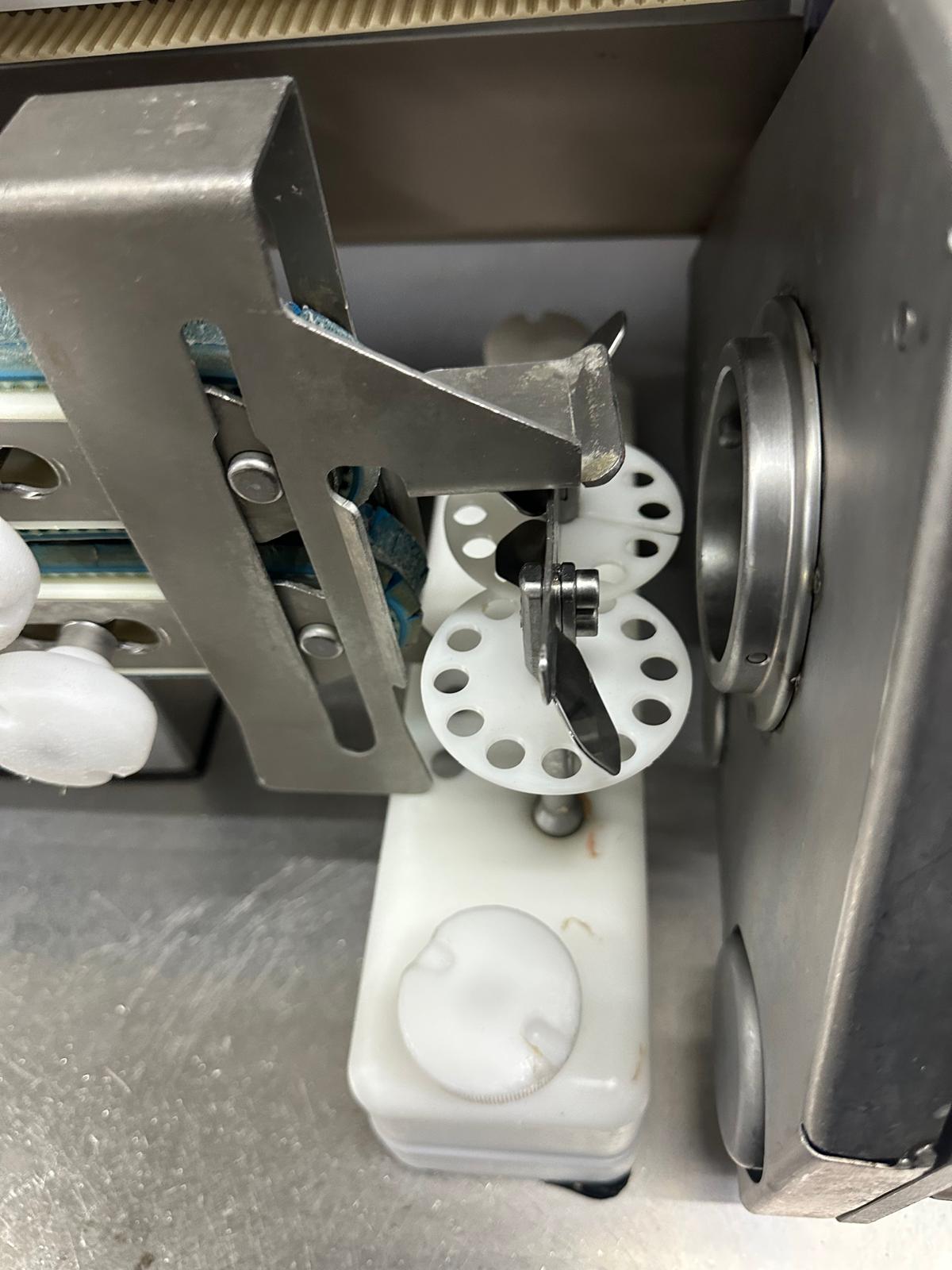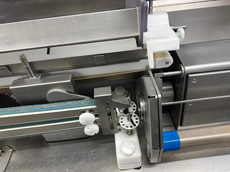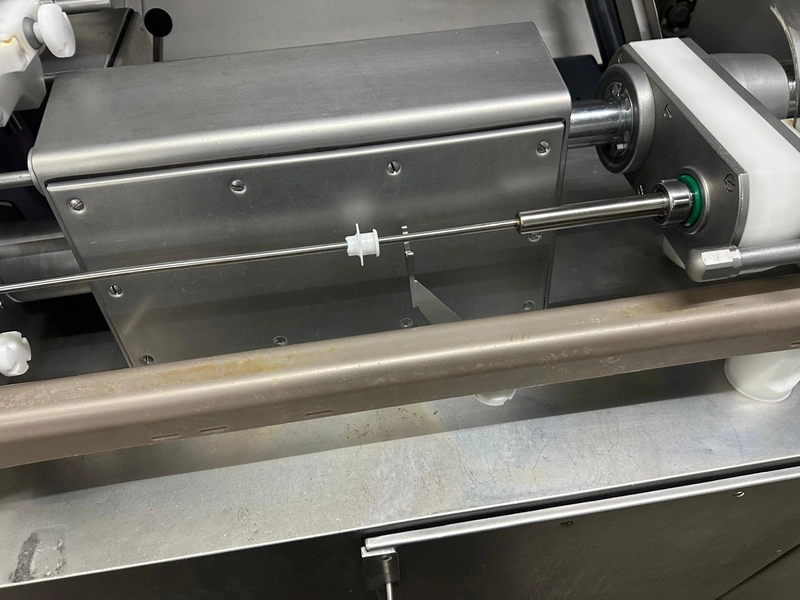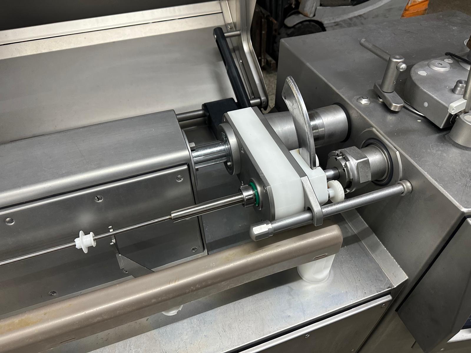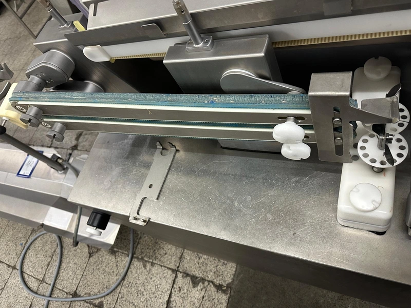 Handtmann high-performance portioning- and linking device for collagen-, peelable- and natural casings, model: FPVLH 242, number: 749, year of construction: 2014, caliber: 13-34 mm, weight: 1200 kg, capacity: 4000 kg/h, dimensions: 3700 mm x 900 mm x 1620 mm.
