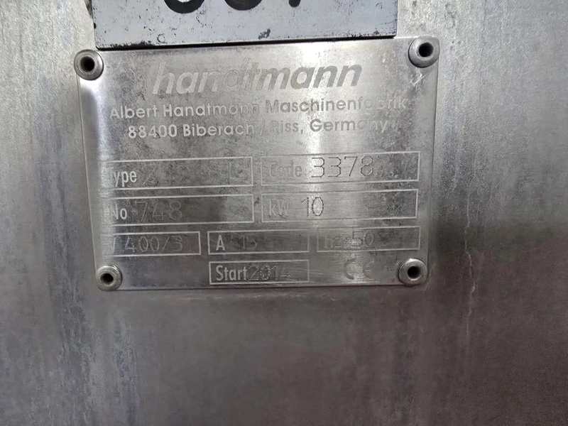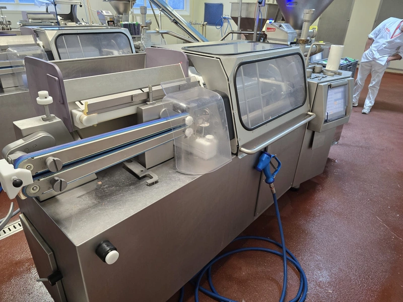 Handtmann high-performance portioning- and linking device for collagen-, peelable- and natural casings, model: FPVLH 242, number: 748, year of construction: 2014, caliber: 13-34 mm, weight: 1200 kg, capacity: 4000 kg/h, dimensions: 3700 mm x 900 mm x 1620 mm.