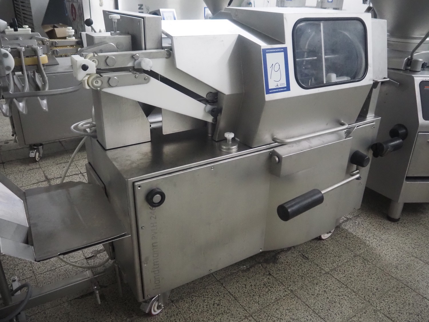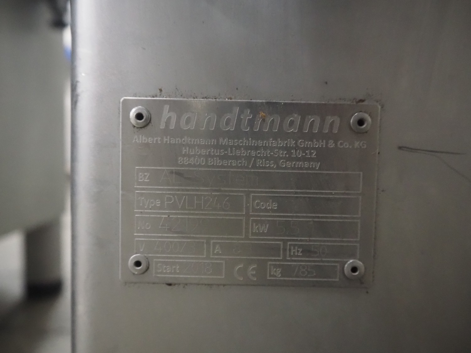 Handtmann mobile portioning- and linking machine, type: PVLH246, number: 42199, year of construction: 2018, 400 V, 3 Ph, 50 Hz, 8.3 A, 5.5 kW, dimensions: 1770 mm x 1000 mm x 1500 mm. Including crate with extra parts.