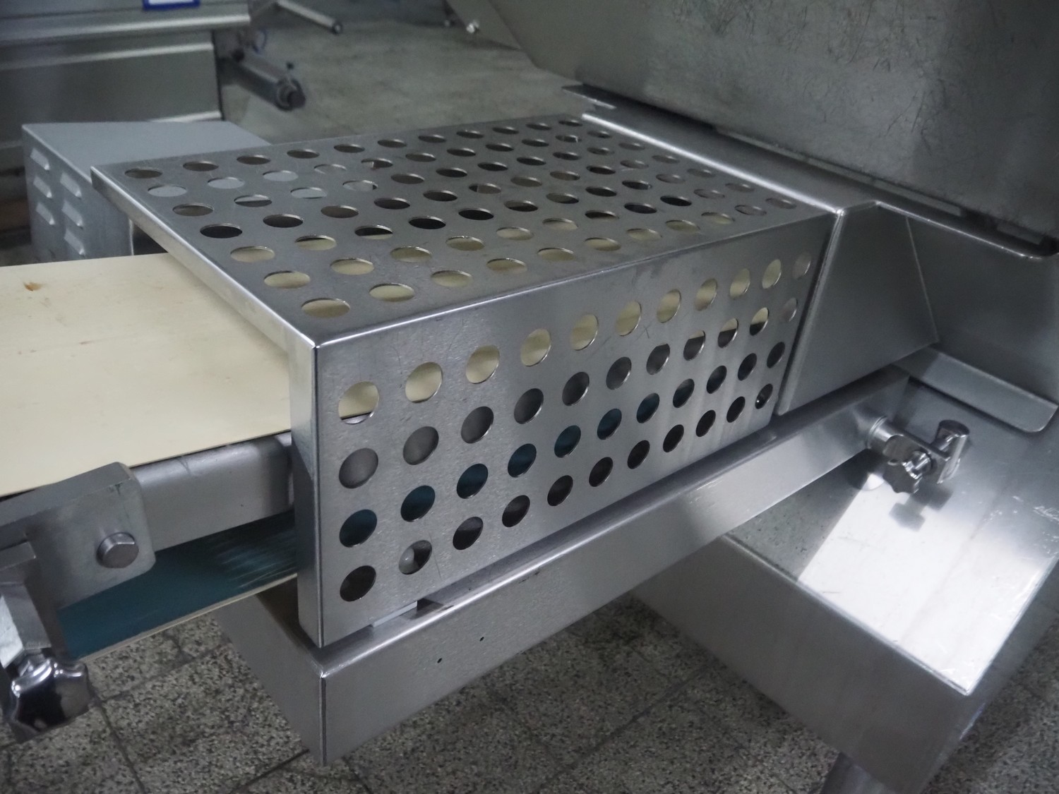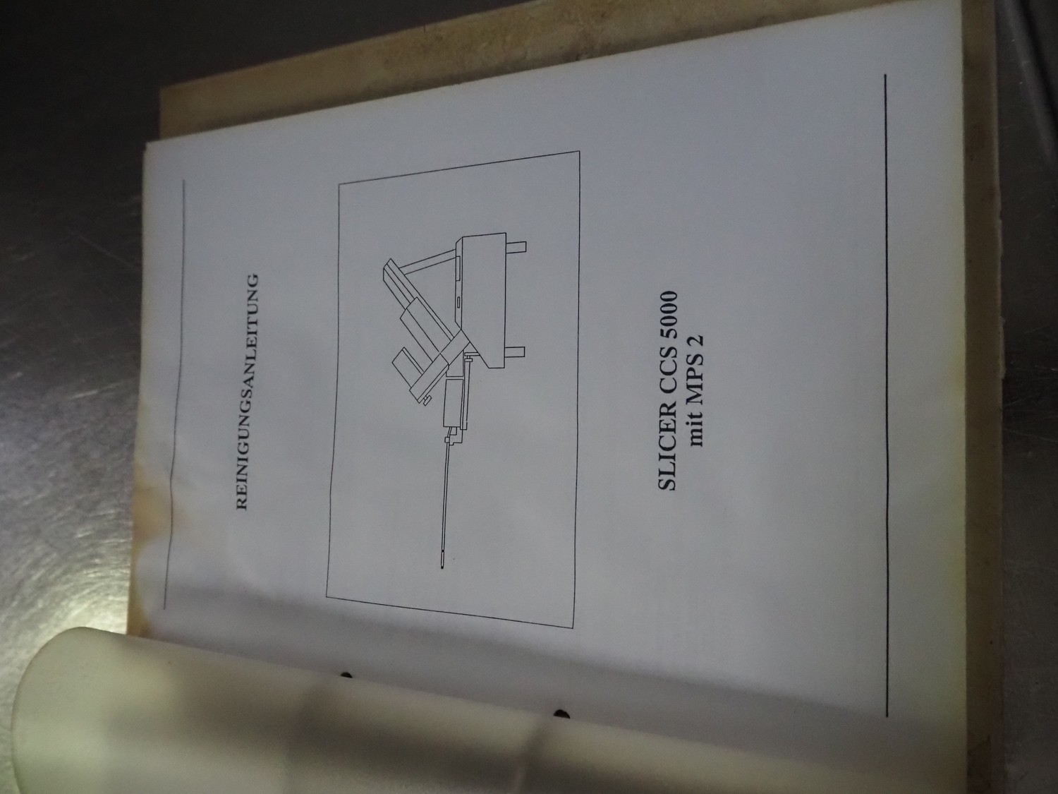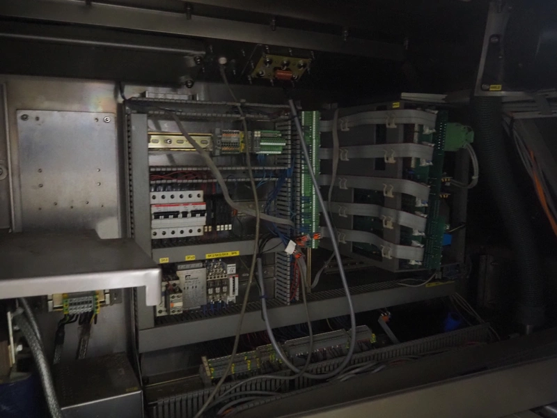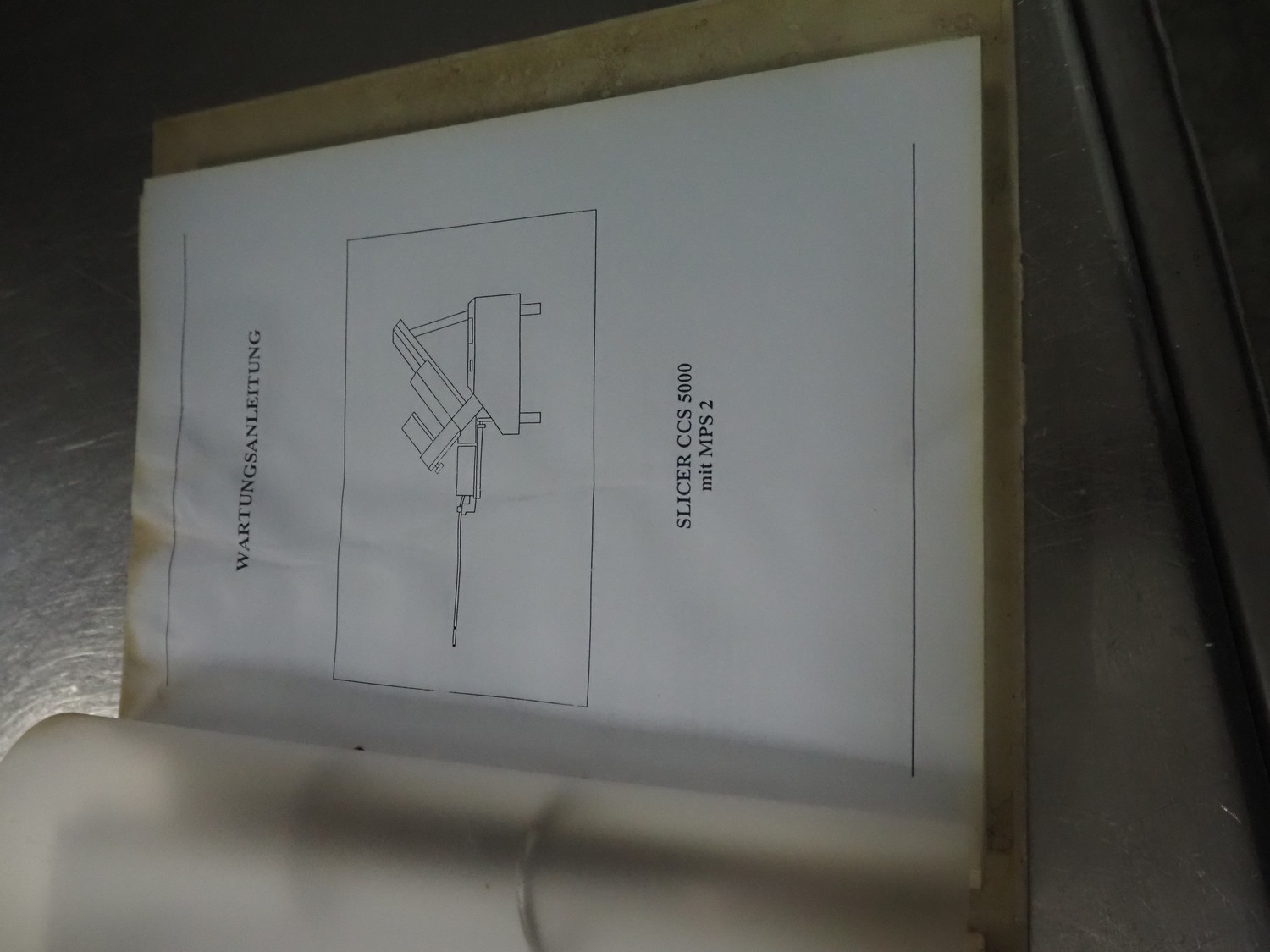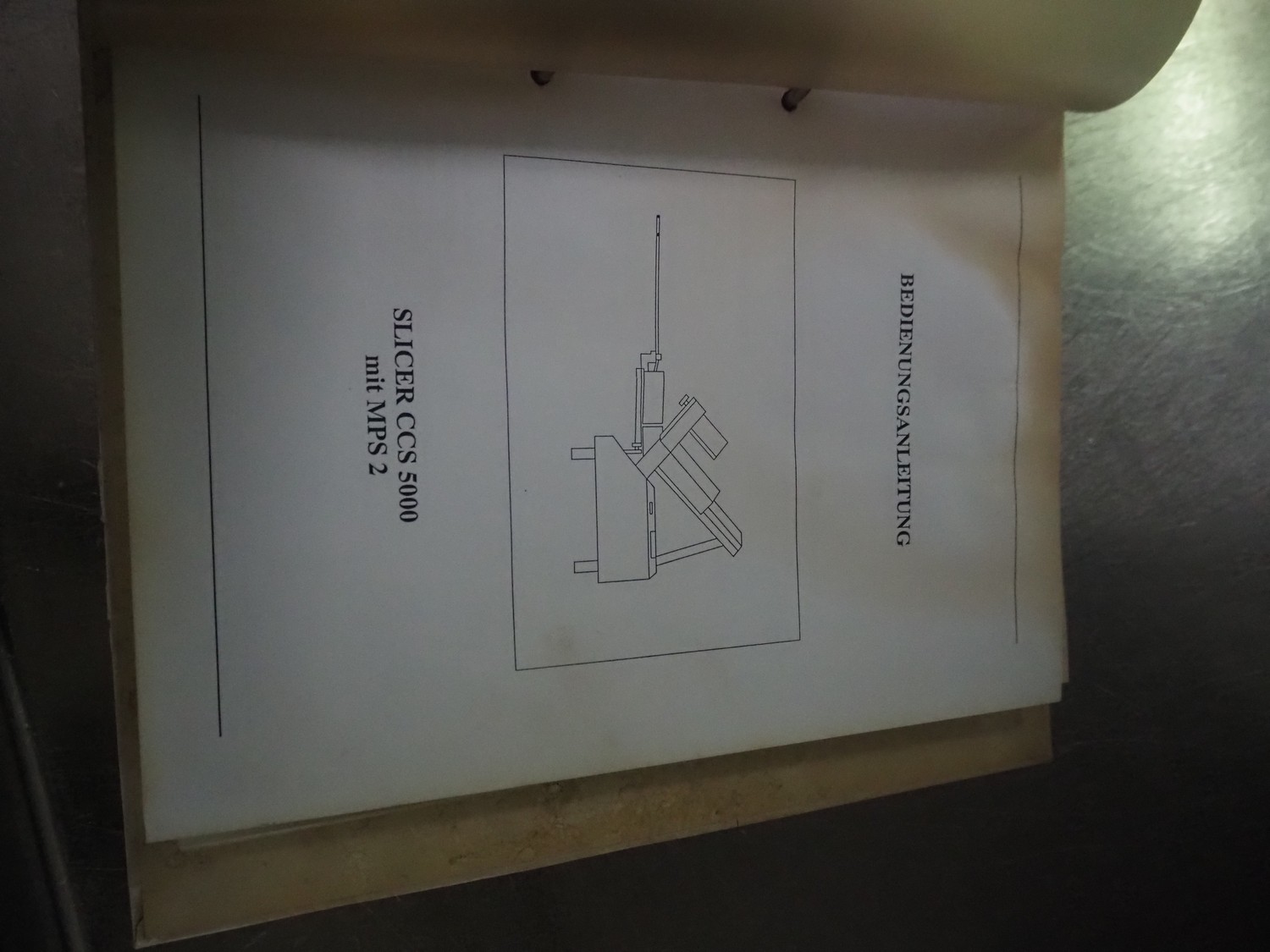 Weber slicer, type: CCS5000, number: 397, 400 V, 50 Hz, 7 kW, plastic belt, belt width: 300 mm, diameter knive: 300 mm, clearance: 300 mm x 135 mm, total dimensions: 3930 mm x 1100 mm x 2200 mm.