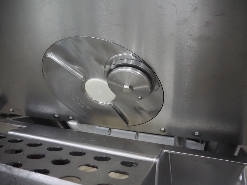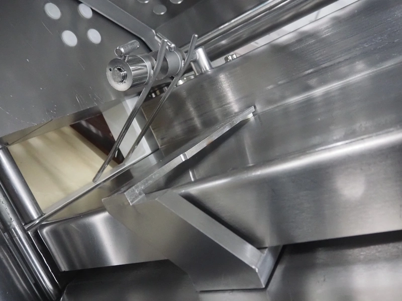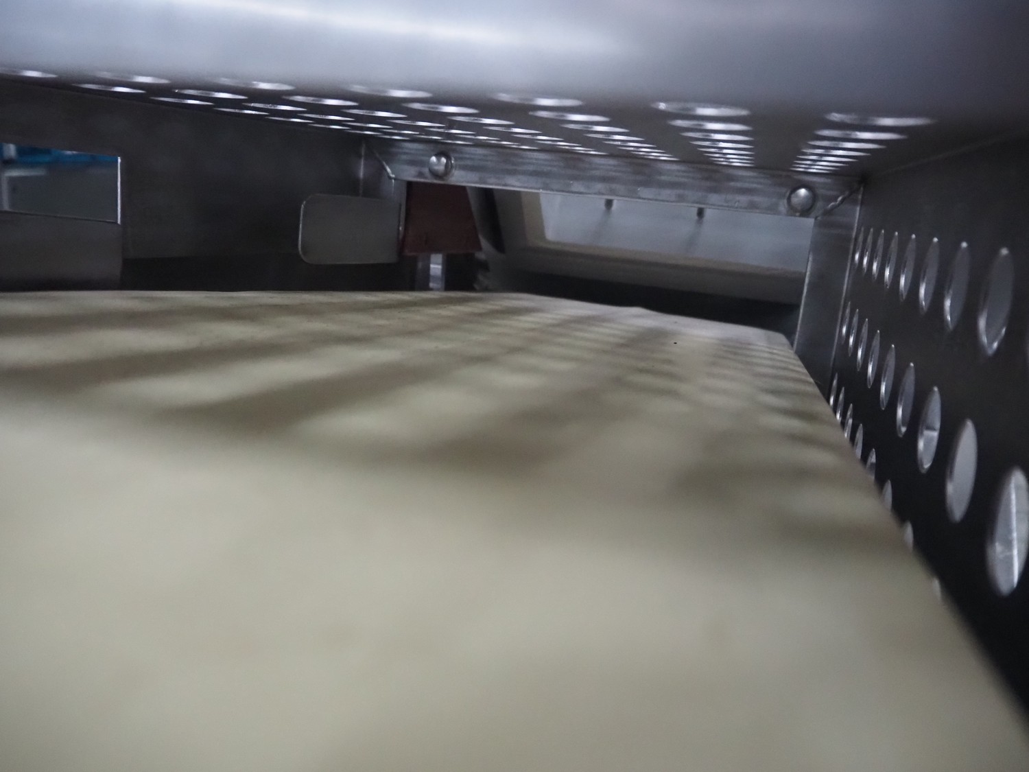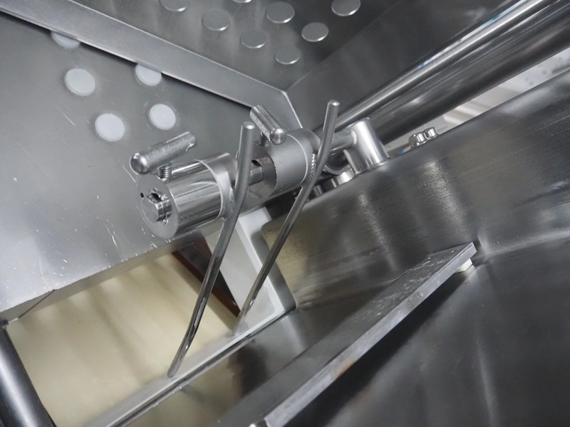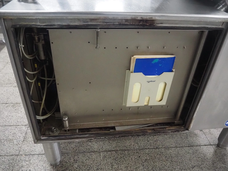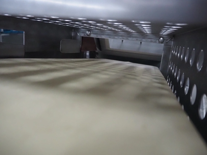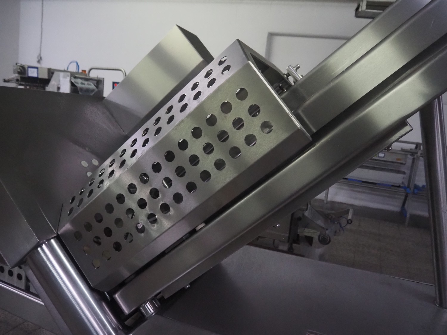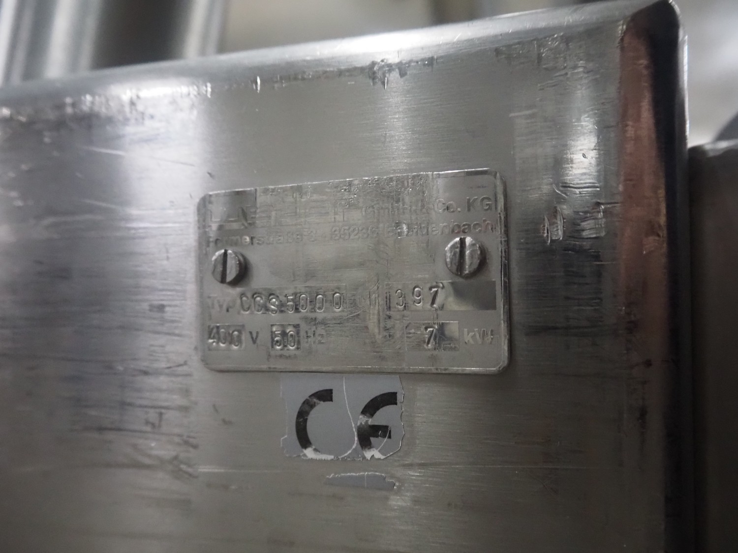Weber slicer, type: CCS5000, number: 397, 400 V, 50 Hz, 7 kW, plastic belt, belt width: 300 mm, diameter knive: 300 mm, clearance: 300 mm x 135 mm, total dimensions: 3930 mm x 1100 mm x 2200 mm.