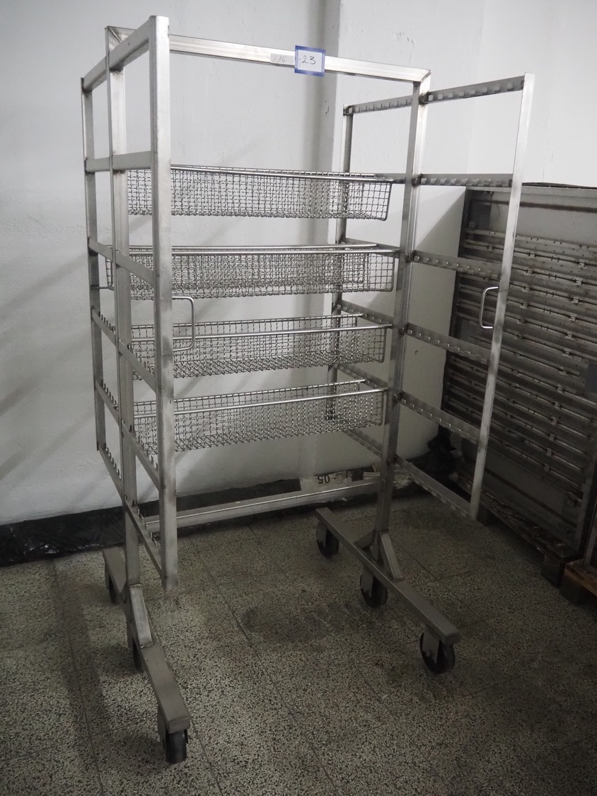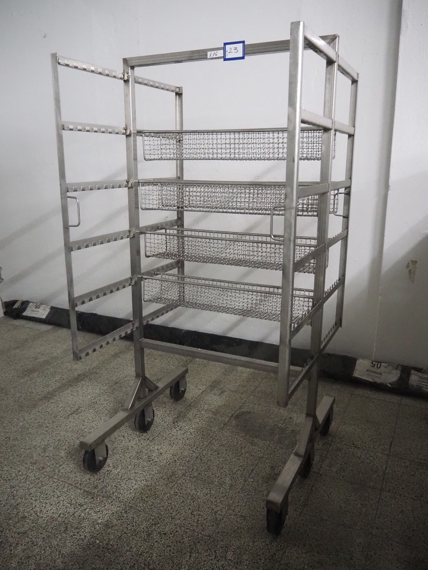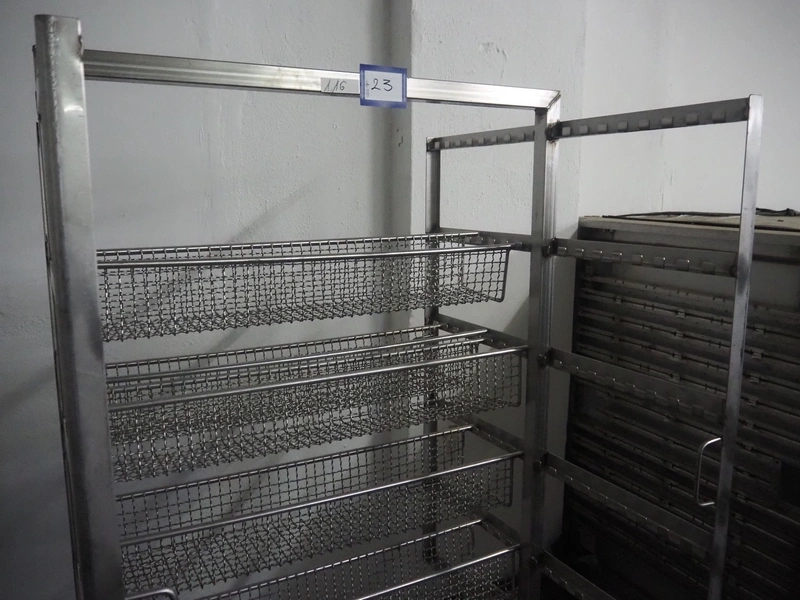 S/s smoke trolley, 6 floors, floor width: 1000 mm, 5 baskets, each basket dimensions: 920 mm x 170 mm x 130 mm, total dimensions: 1010 mm x 1000 mm x 2000 mm.