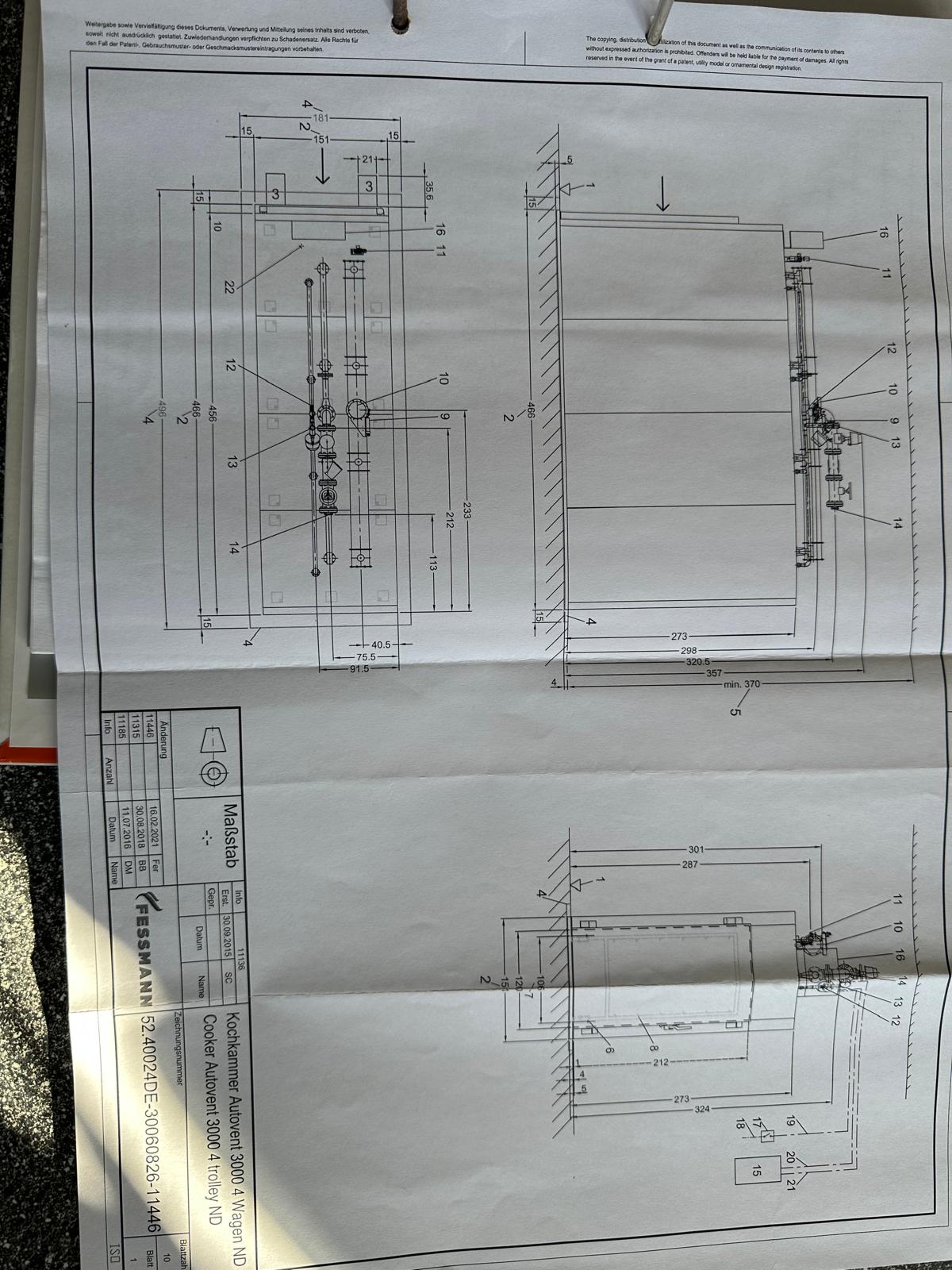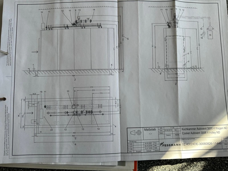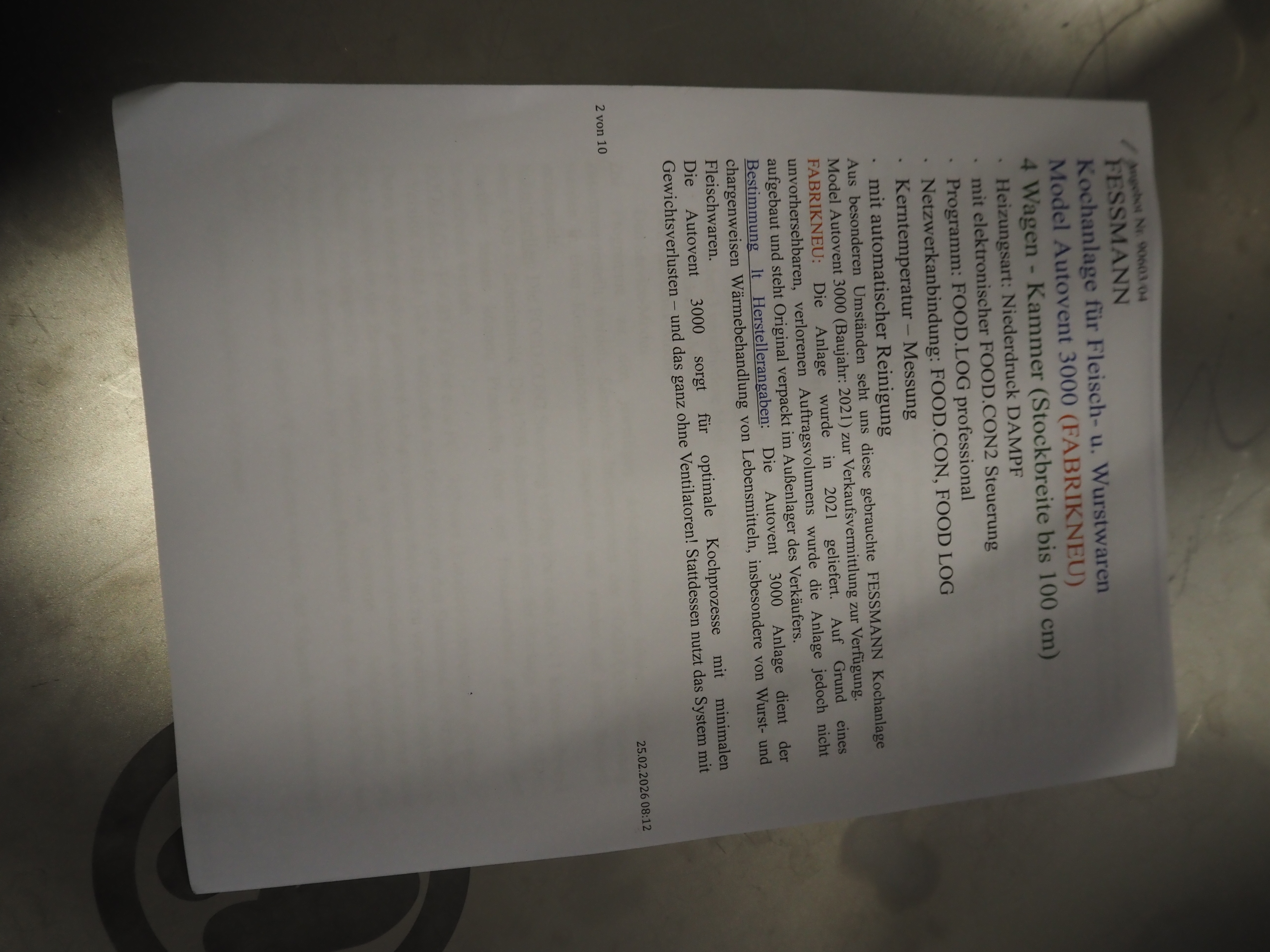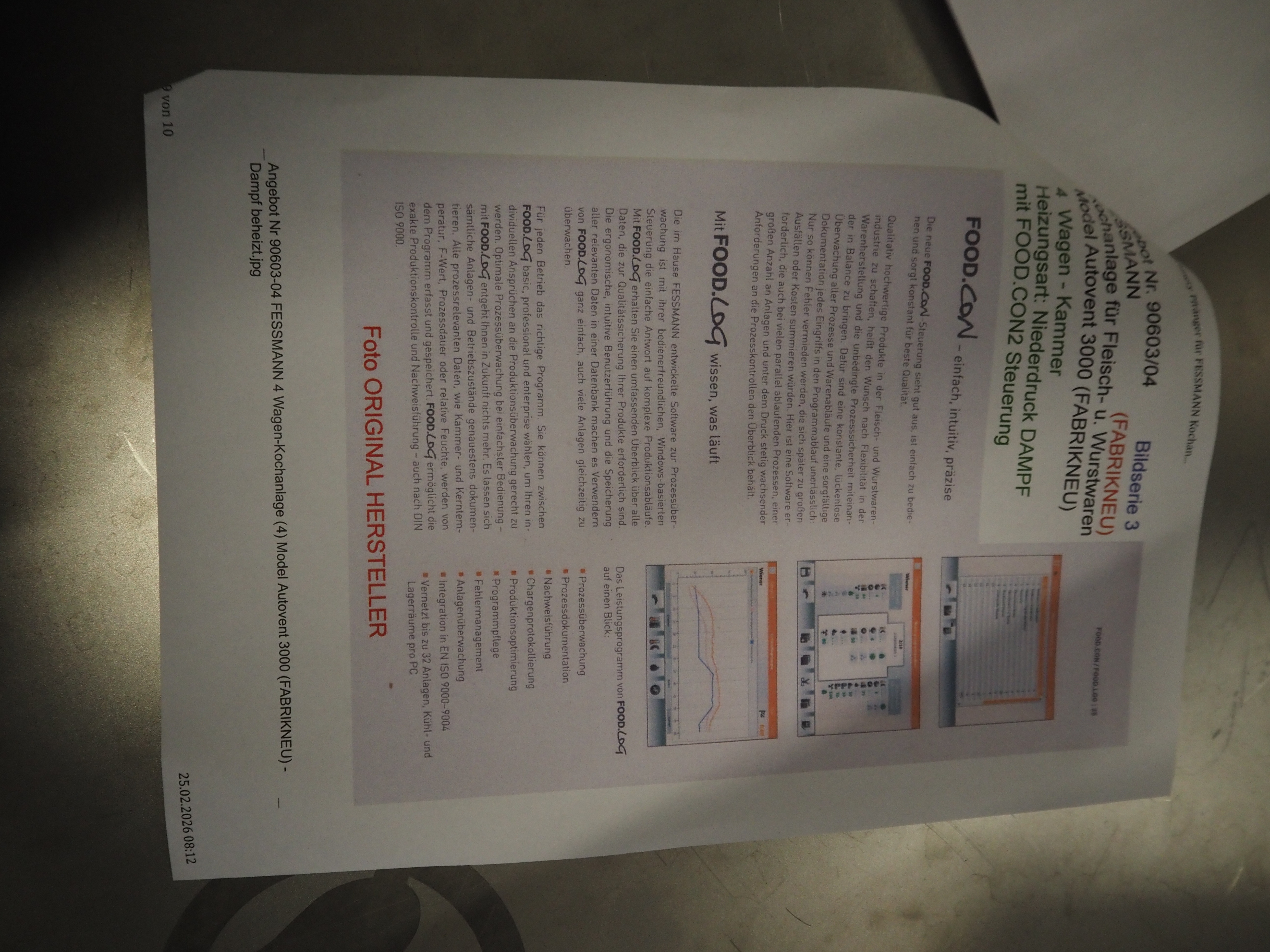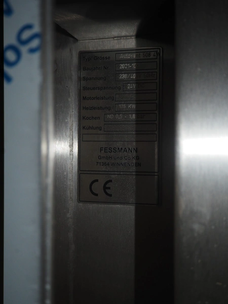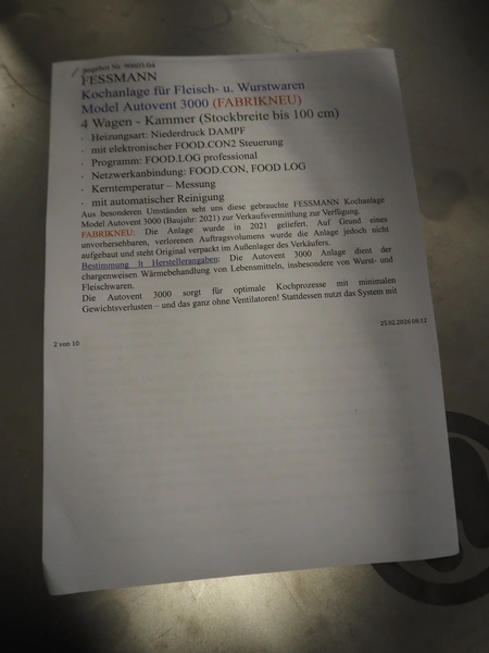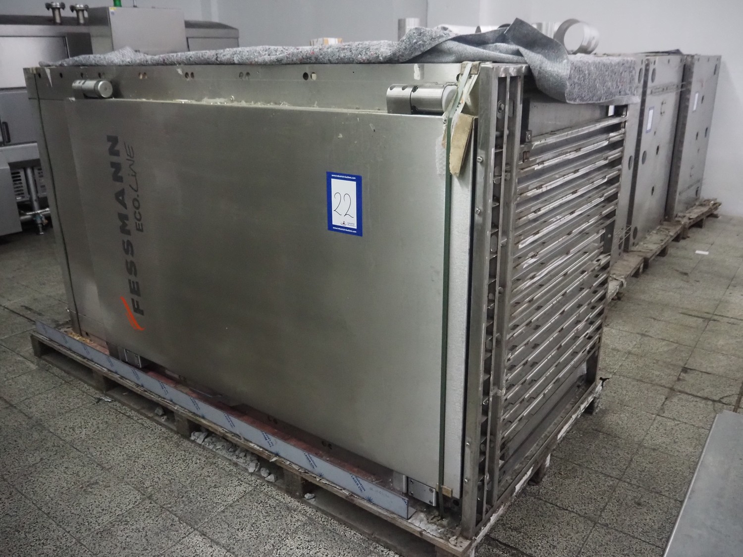 Fessmann cooking chamber for 4 trolleys, type: Autovent 508 4, number: 108, year of construction: 2021, 230 / 400 V, 50 Hz, 176 kW, total dimensions: (1x) 1300 mm x 1540 mm x 2800 mm, (3x) 1100 mm x 1530 mm x 2730 mm. New, never used.