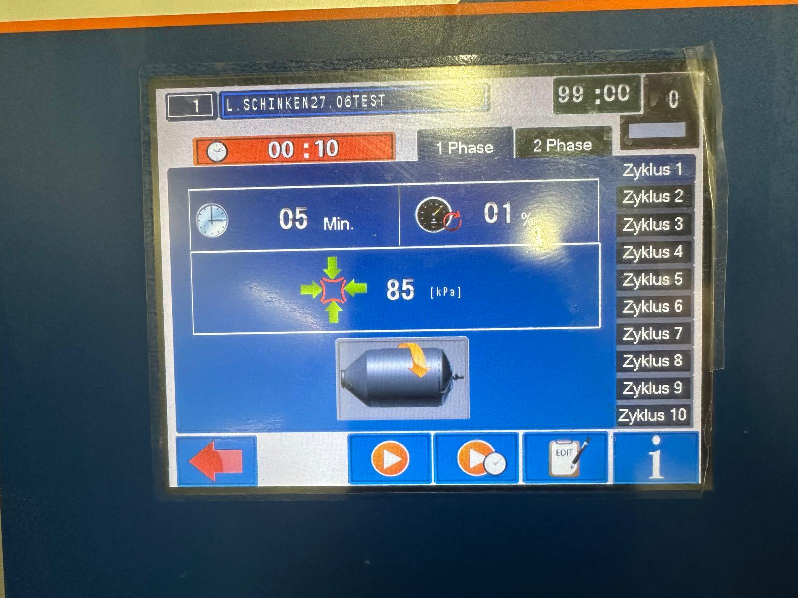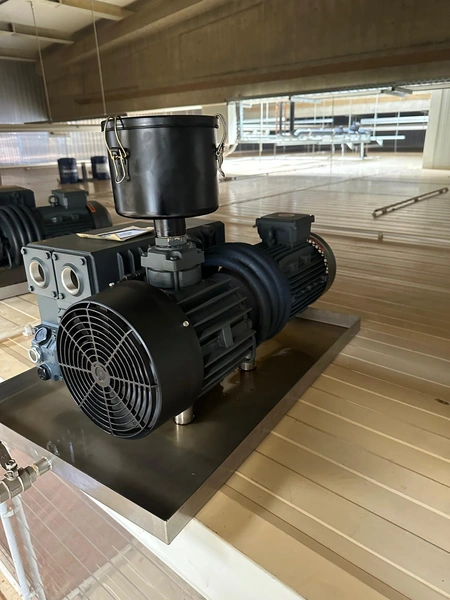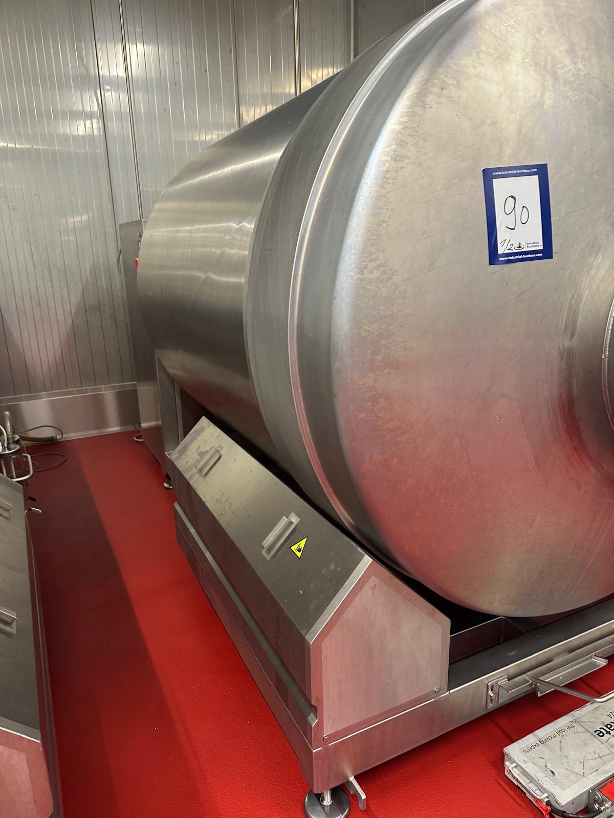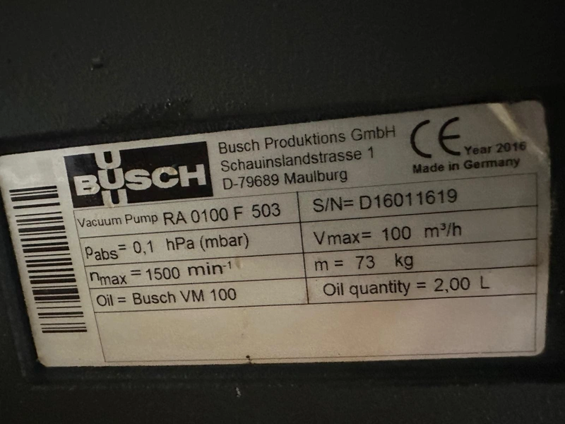 Nowicki vacuum tumbler, type: MA-5400 PS, serial number: 22816032, year of construction: 2016, 400 V, 3 Ph, 50 Hz, machine weight: 3500 kg, Busch vacuum pump, type: RA 0100 F 503, serial number: D16011619, capacity: 100 m³/per hour, total dimensions: 5000 mm x 2200 mm x 2300 mm.