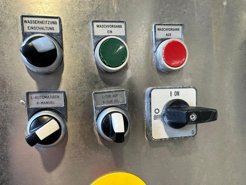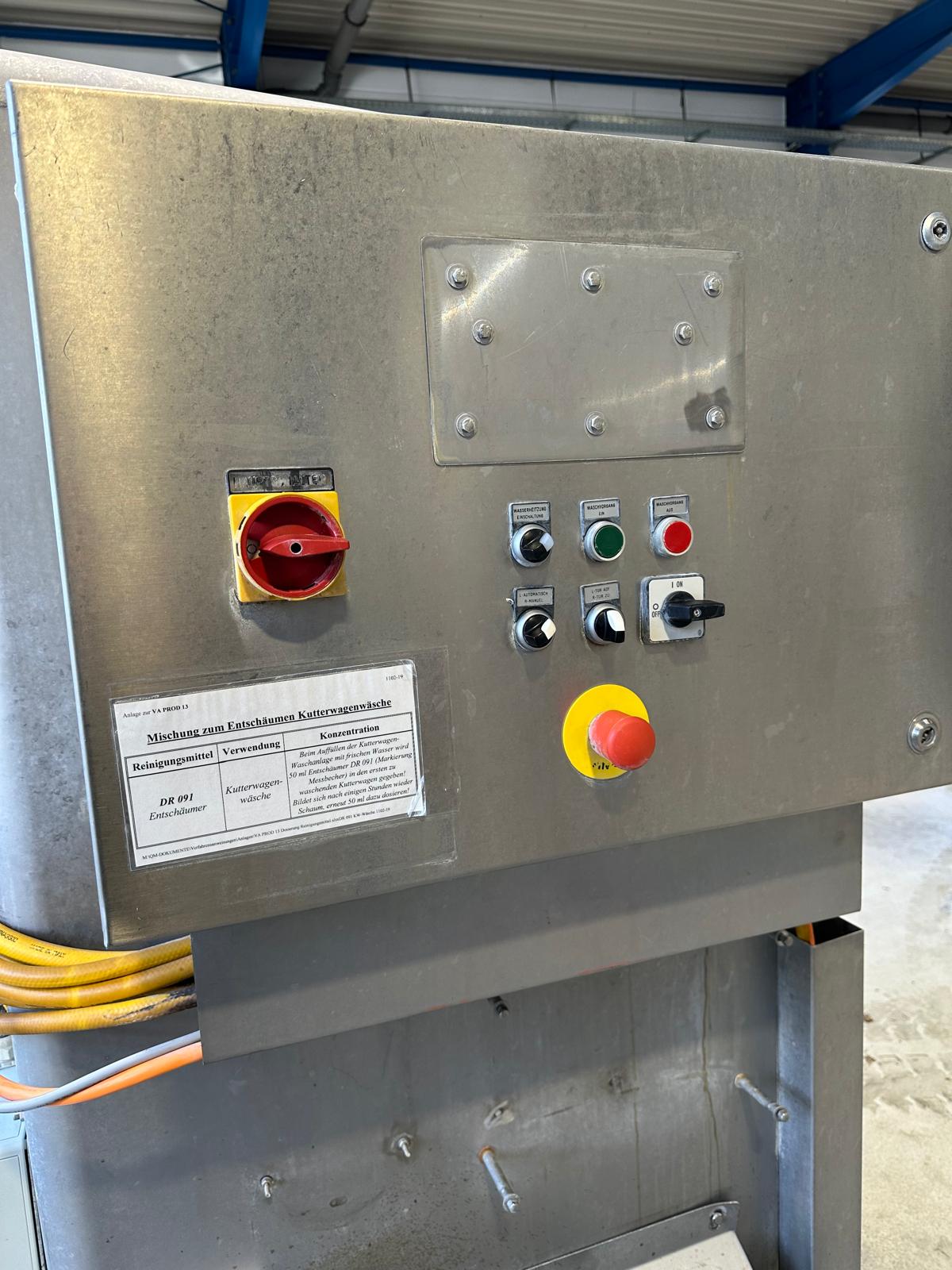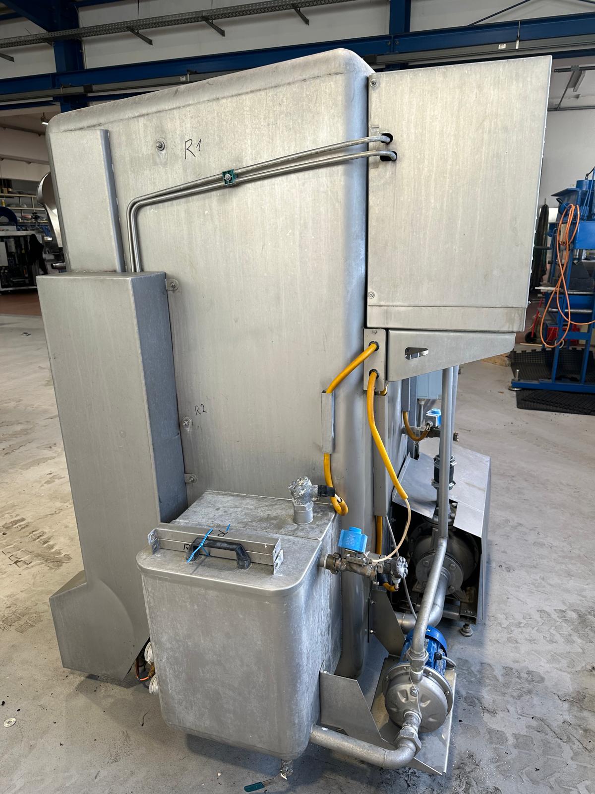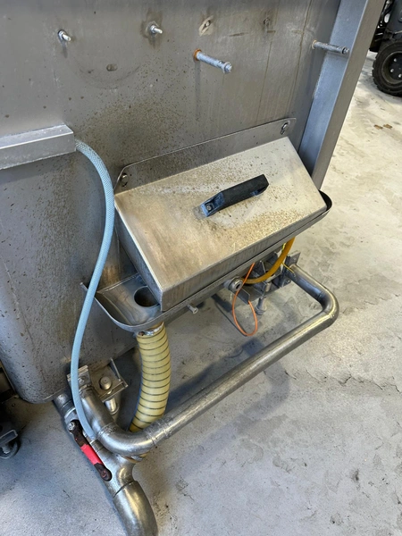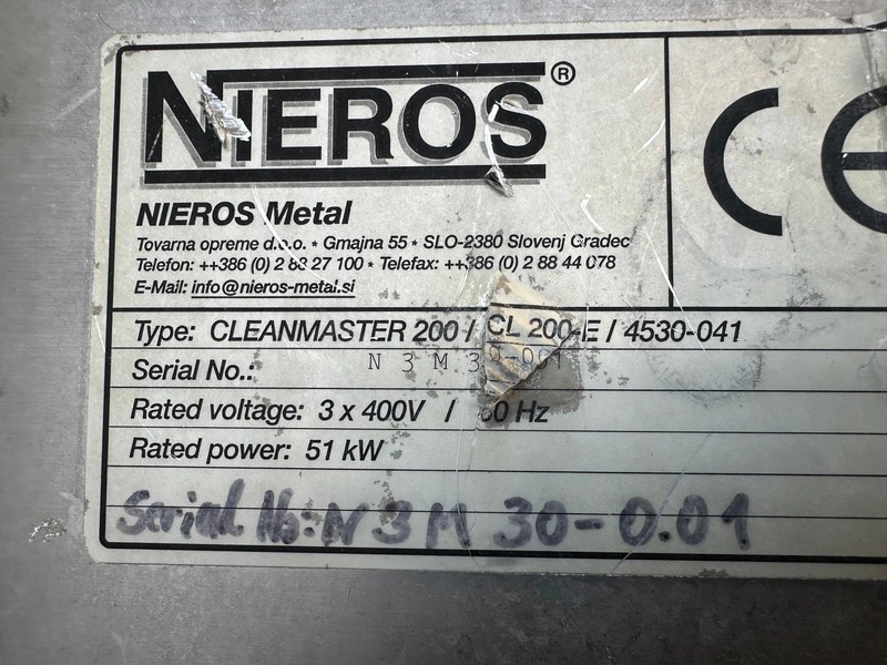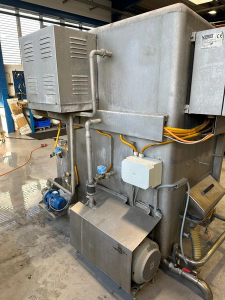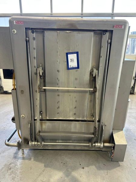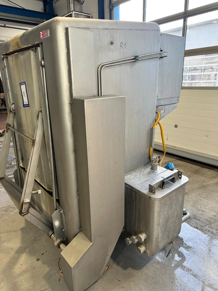 Nieros 200 liter meat bin washer, type: CLEANMASTER 200 / CL 200-E / 4530-041, serial number: N3M30-0.01, 400 V, 3 Ph, 50 Hz, 51 kW, machine weight: 900 kg, dimensions: 2000 mm x 2000 mm x 2000 mm.