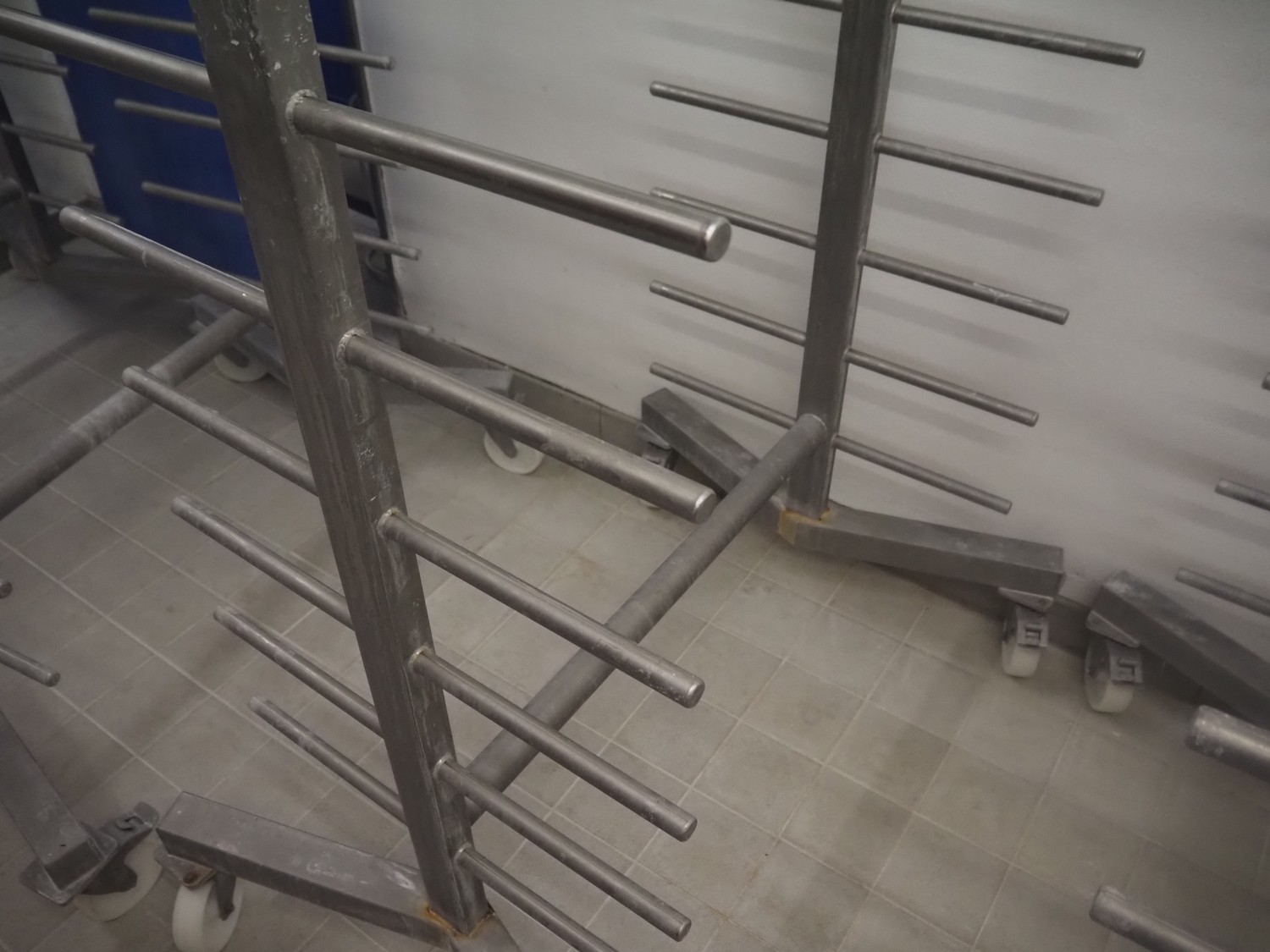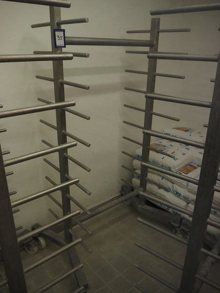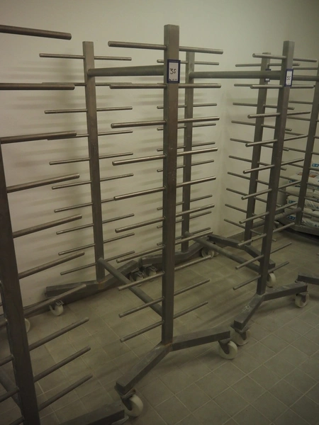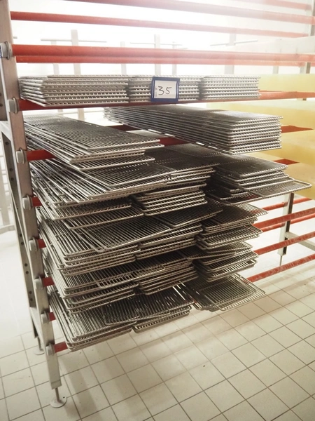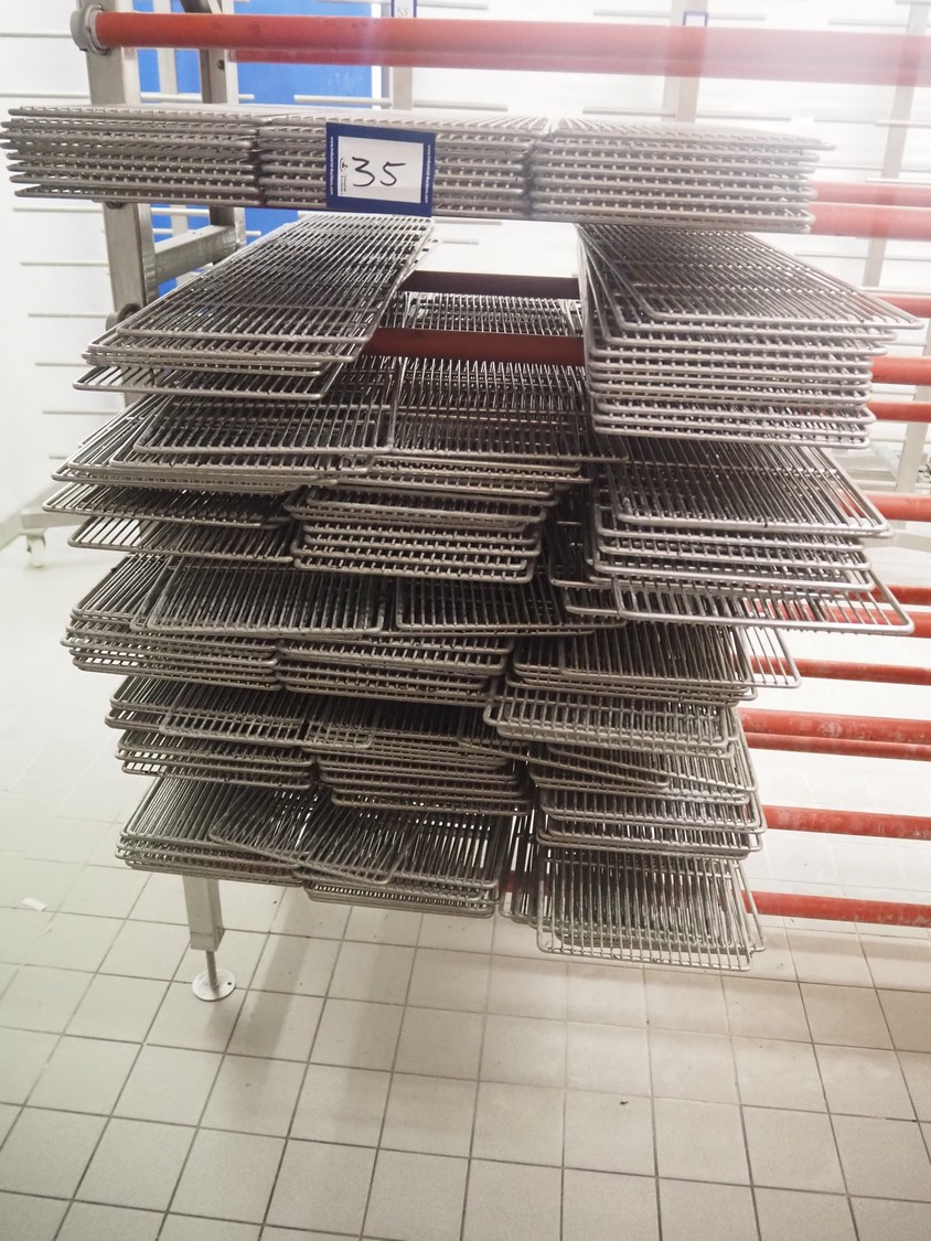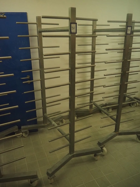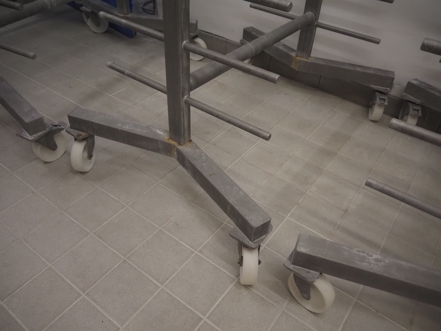 6 Franz Mayr GmbH s/s trolleys, year of construction 2019, 20 floors per trolley, dimensions floors: (20x) 1150 mm x 250 mm, total dimensions trolleys: (6x) 1250 mm x 800 mm x 1930 mm. Including approximately 160 s/s floors, dimensions each floor: 1150 mm x 250 mm.