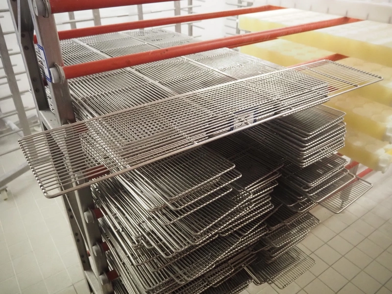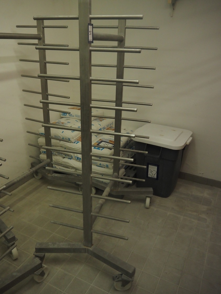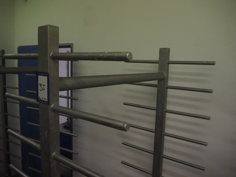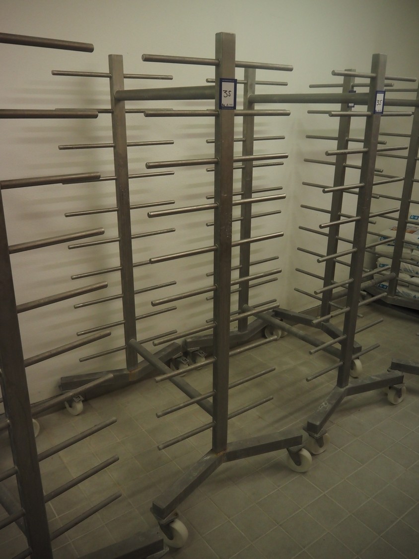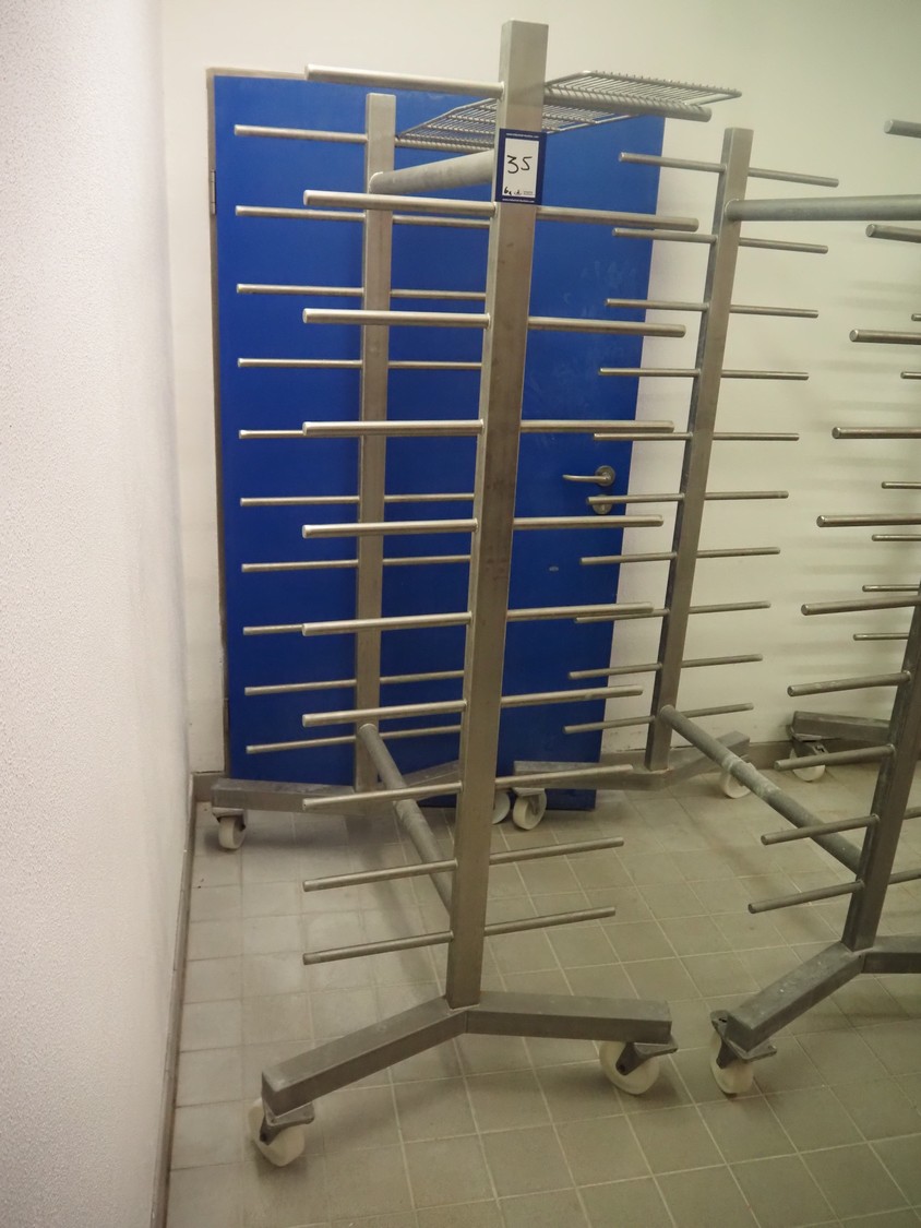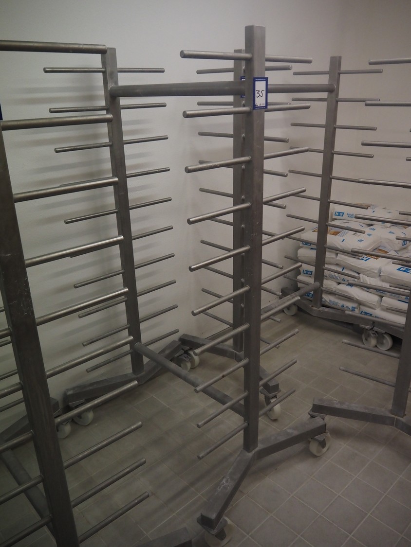 6 Franz Mayr GmbH s/s trolleys, year of construction 2019, 20 floors per trolley, dimensions floors: (20x) 1150 mm x 250 mm, total dimensions trolleys: (6x) 1250 mm x 800 mm x 1930 mm. Including approximately 160 s/s floors, dimensions each floor: 1150 mm x 250 mm.