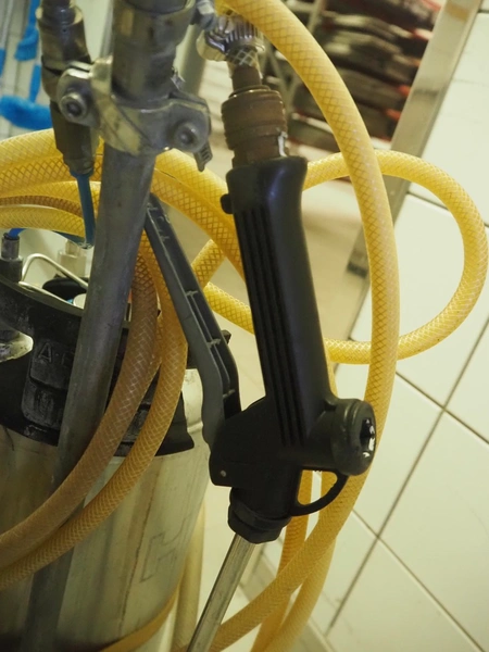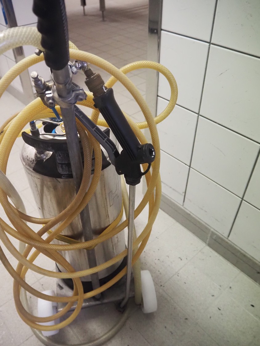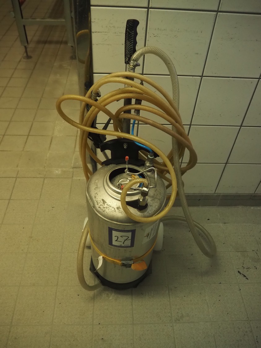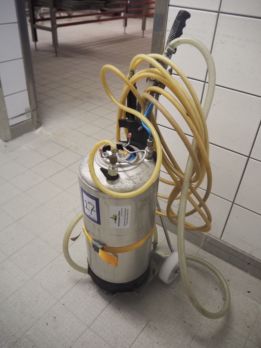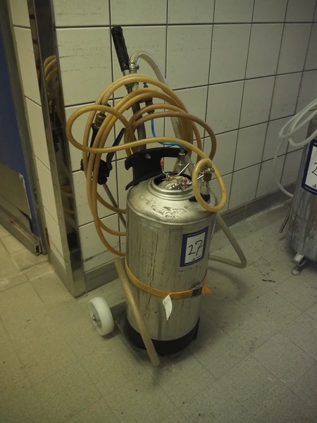 A.E.B. mobile pressure vessel for foam, number: 405564, year of construction: 2004, inside dimensions: Ø 260 mm x 500 mm, total dimensions: 400 mm x 400 mm x 950 mm.