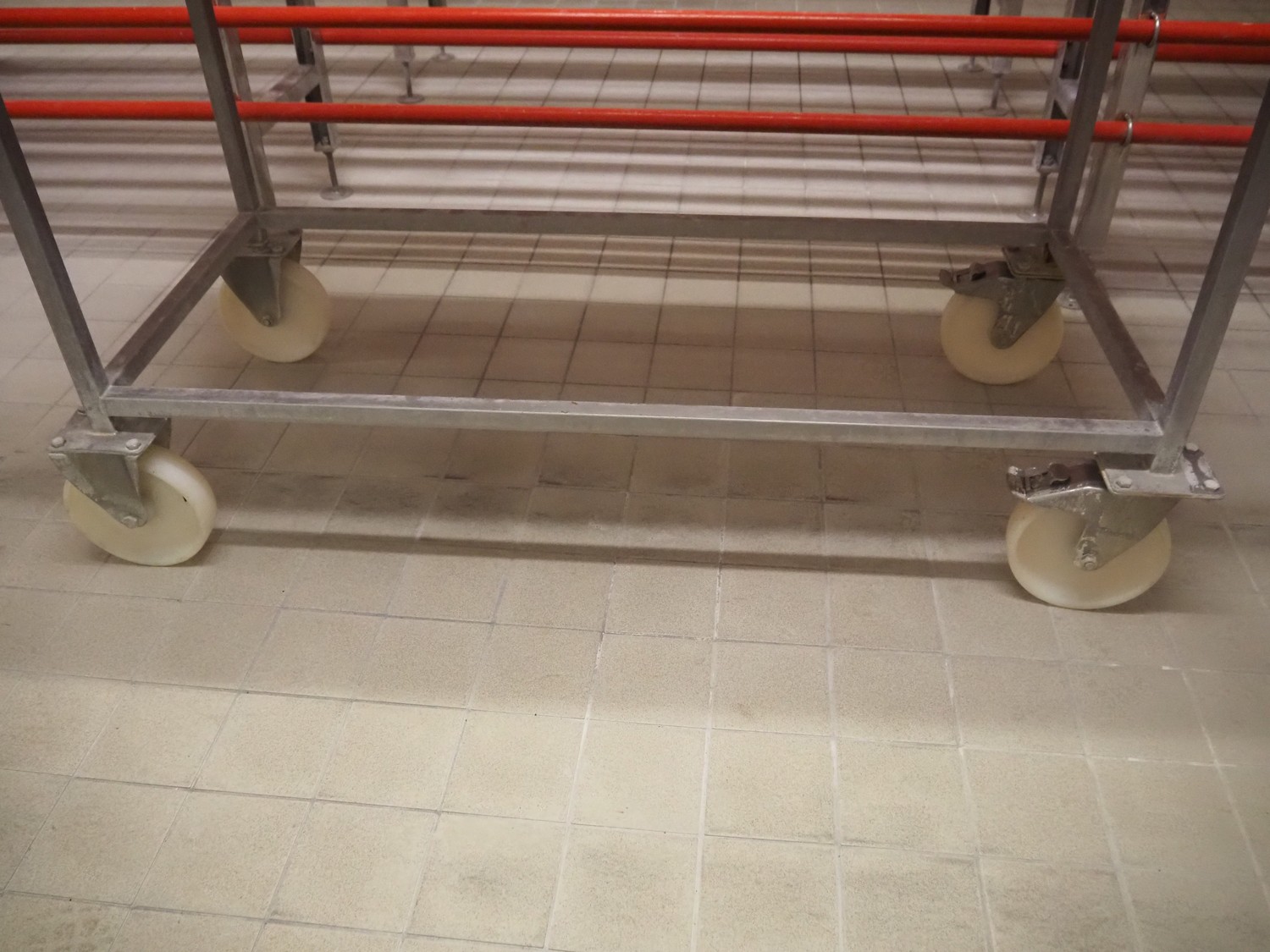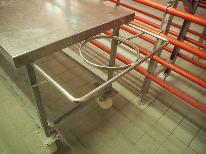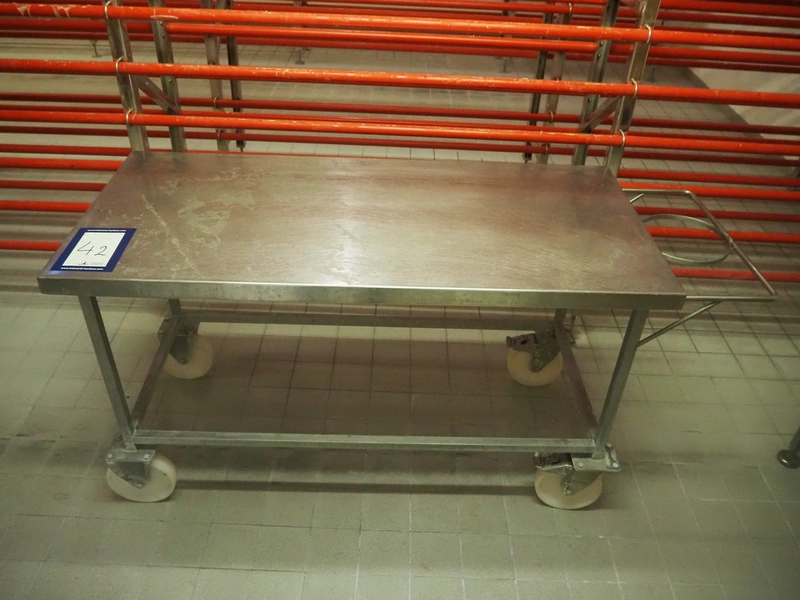 S/s mobile table, dimensions: 1800 mm x 700 mm x 900 mm.