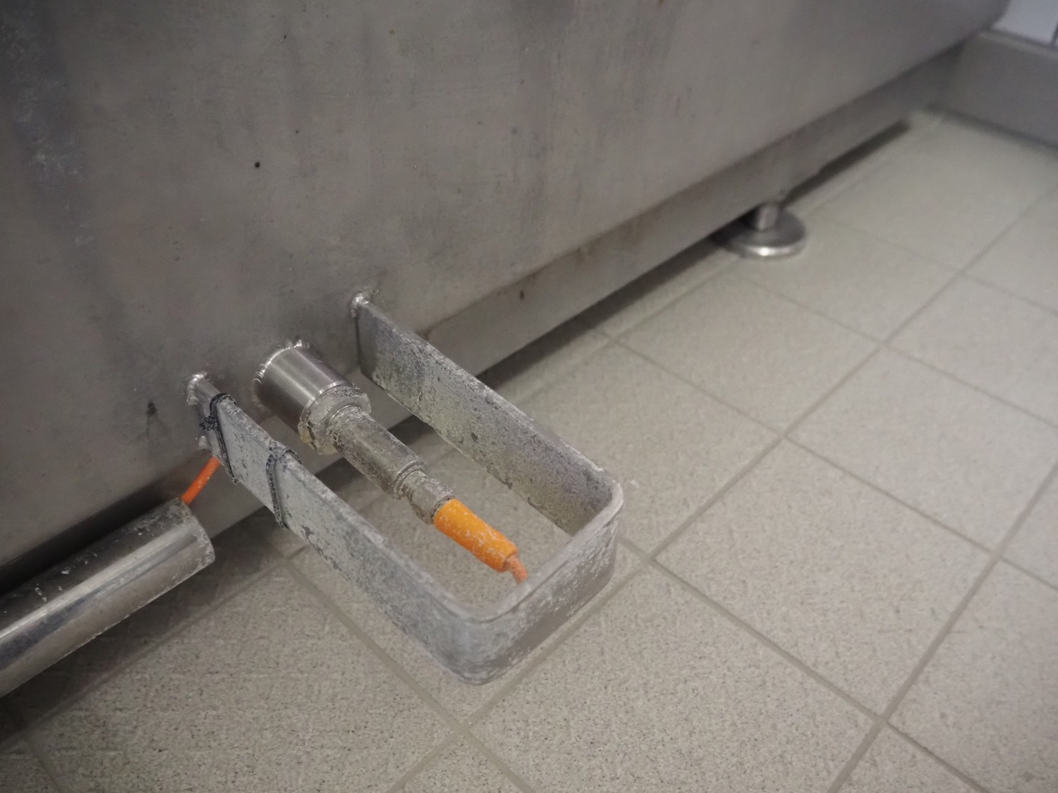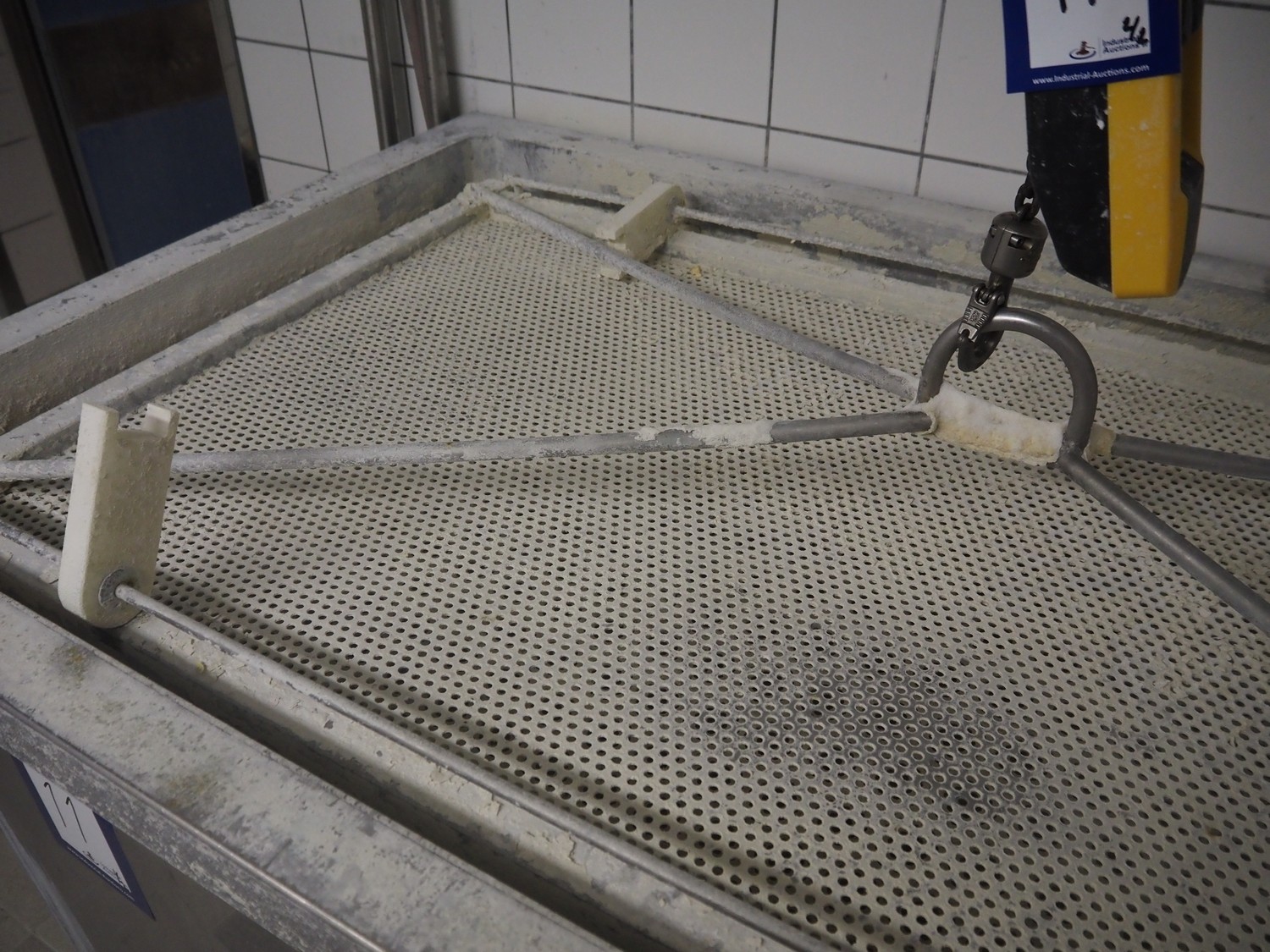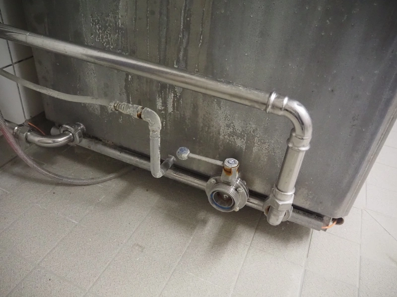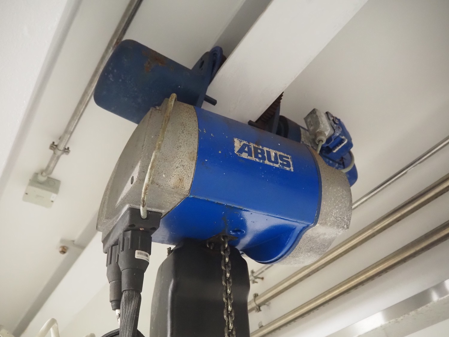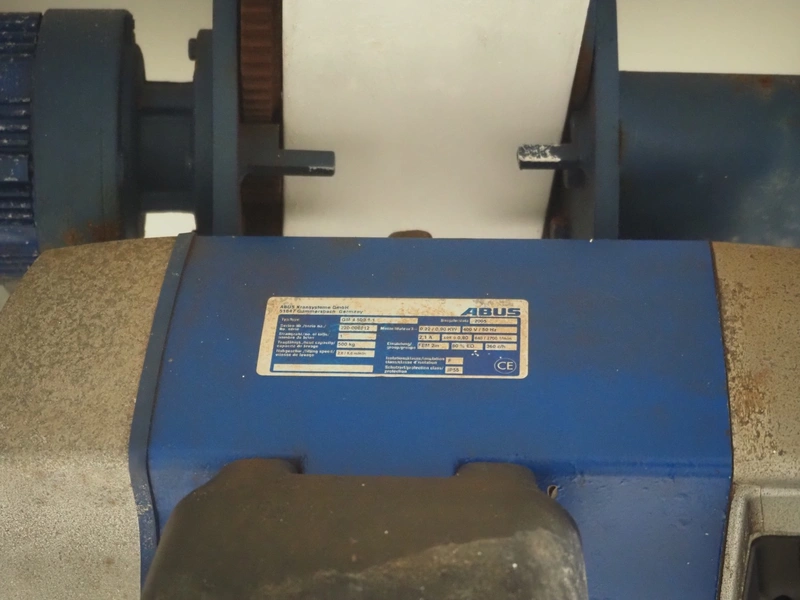 ASTA eismann s/s double jacketed brine tank, serial number: 04961-10, year of construction: 2005, volume: 1500 liter, dimensions: 1900 mm x 1070 mm x 1100 mm. Including Abus chain hoist, type: GM 4 500 8-1, serial number: 220-008912, year of construction: 2005, 400 V, 50 Hz, 2.1 A, 0.22 / 0.9 kW, capacity: 500 kg.