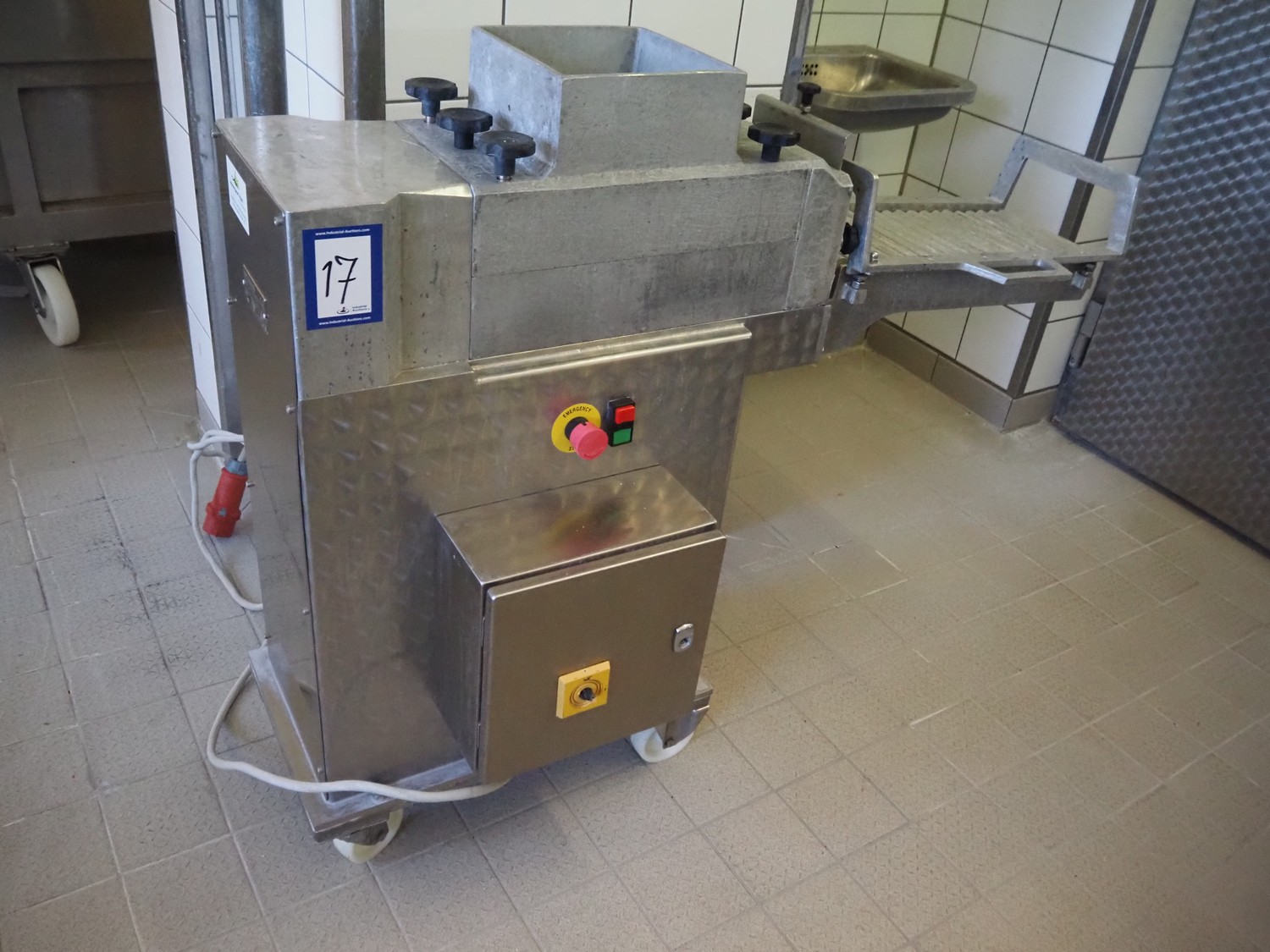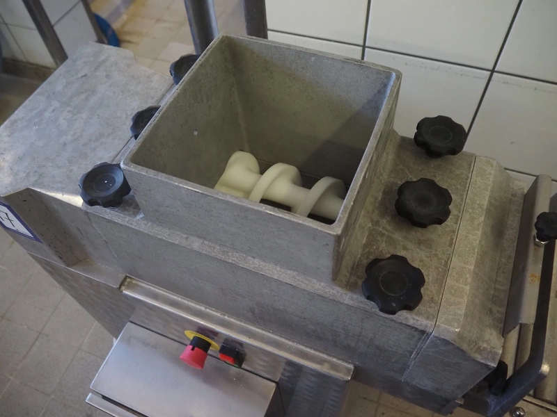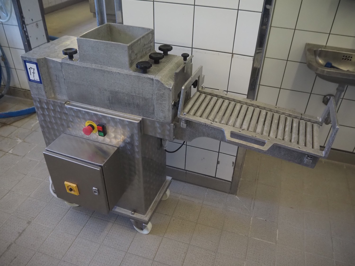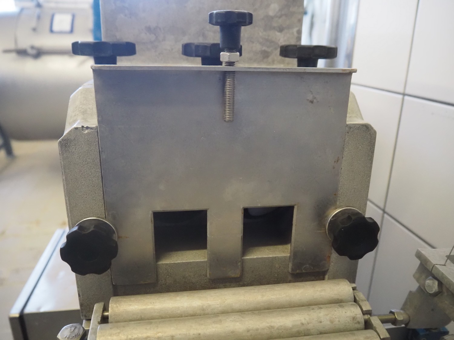 Pietribiasi mobile butter forming machine, model: PX, serial number: 20666, year of construction: 2017, 400 V, 50 Hz, 2.3 A, 0.75 kW, clearance infeed: 200 mm x 200 mm, outfeed: (2x) 40 mm x 60 mm and 80 mm x 80 mm, s/s rollers, roller width: 190 mm, total dimensions: 1270 mm x 500 mm x 1070 mm.