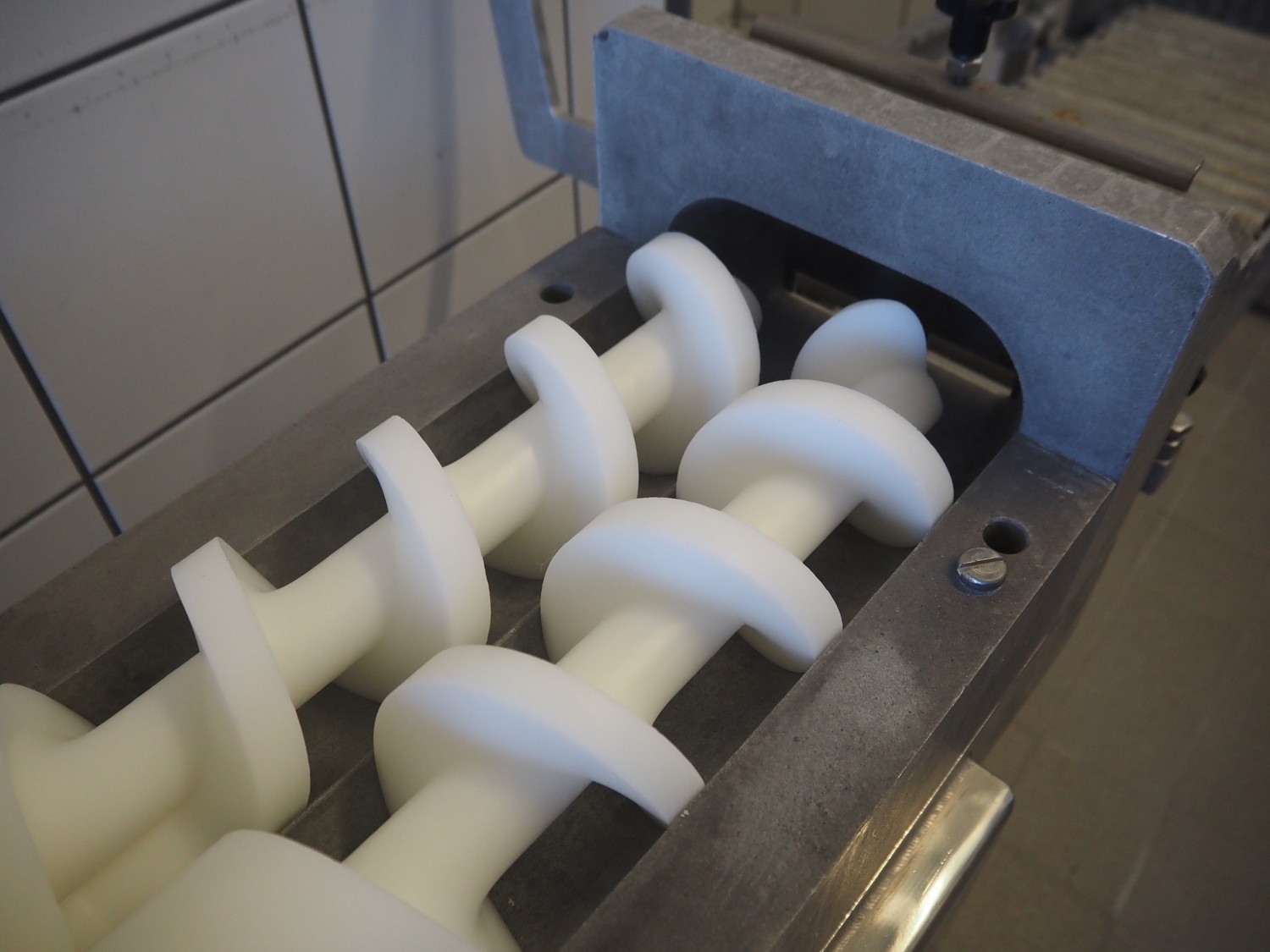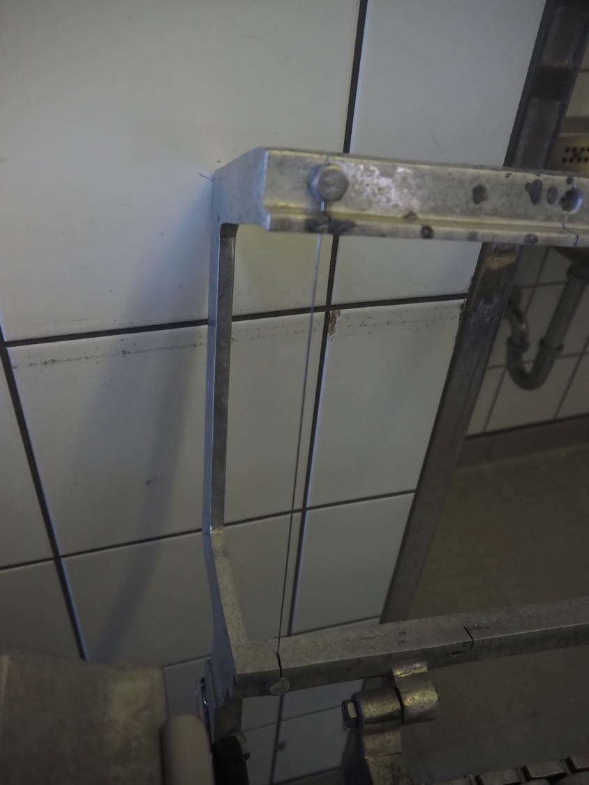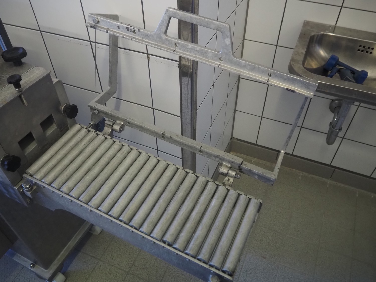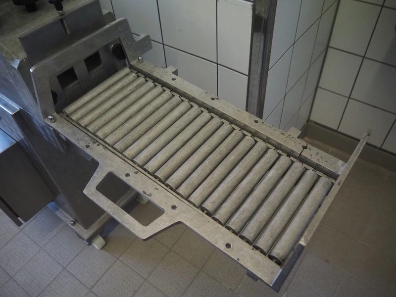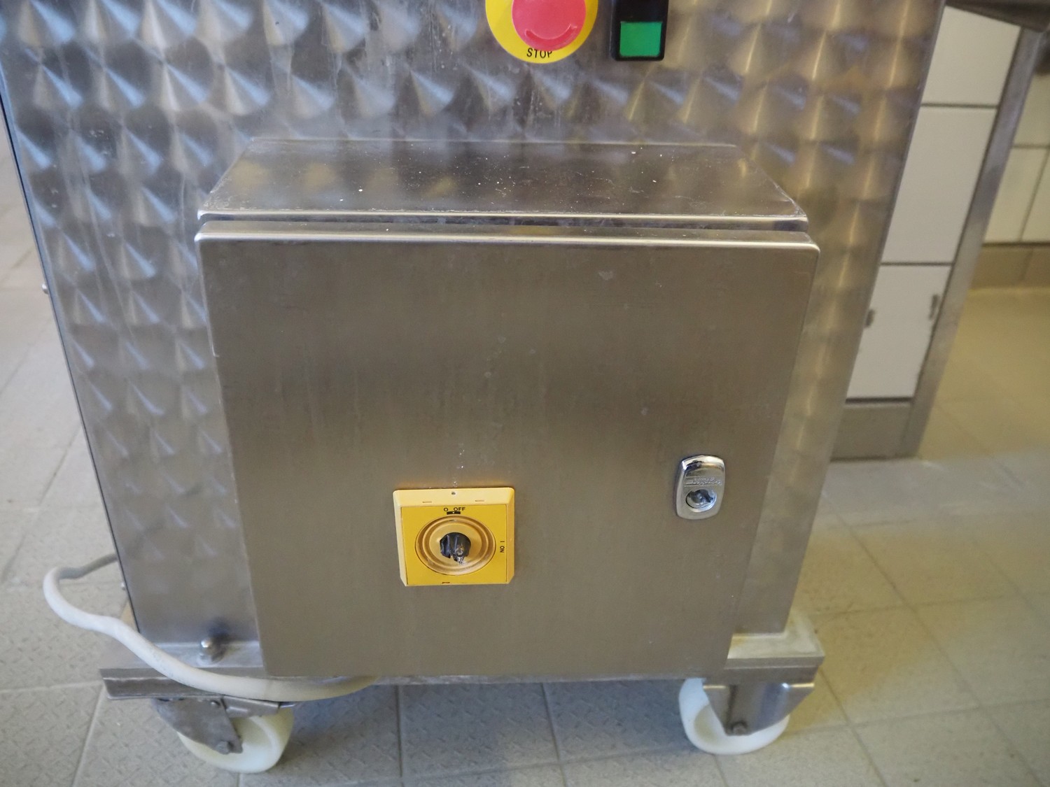 Pietribiasi mobile butter forming machine, model: PX, serial number: 20666, year of construction: 2017, 400 V, 50 Hz, 2.3 A, 0.75 kW, clearance infeed: 200 mm x 200 mm, outfeed: (2x) 40 mm x 60 mm and 80 mm x 80 mm, s/s rollers, roller width: 190 mm, total dimensions: 1270 mm x 500 mm x 1070 mm.