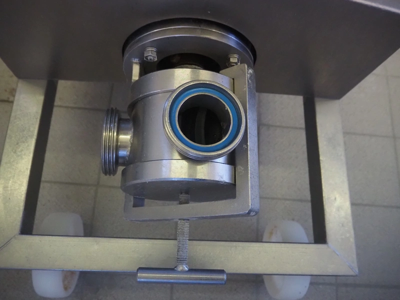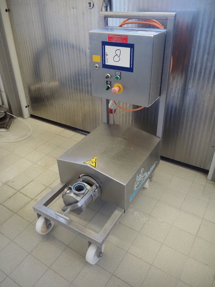 ASTA eismann mobile curd transfer pump, output: Ø 70 mm, total dimensions: 800 mm x 470 mm x 1100 mm.