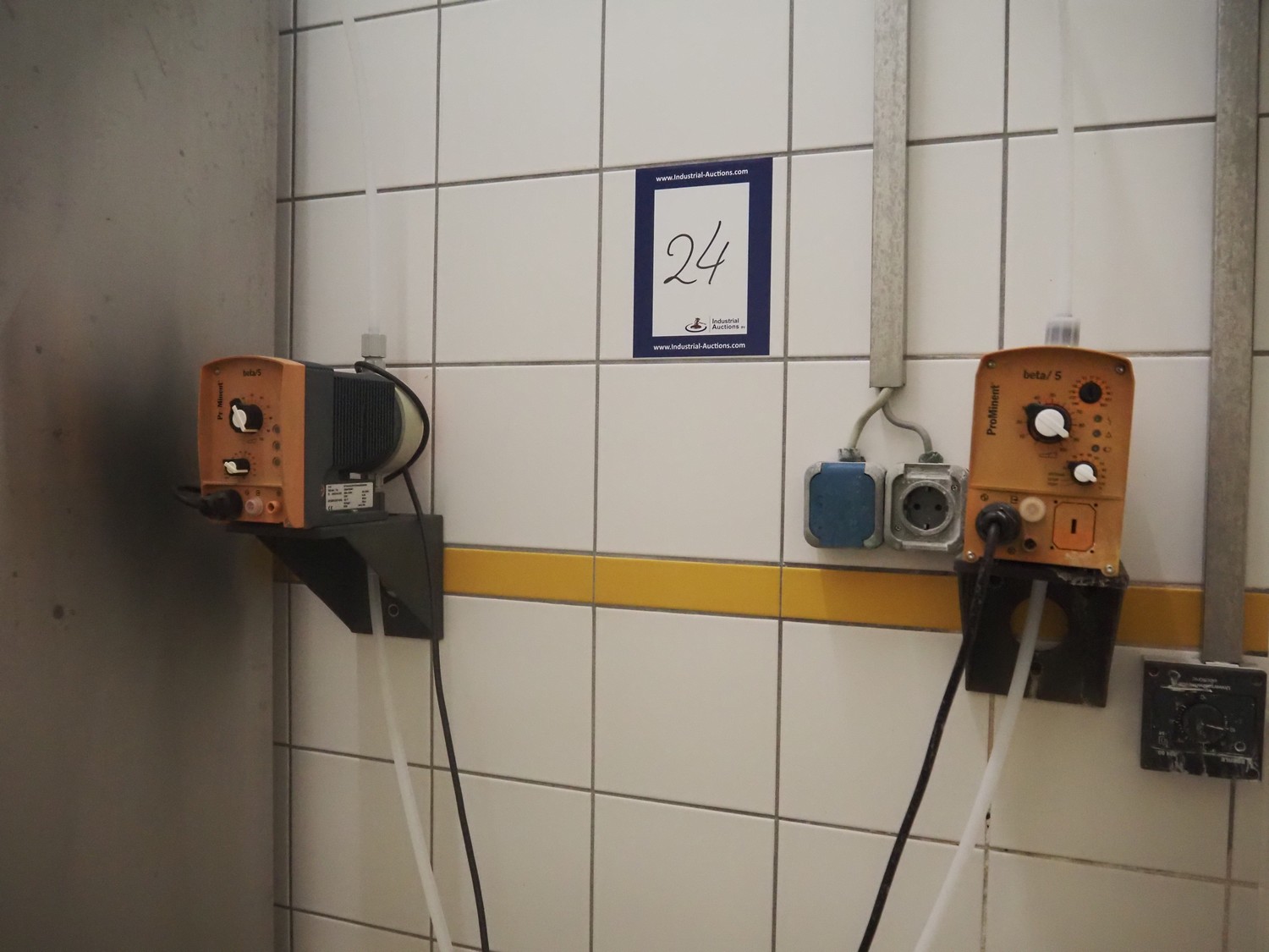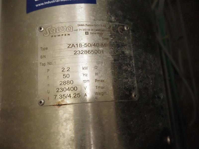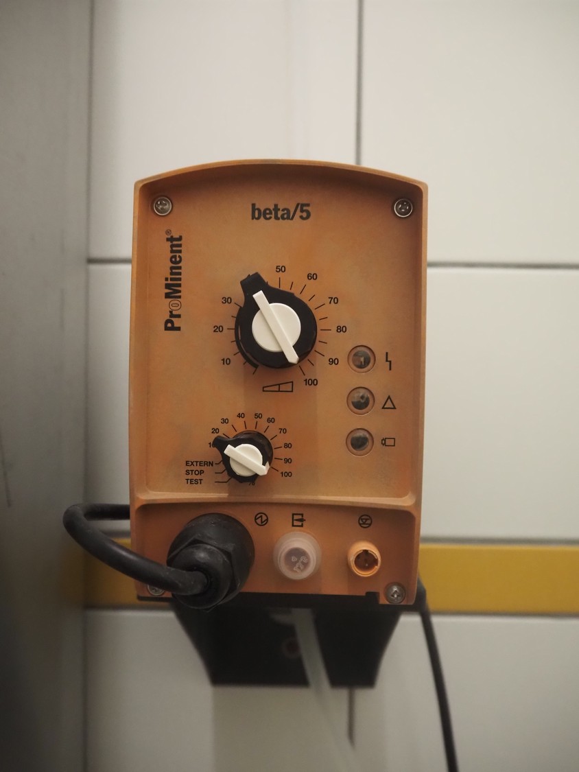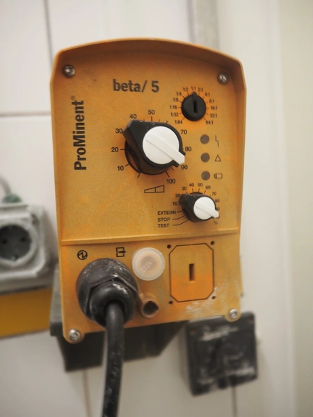 Including 2 Prominent dosing pumps, type: BT5B0232PVT1000UA00000, manual chemical dosing pumps for drums. dimensions: (2x) 240 mm x 100 mm x 160 mm and Sawa Pumpen circulation pump, type: ZA18-50/40 MK, serial number: 232865001, year of construction: 2023, dimensions: 550 mm x 260 mm x 380 mm.