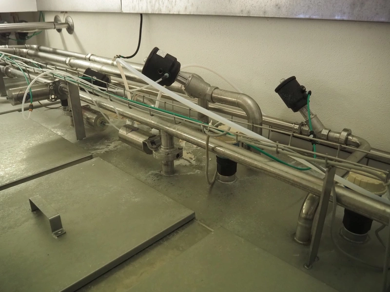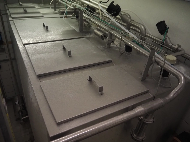 1x insulated CIP tank with three compartments, approximately 2,000 L, 1,200 L, and 750 L, for caustic, acid, and fresh water, and 1x single jacket CIP tank with a capacity of 2,500 L.