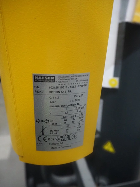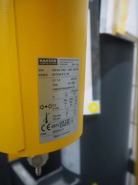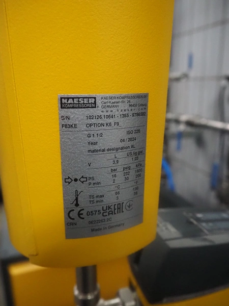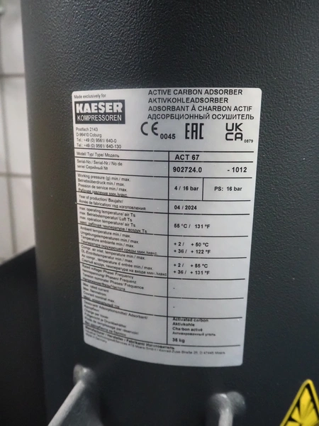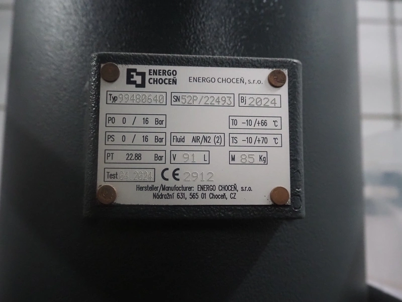- Pressure vessel installation: type: ACT 67, serial number: 902724.0 - 1012, year of construction: 04/2024, 16 bar, dimensions: 750 mm x 1000 mm x 2000 mm.