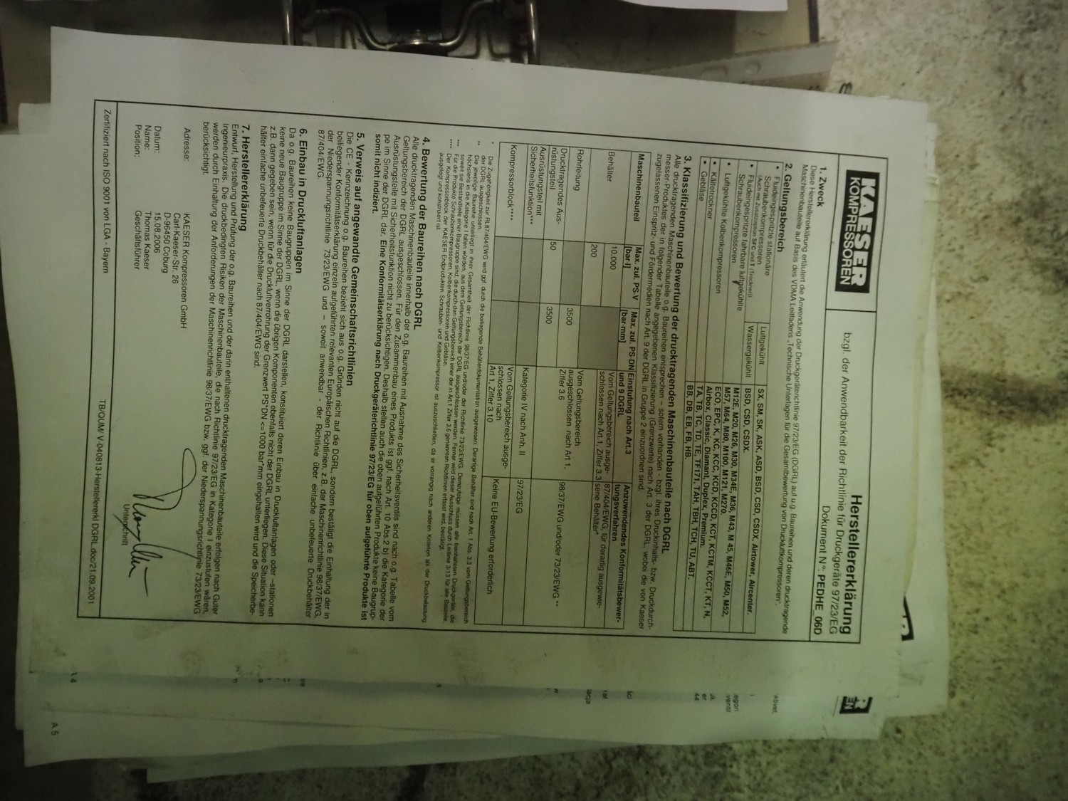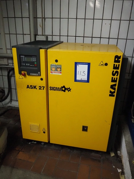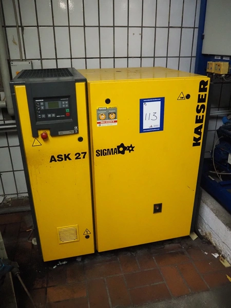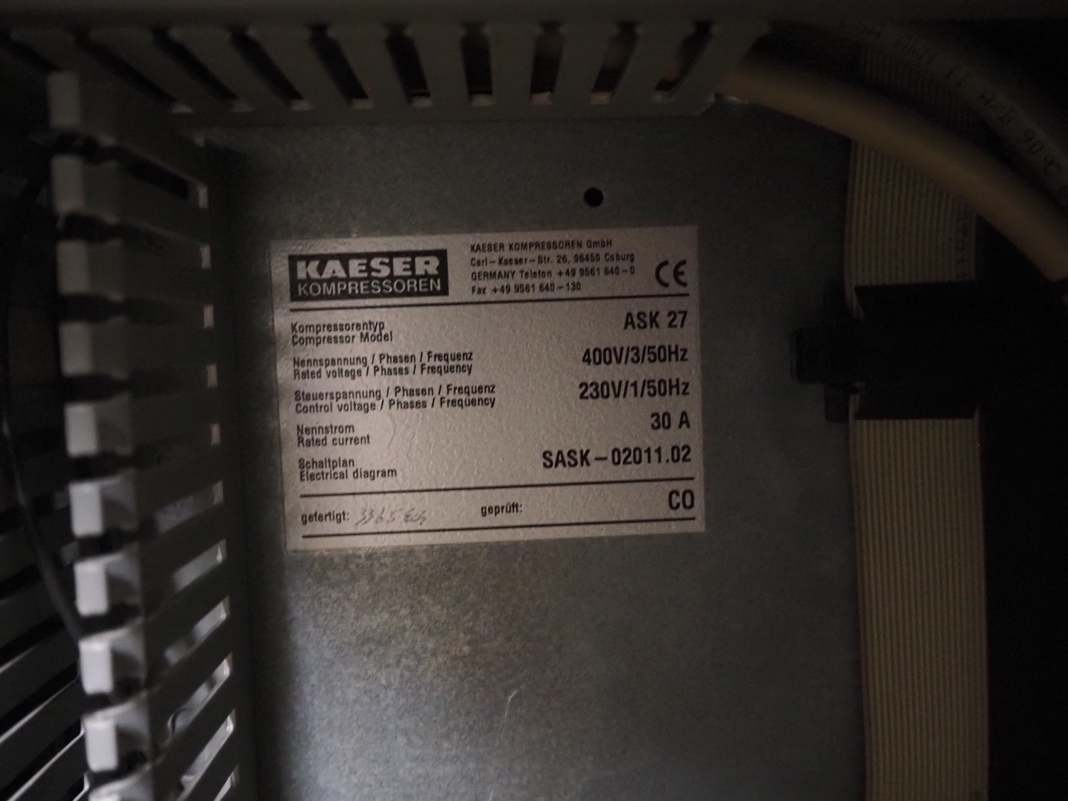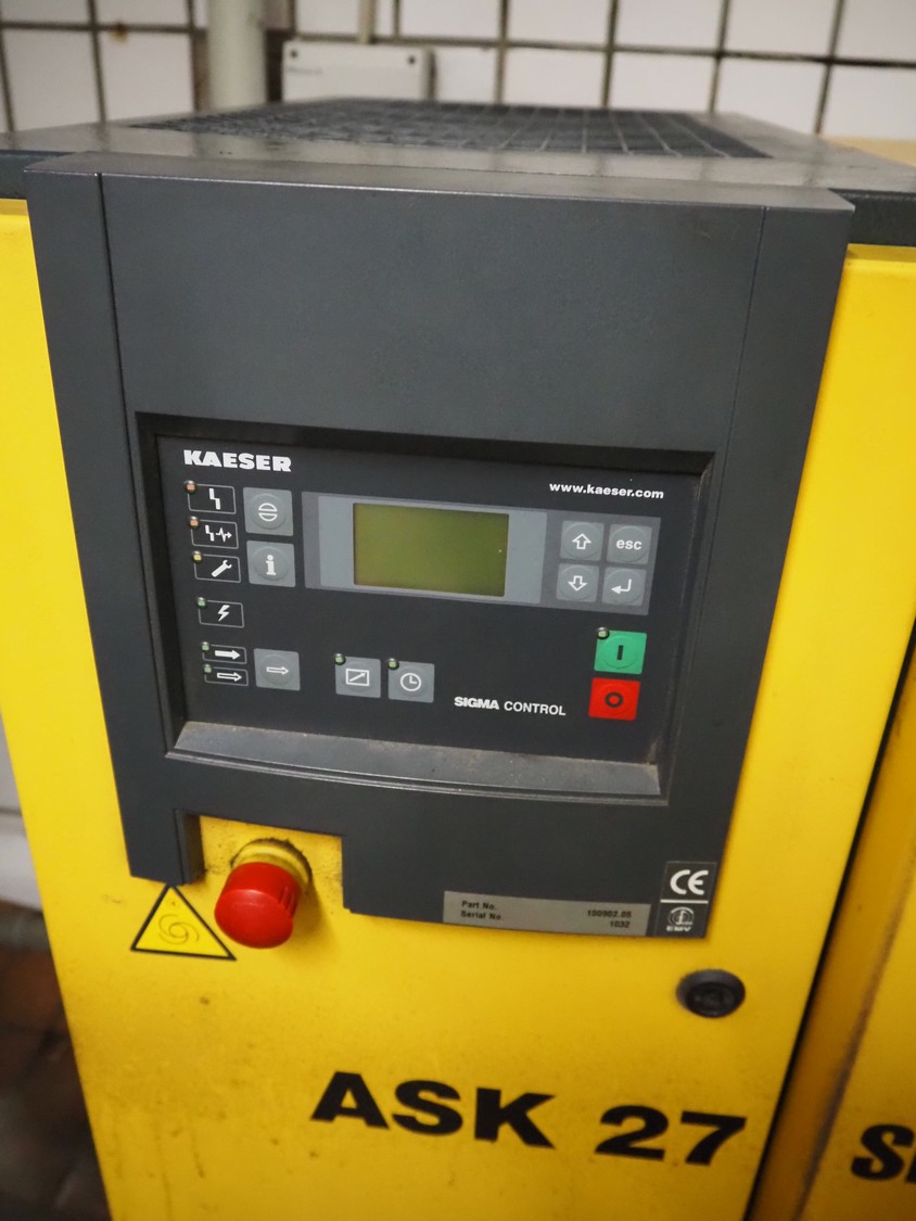 - Air compressor, model: ASK27, serial number: 1032, year of construction: 2008, 400 V, 3 Ph, 50 Hz, dimensions: 1150 mm x 750 mm x 1230 mm.
