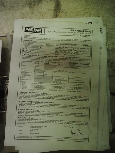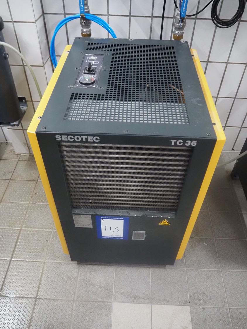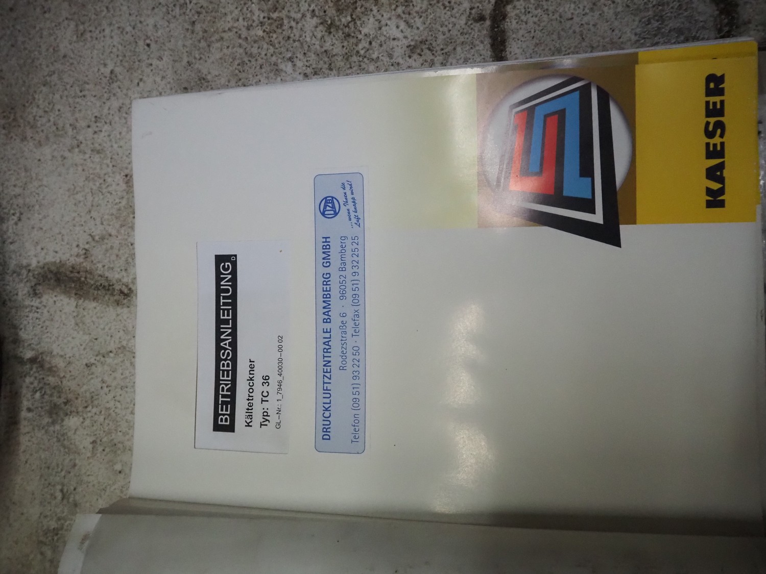 - Refrigeration dryer, model: TC 36, serial number: 2065-9756856, 230 V, 50 Hz, 6.4/7.0 A, refrigerant: R 513A, maximum working pressure: 18.0 bar, dimensions: 770 mm x 670 mm x 980 mm.