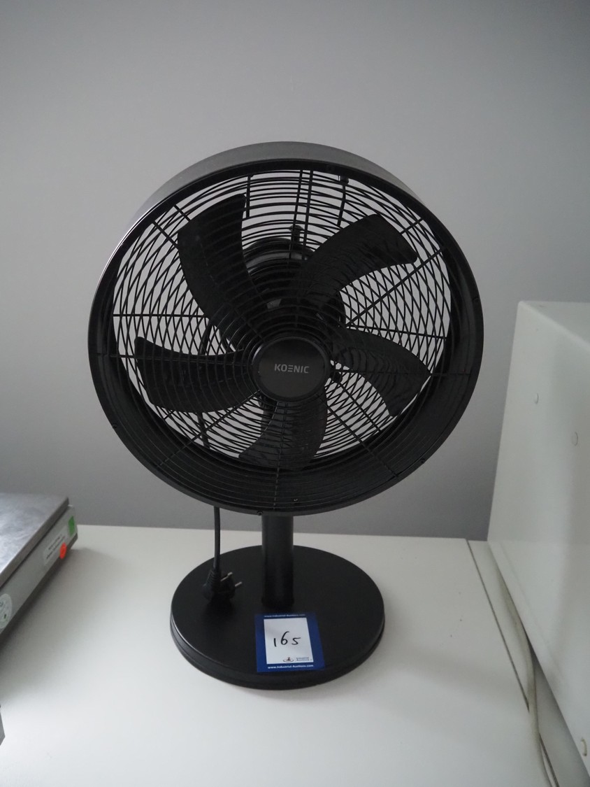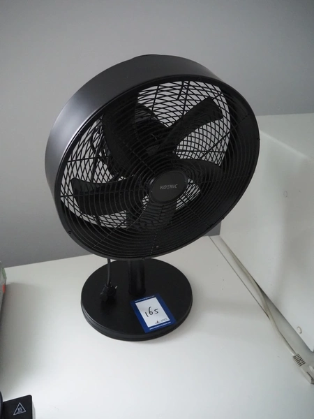 Koenic table fan, serial number: 220400, 220/240 V, 50/60 Hz, 35 W, diameter fan: 280 mm, total dimensions: 300 mm x 360 mm x 550 mm.