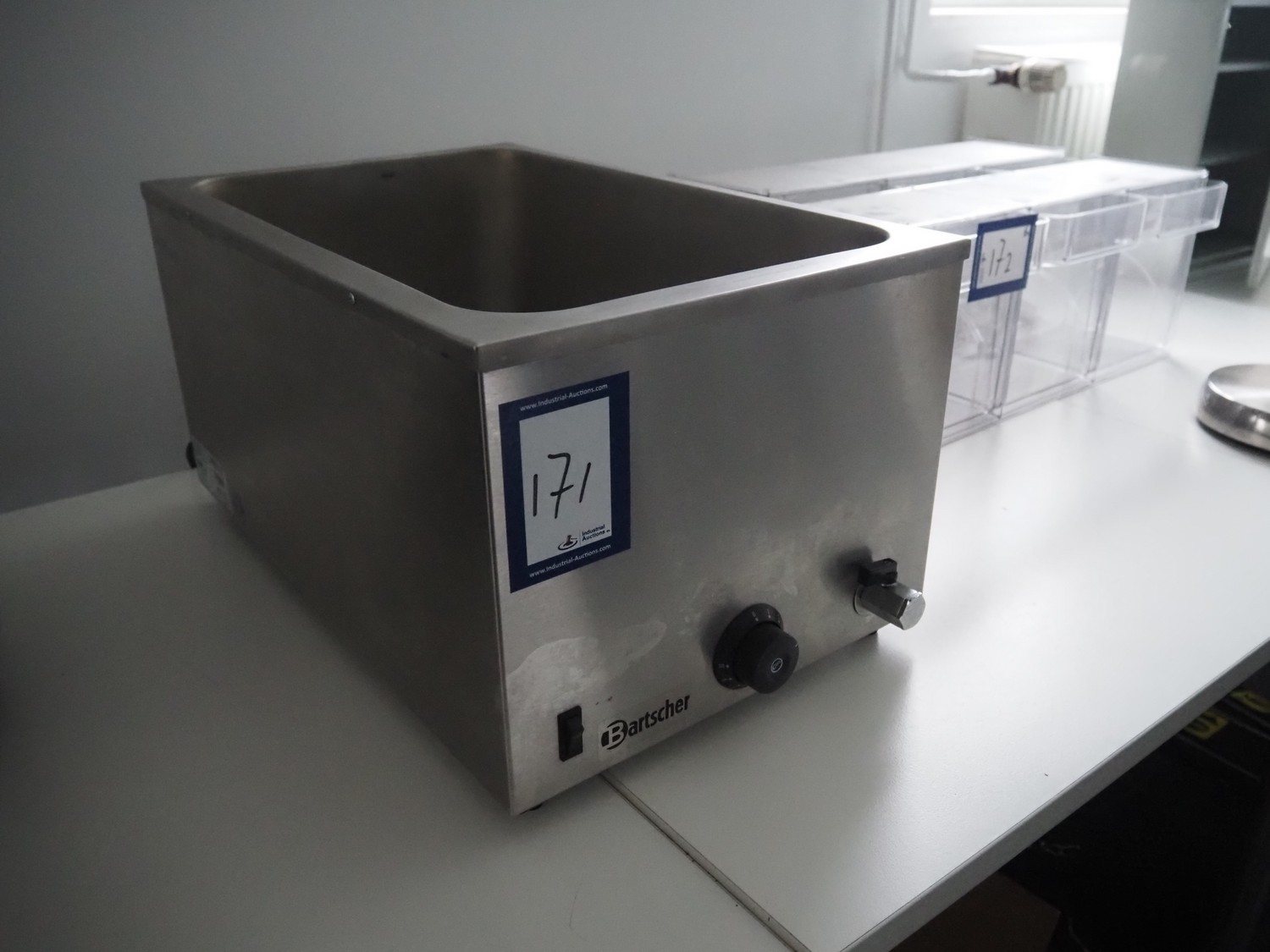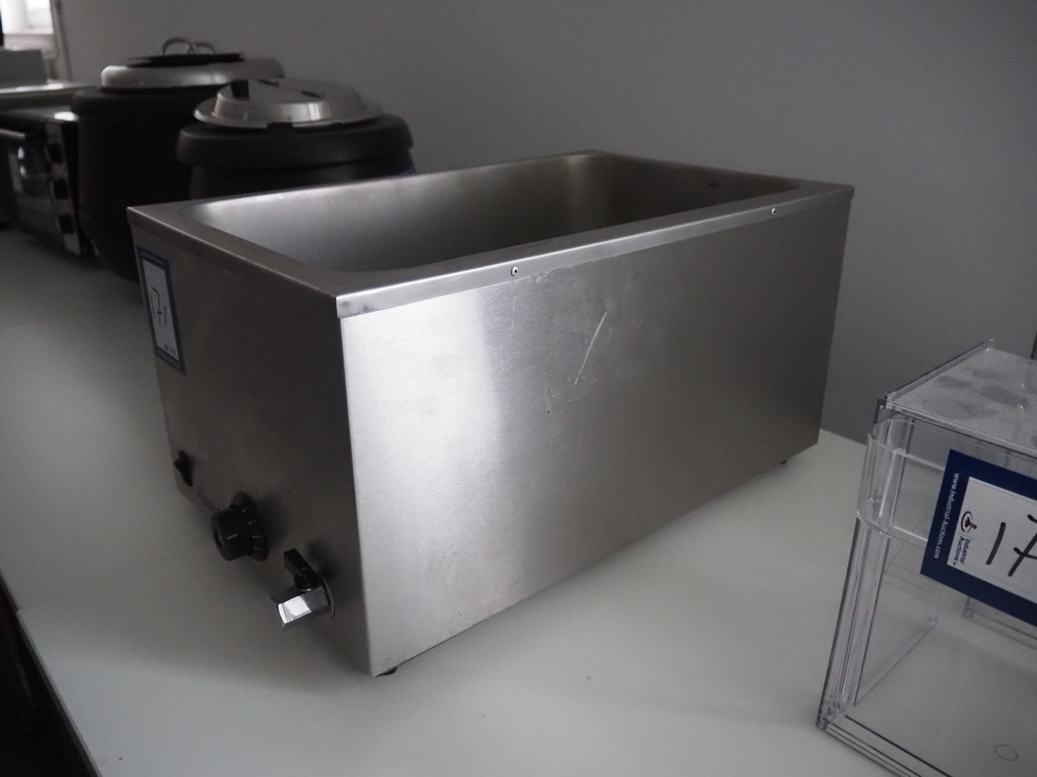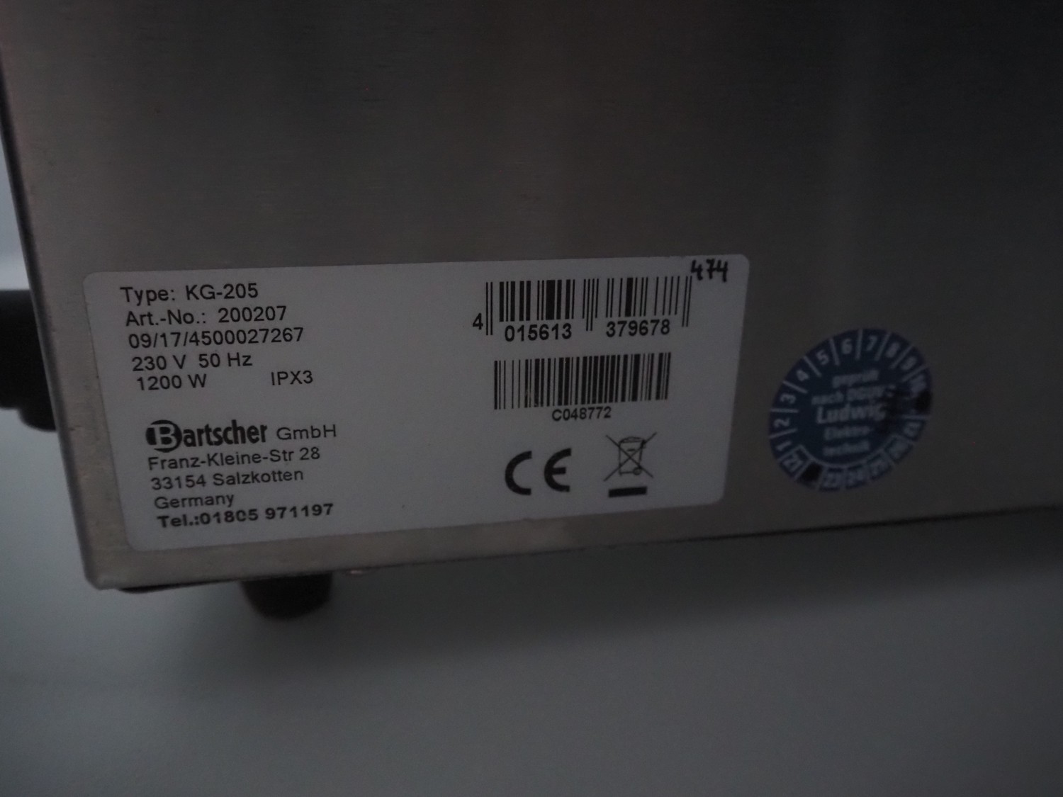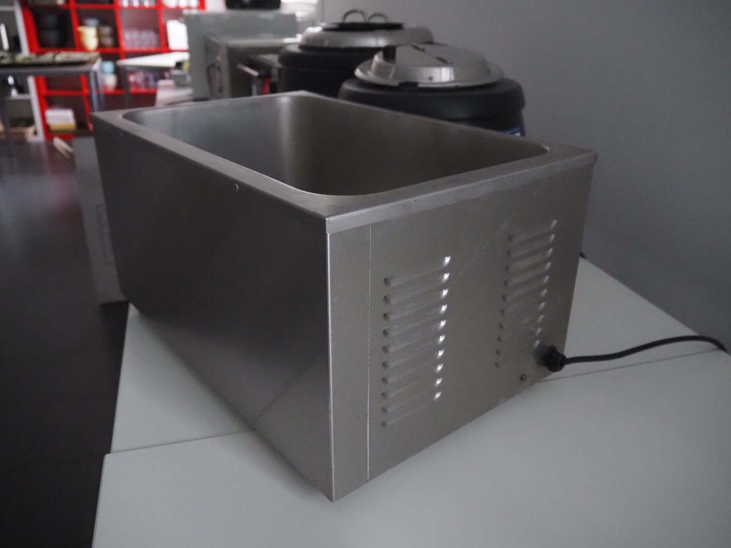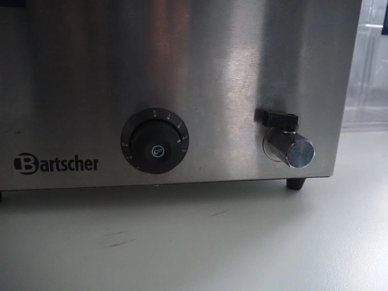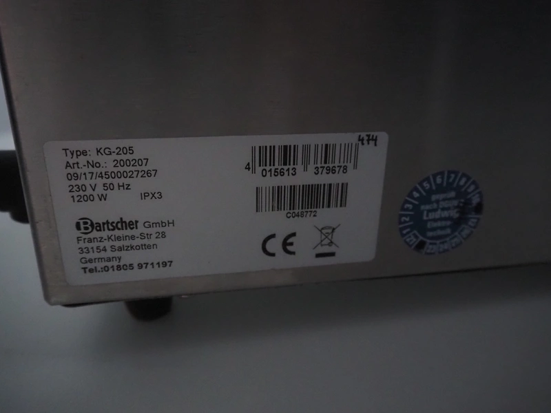 Bartscher GmbH au-bain-marie, type: KG-205, number: 200207, 230 V, 50 Hz, 1200 W, inside dimensions: 500 mm x 300 mm x 200 mm, total dimensions: 600 mm x 360 mm x 300 mm.