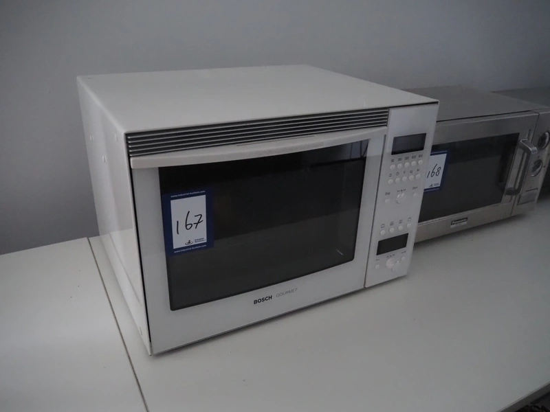 Bosch microwave, type: HFT870, number: HMG9720, 220/230 V, 50 Hz, 3.6 kW, dimensions: 560 mm x 550 mm x 380 mm.