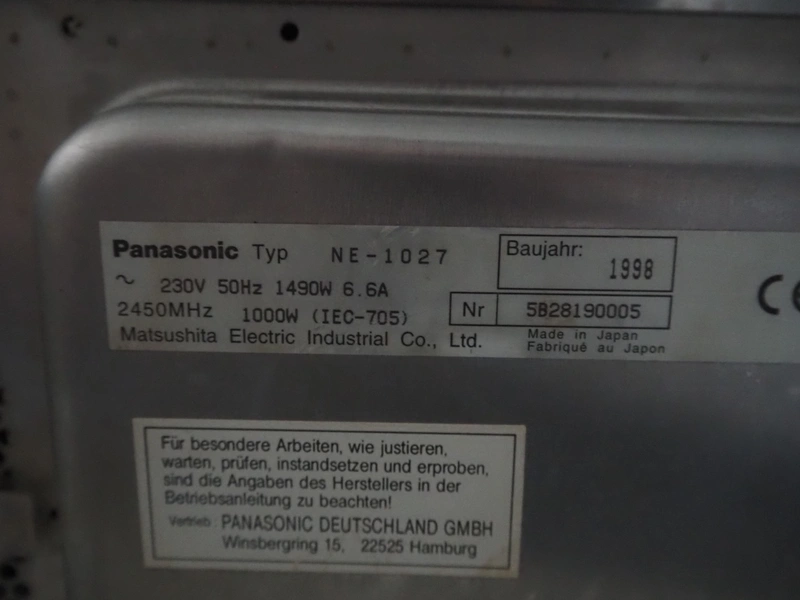 Panasonic microwave, type: NE-1027, number: 5B28190005, year of construction: 1998, inside dimensions: 330 mm x 300 mm x 195 mm, total dimensions: 510 mm x 370 mm x 305 mm.